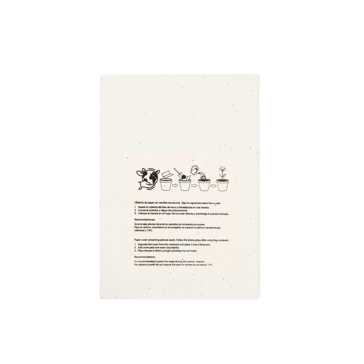 Con 60 hojas interiores en color blanco lisas, esta libreta te ofrece espacio más que suficiente para tus notas, ideas y pensamientos. Además, las cubiertas de la libreta incluyen semillas de petunia, lo que significa que al final de su vida útil, en lugar de desecharlas, puedes plantarlas en la tierra y ver crecer hermosas flores. Las instrucciones de plantado te guiarán en este proceso, convirtiendo esta libreta en un regalo verdaderamente especial y eco-amigable.