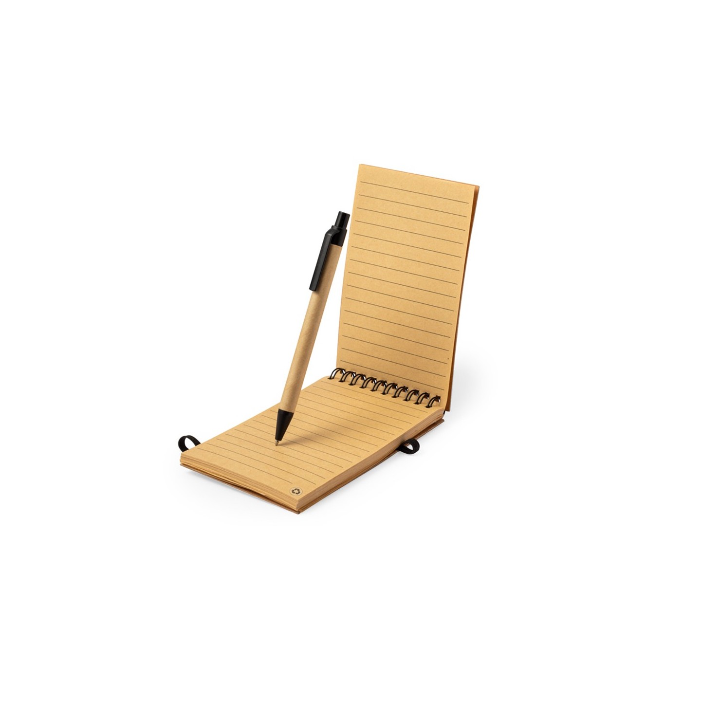 Set ecológico que consta de libreta y bolígrafo de cartón reciclado. Ideal para regalos empresariales. Personalizable.