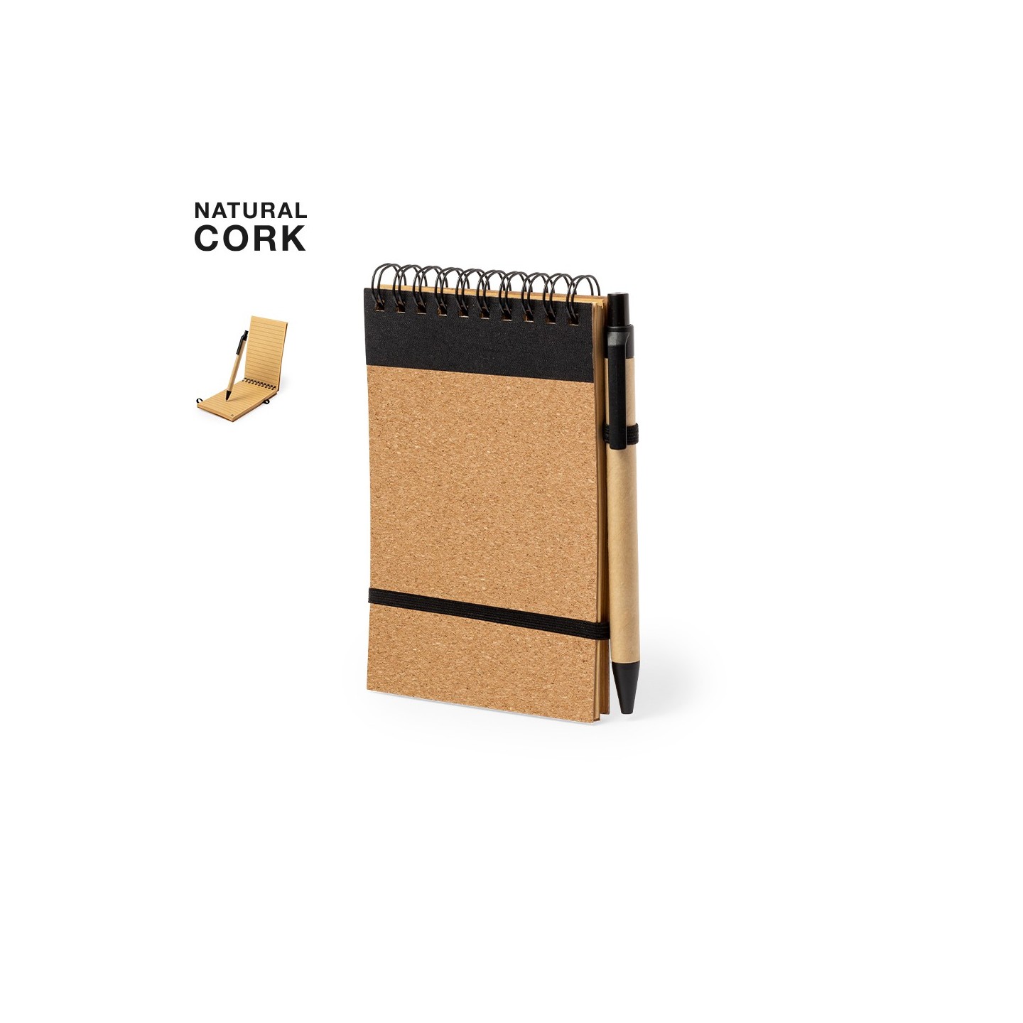Este set, compuesto por una libreta y un bolígrafo, ha sido diseñado con un enfoque eco-friendly utilizando corcho y cartón reciclado, materiales que reflejan nuestro compromiso con la sostenibilidad ambiental.