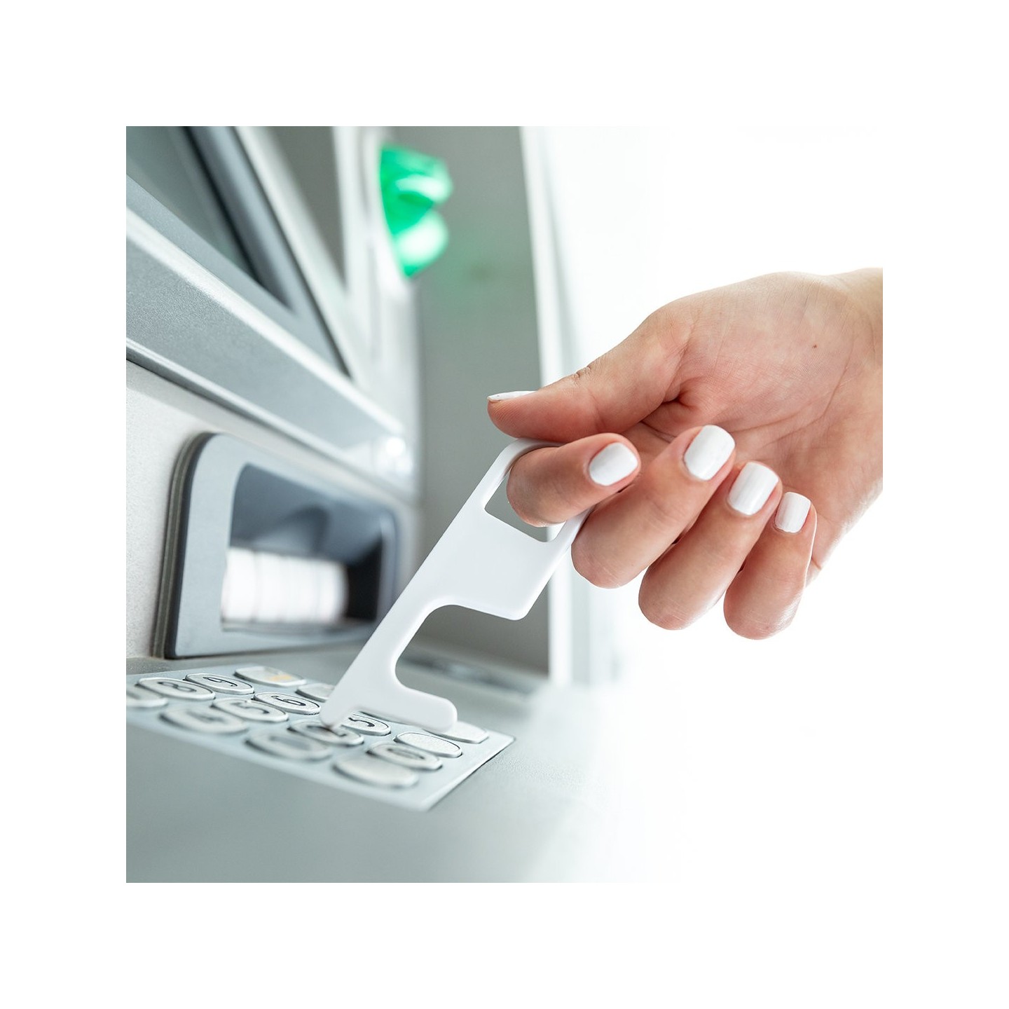 El Llavero Antibacteriano Anticontact Riken ha sido especialmente diseñado para evitar tocar con las manos superficies como manivelas de puertas, interruptores, grifos de uso público, cajeros automáticos y más. Su cómodo troquel para el dedo te permite utilizarlo de manera ergonómica y sin esfuerzo, brindándote tranquilidad y protección en tu día a día.