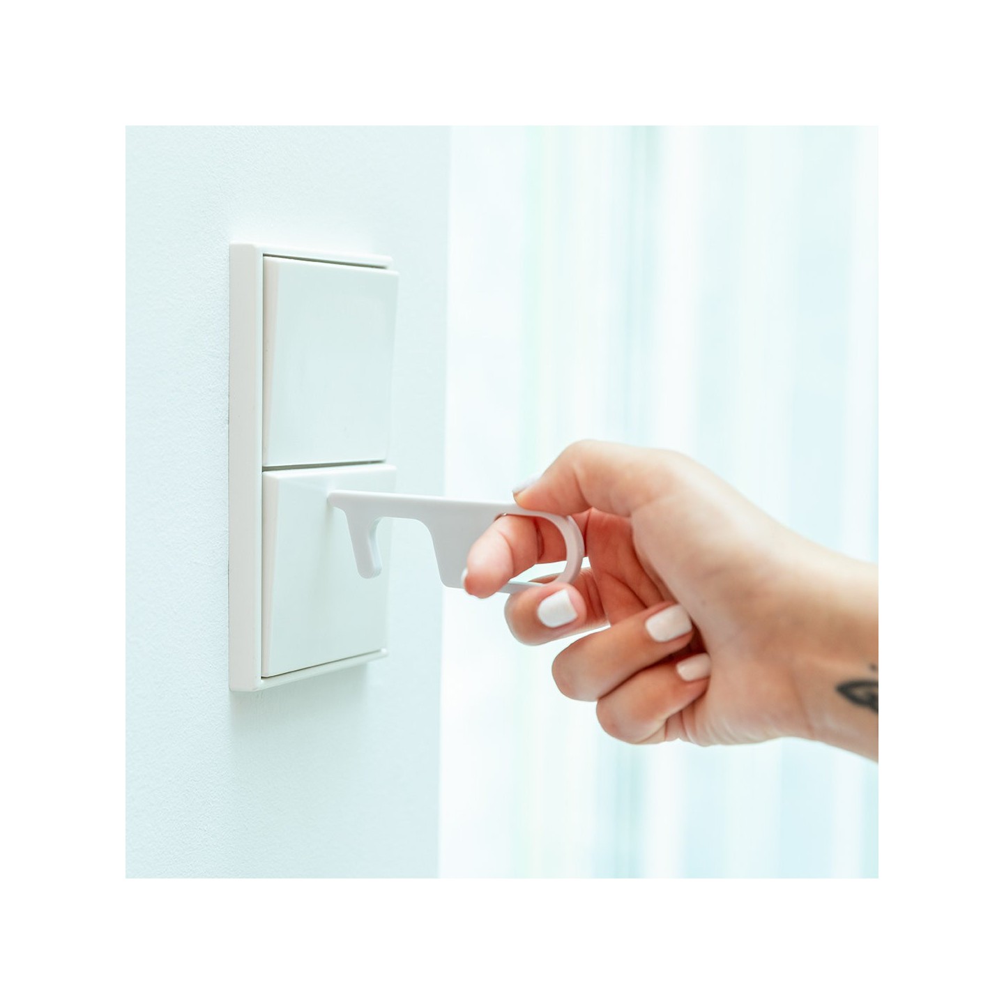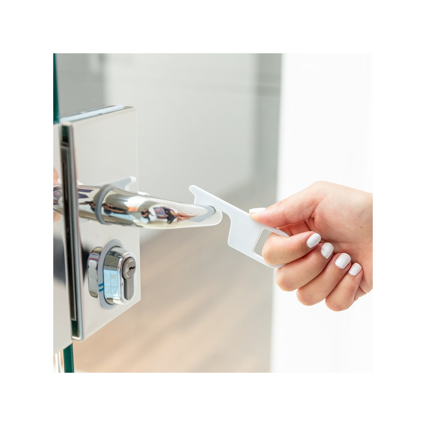 El Llavero Anticontact Napil ha sido especialmente diseñado para evitar tocar con las manos superficies como manivelas de puertas, interruptores, grifos de uso público, cajeros automáticos y más. Su cómodo troquel para el dedo te permite utilizarlo de manera ergonómica y sin esfuerzo, brindándote tranquilidad y protección en tu día a día.