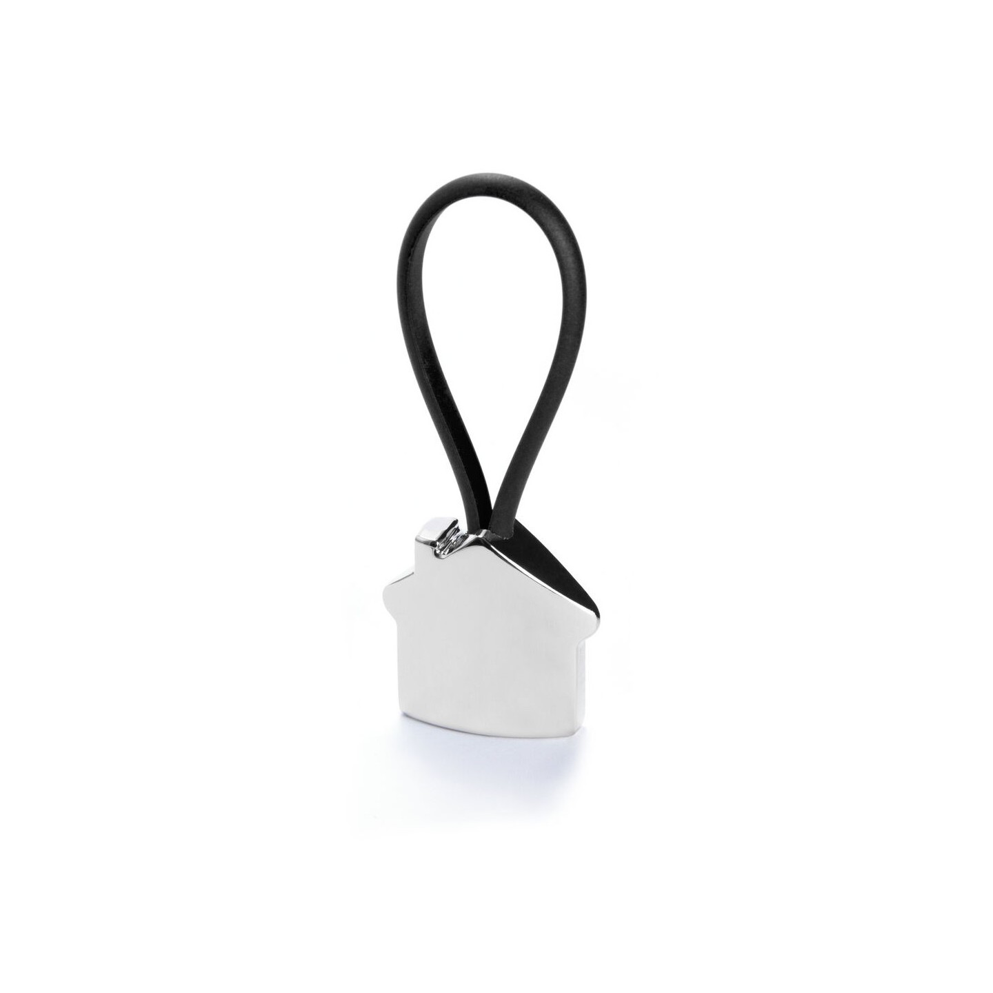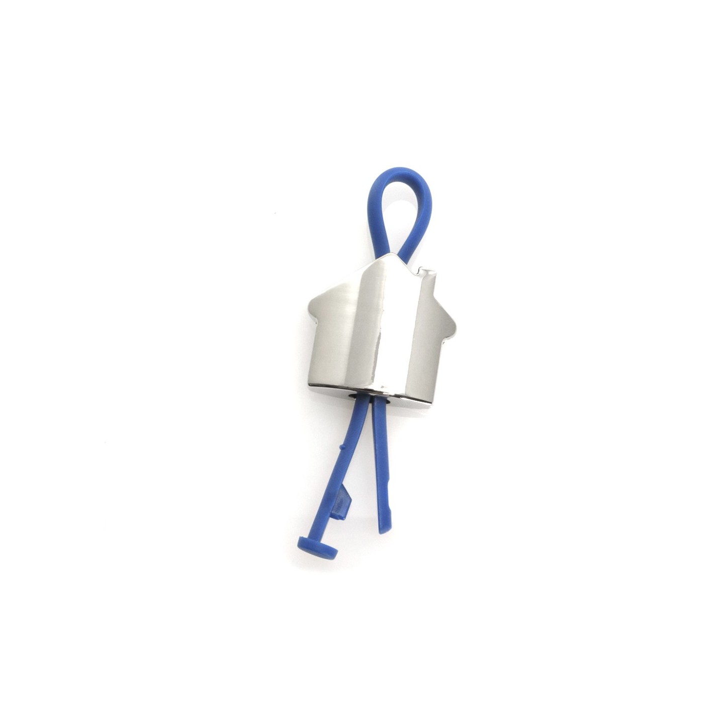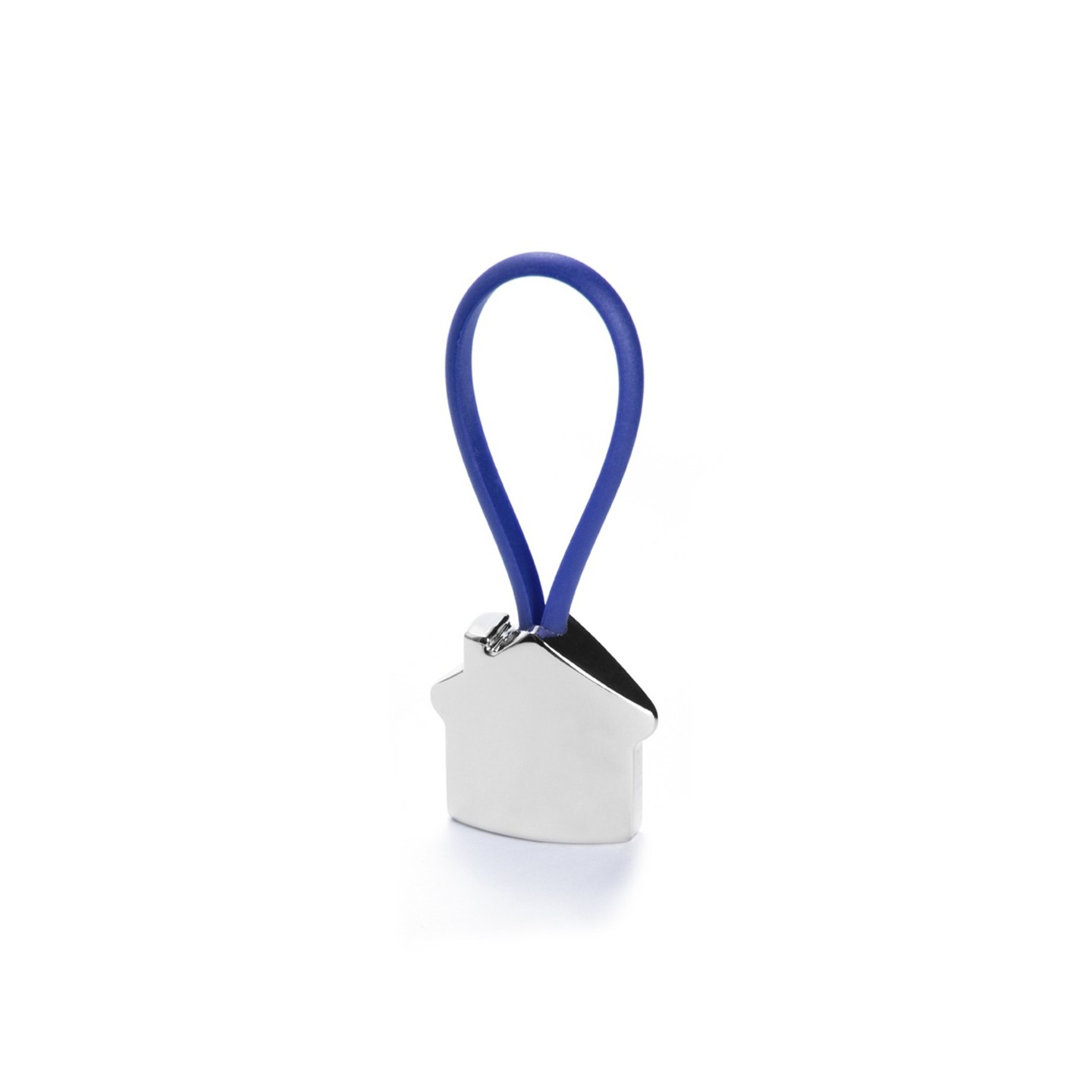 Llavero metálico en divertido diseño 3D de casa con cinta de goma en vivos colores. Personalízalo y destaca con estilo.