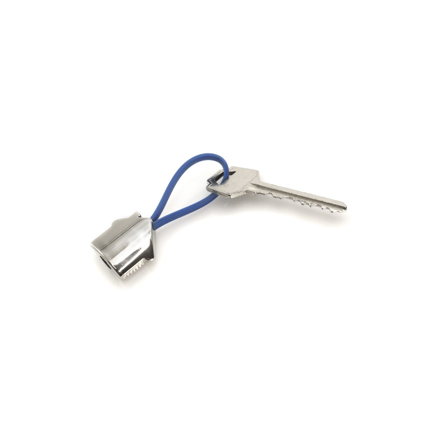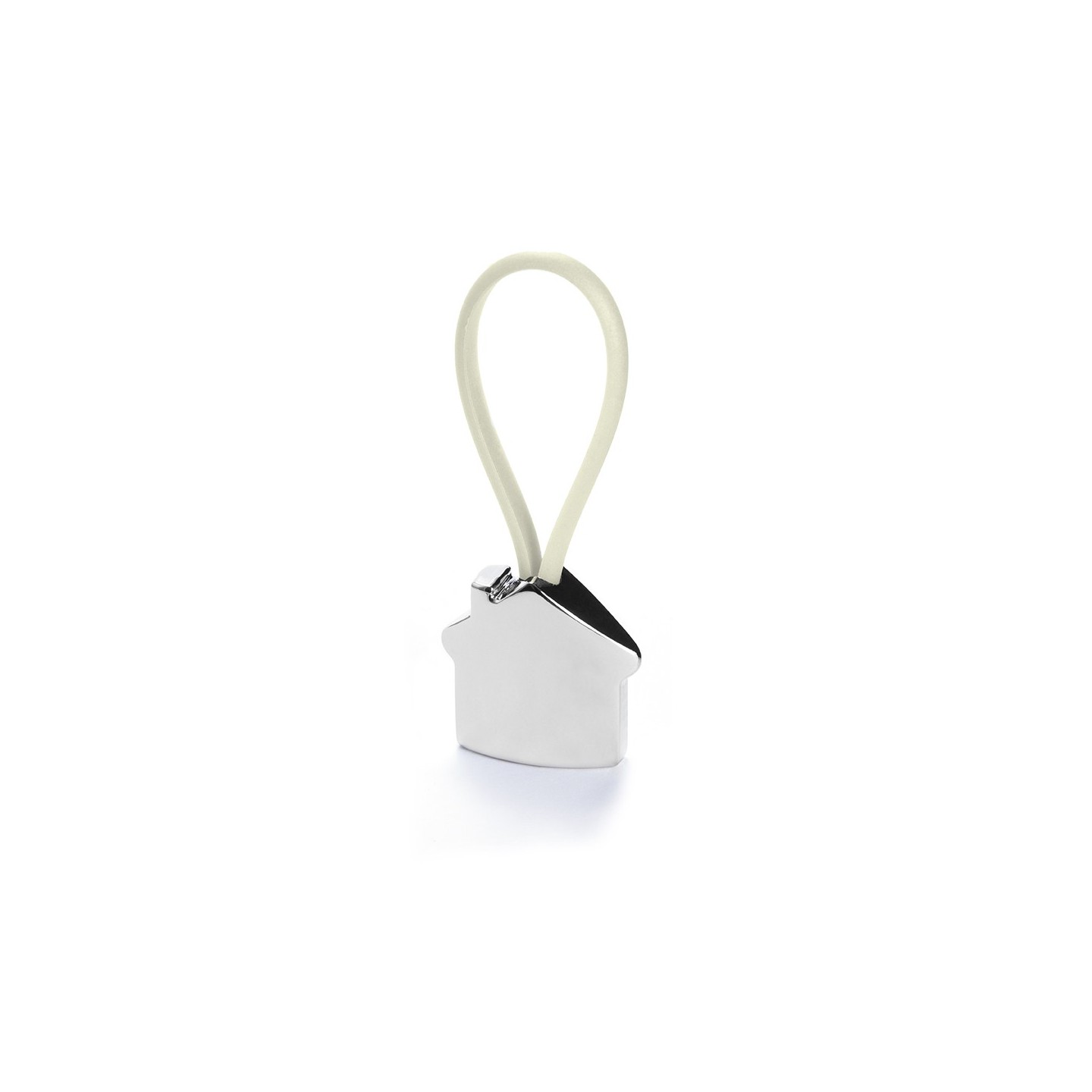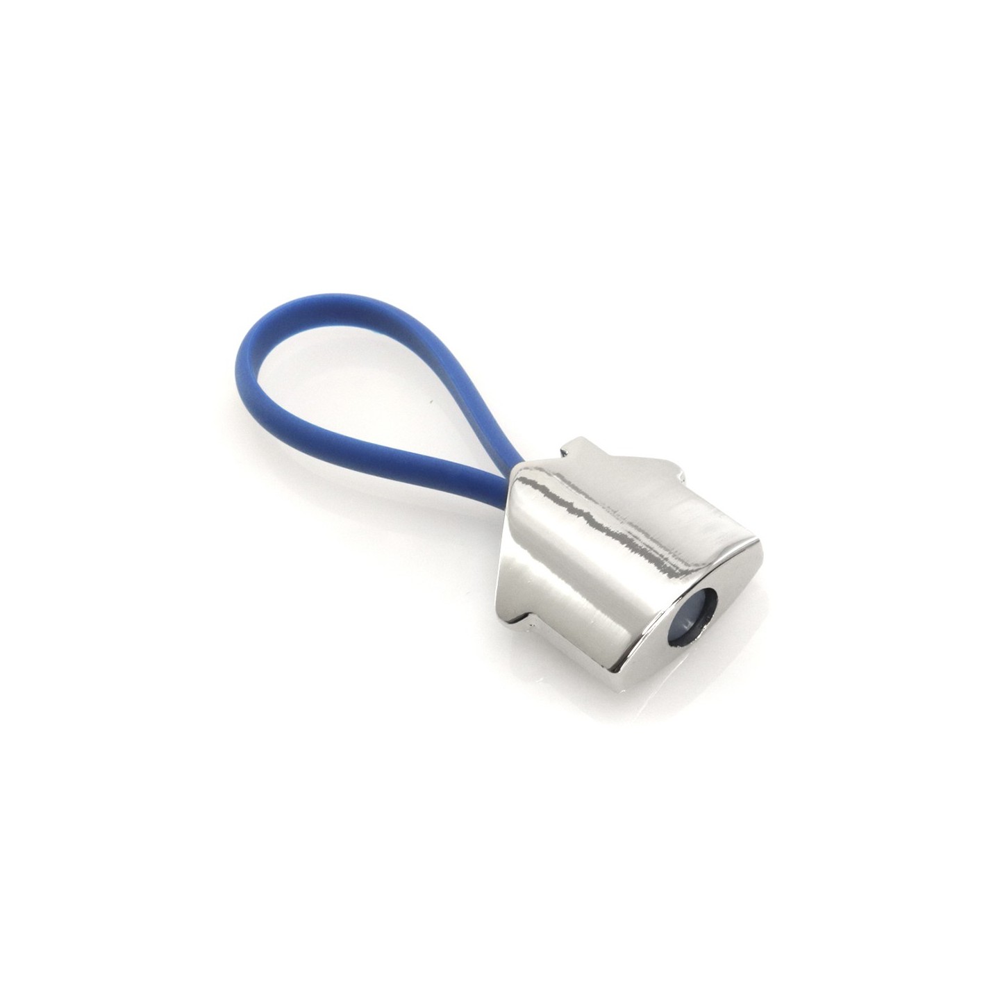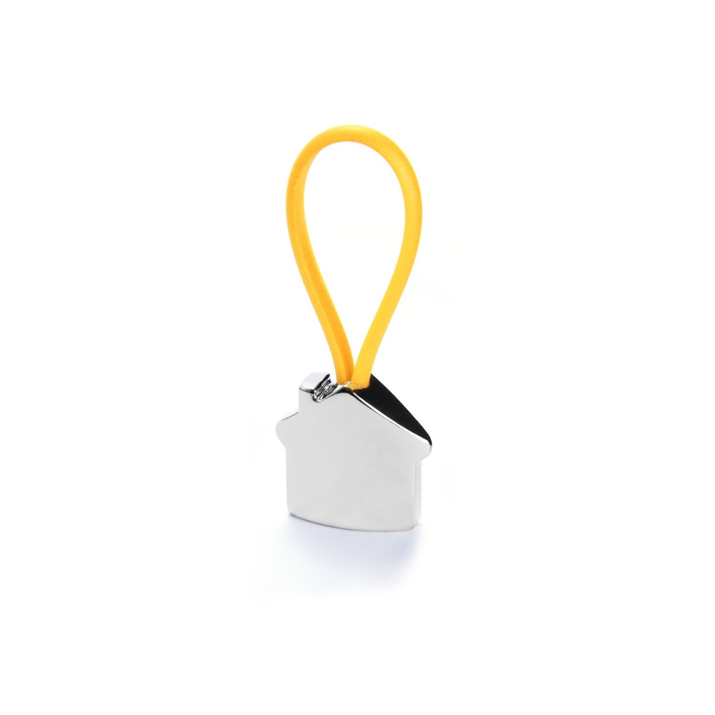 Llavero metálico en divertido diseño 3D de casa con cinta de goma en vivos colores. Personalízalo y destaca con estilo.