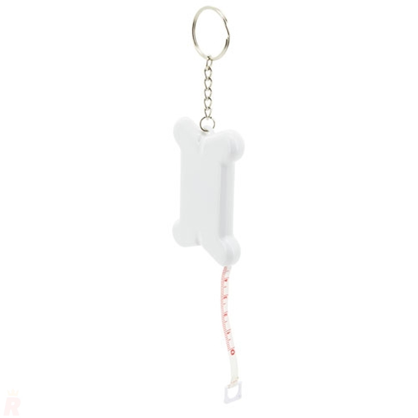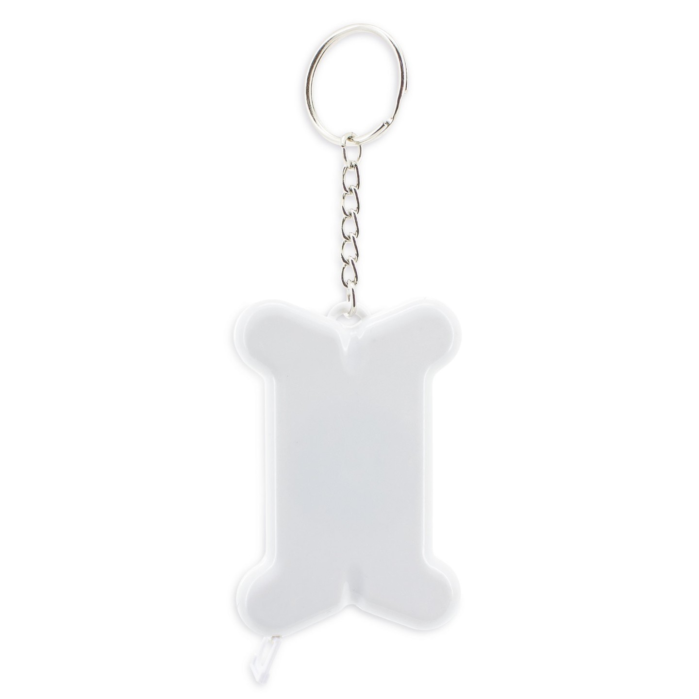 Llavero con cinta métrica en forma de hueso, fabricado en PP. Flexible, con autorecogida y diseño compacto. Perfecto para amantes de mascotas y promociones