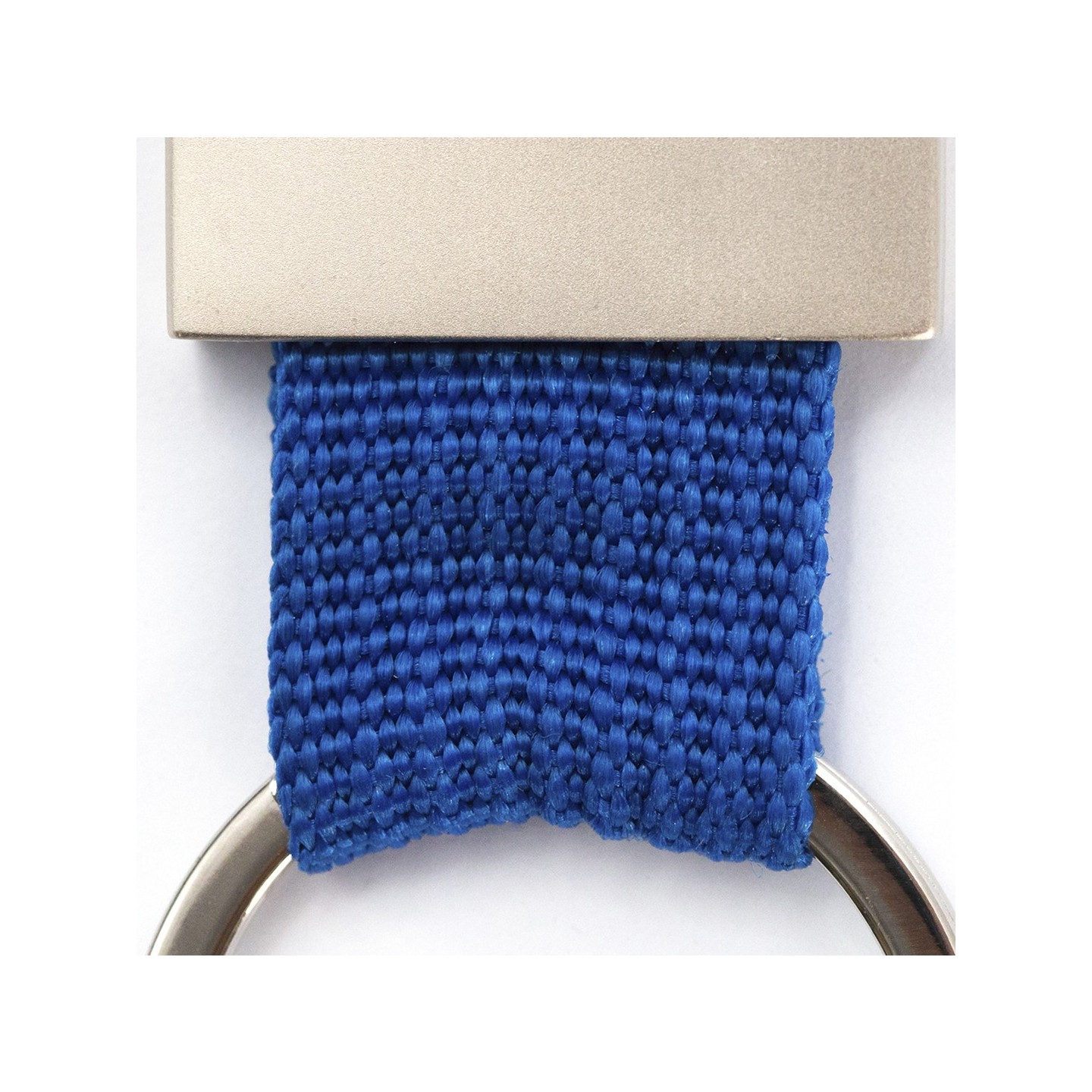 El Llavero Dagor tiene un divertido diseño con cinta de poliéster en vivos colores y cuerpo metálico troquelado. Regalo corporativo único y duradero.