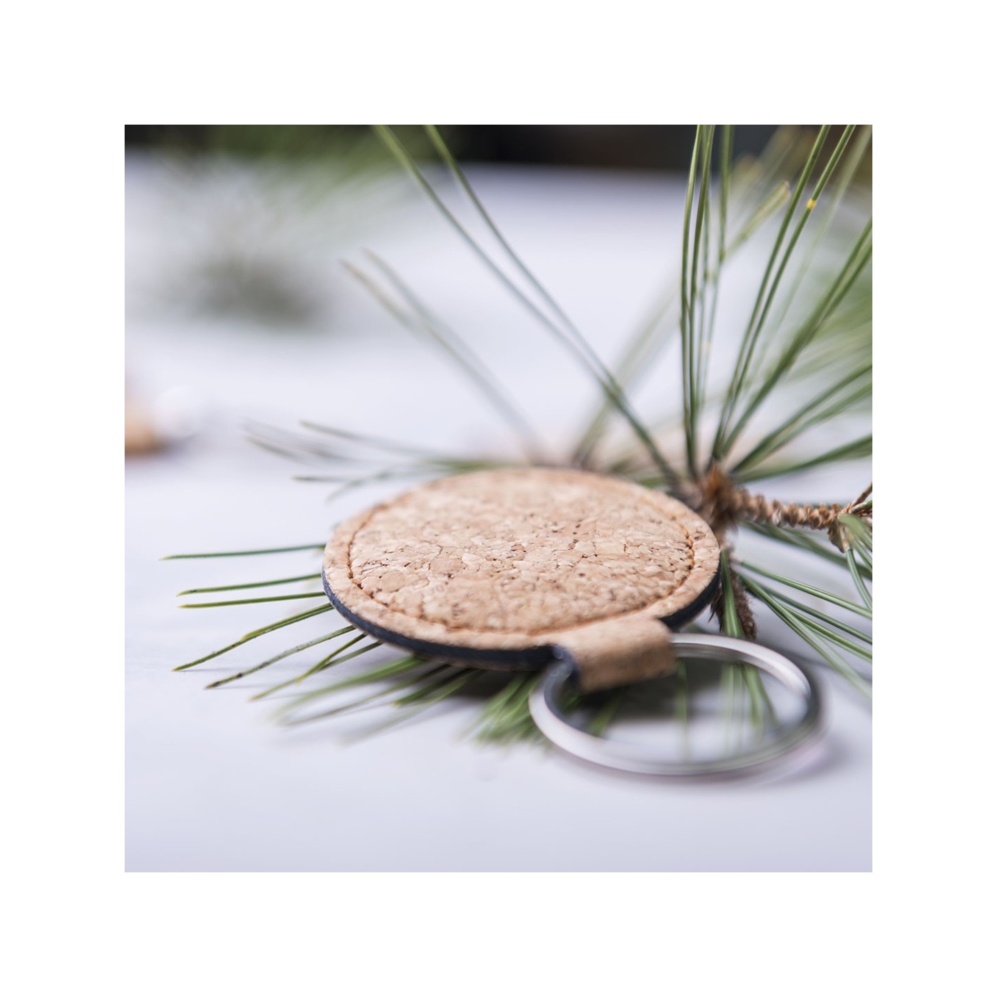 El corcho natural utilizado en la fabricación de este llavero es un material sostenible y respetuoso con el medio ambiente. El corcho se obtiene de la corteza del alcornoque sin dañar el árbol, lo que lo convierte en una opción ecológica y renovable.