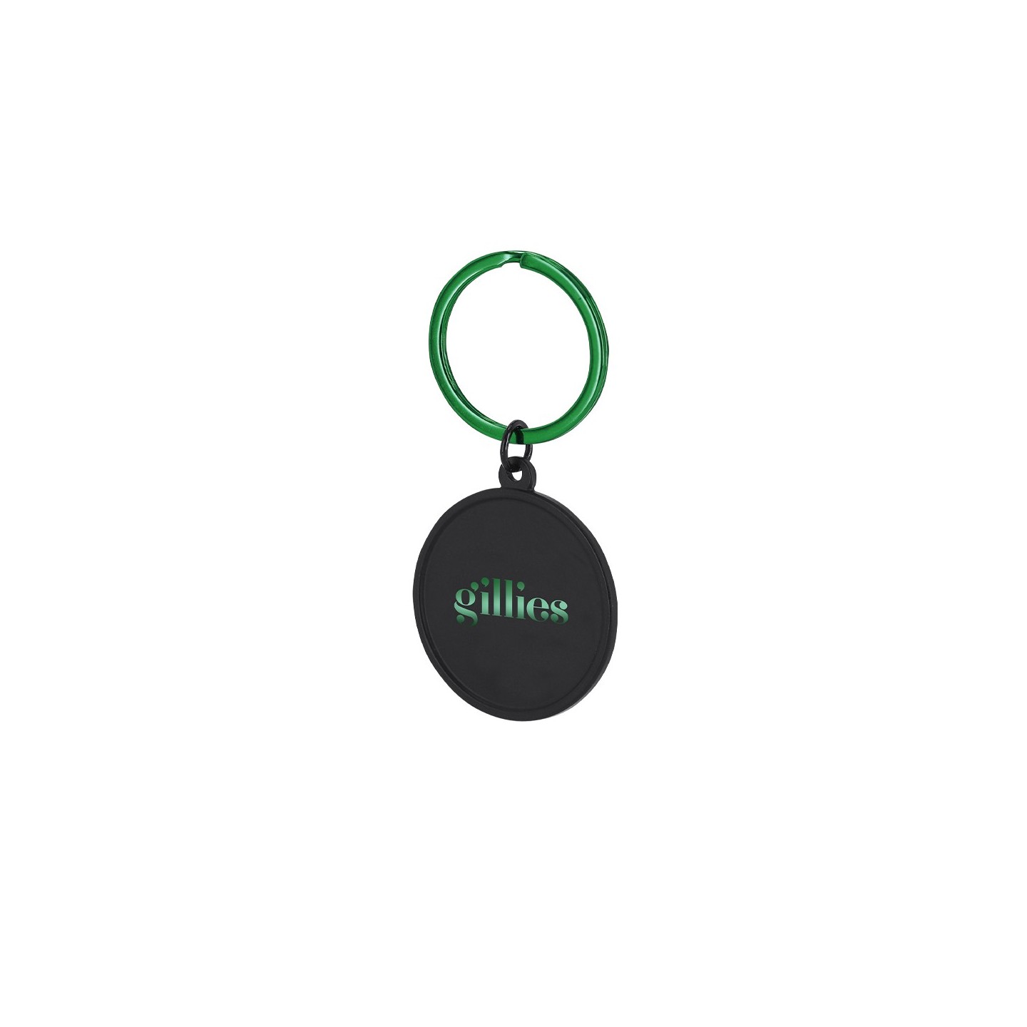 La anilla metálica a juego no solo añade un toque elegante al diseño, sino que también asegura una mayor durabilidad y resistencia. Este llavero es ligero y compacto, con unas medidas de 0.2 cm de grosor y 4.2 cm de diámetro, y un peso de 20 gramos, lo que lo convierte en una opción cómoda y práctica para llevar siempre contigo.