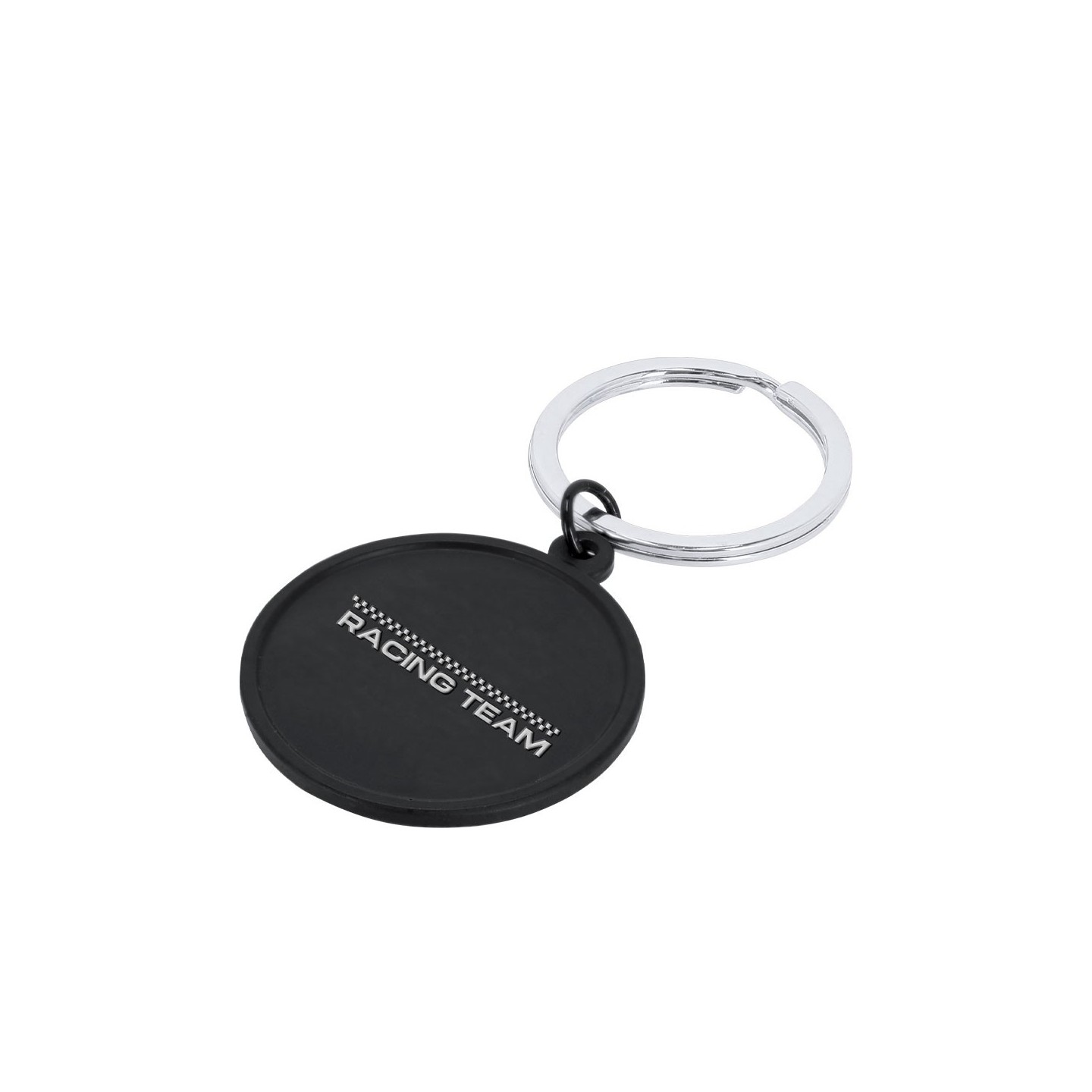 Llavero KLAPSON de aluminio negro, con diseño redondo y acabado a color. Personalizable con grabado láser y efecto espejo. Elegante y funcional.