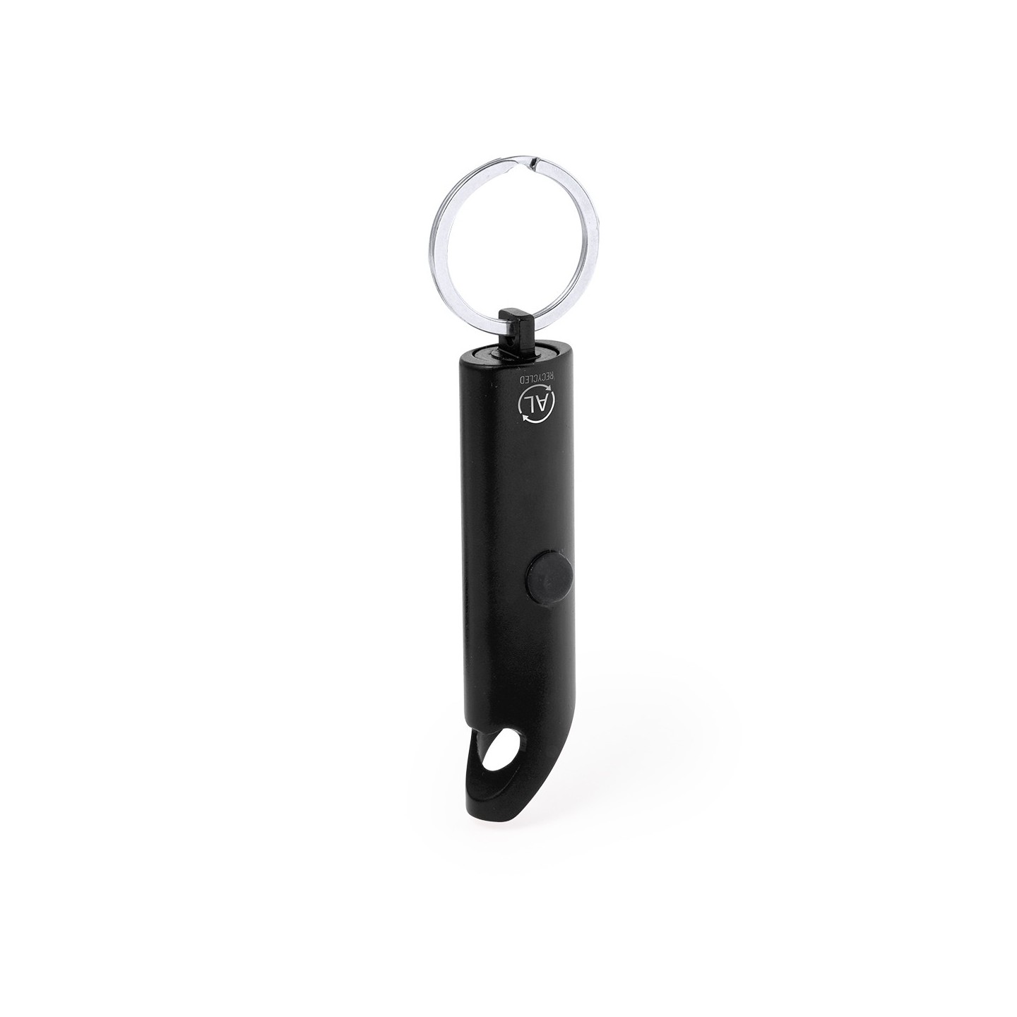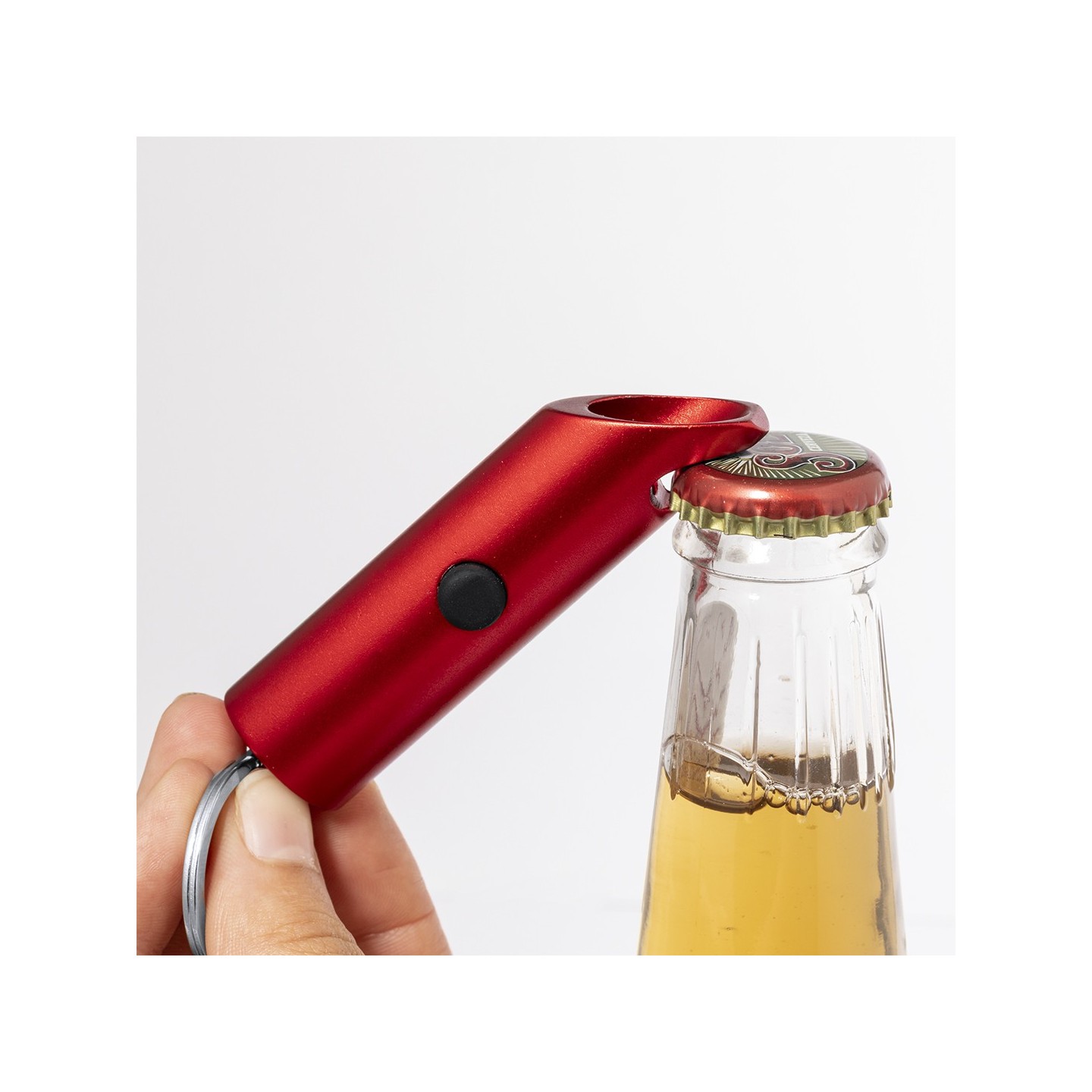 Resistente llavero abridor fabricado en Aluminio Reciclado. Este práctico accesorio cuenta con 3 luces LEDs alimentadas por pilas de botón incluidas. Su diseño incluye un abridor, ofreciendo versatilidad en un solo dispositivo. Incluye logotipo Aluminio Reciclado en un lateral y está disponible en una variada gama de colores. Presentada en caja de diseño kraft.