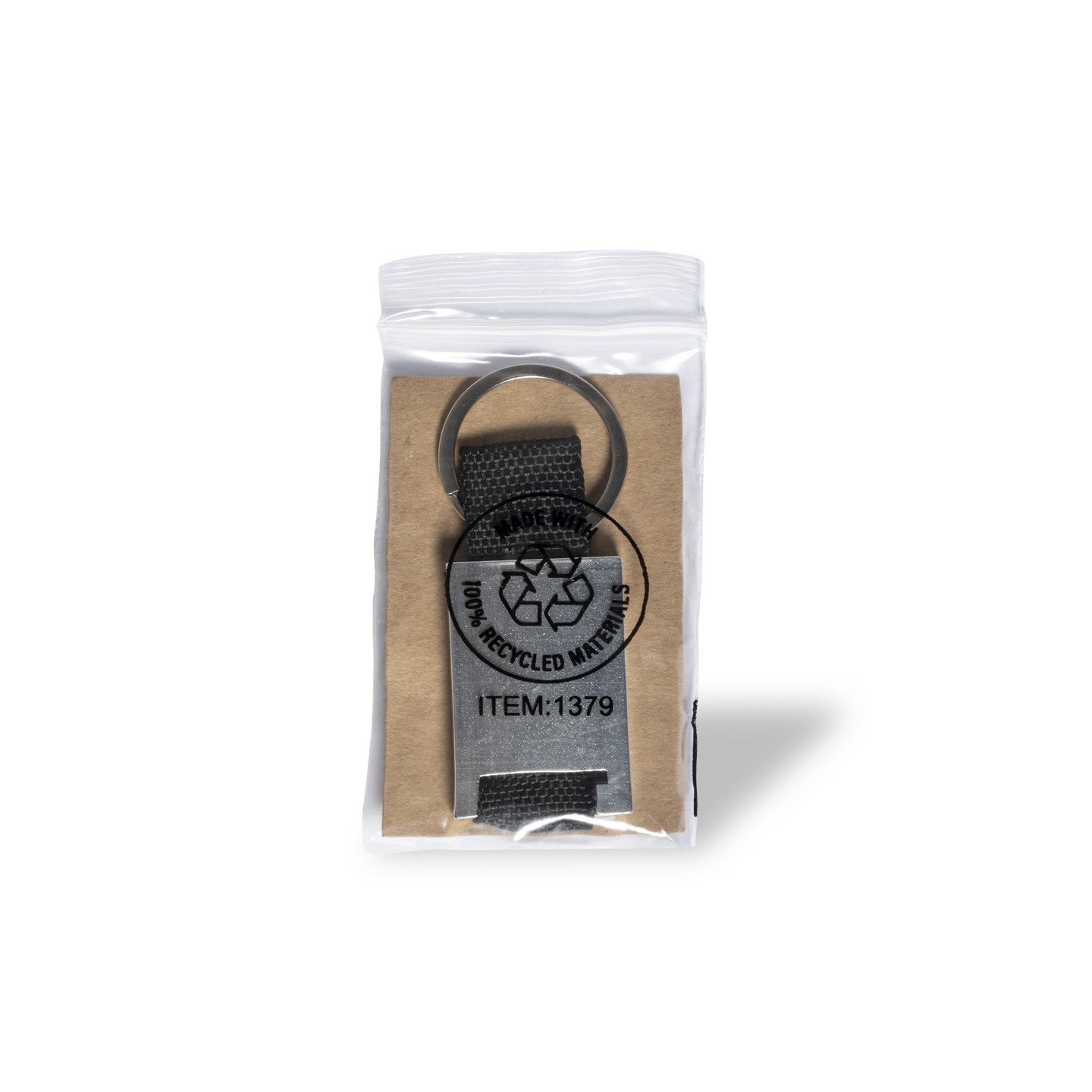 El llavero Lofly es una elección sostenible para tu empresa. Su cuerpo está fabricado en aluminio reciclado de acabado plateado, mientras que la cinta aporta un toque de color. Este llavero destaca por su amplia superficie de marcaje y su distintivo de aluminio reciclado. Incluye una anilla llavero metálica a juego y se presenta en una bolsa individual con cartón kraft.