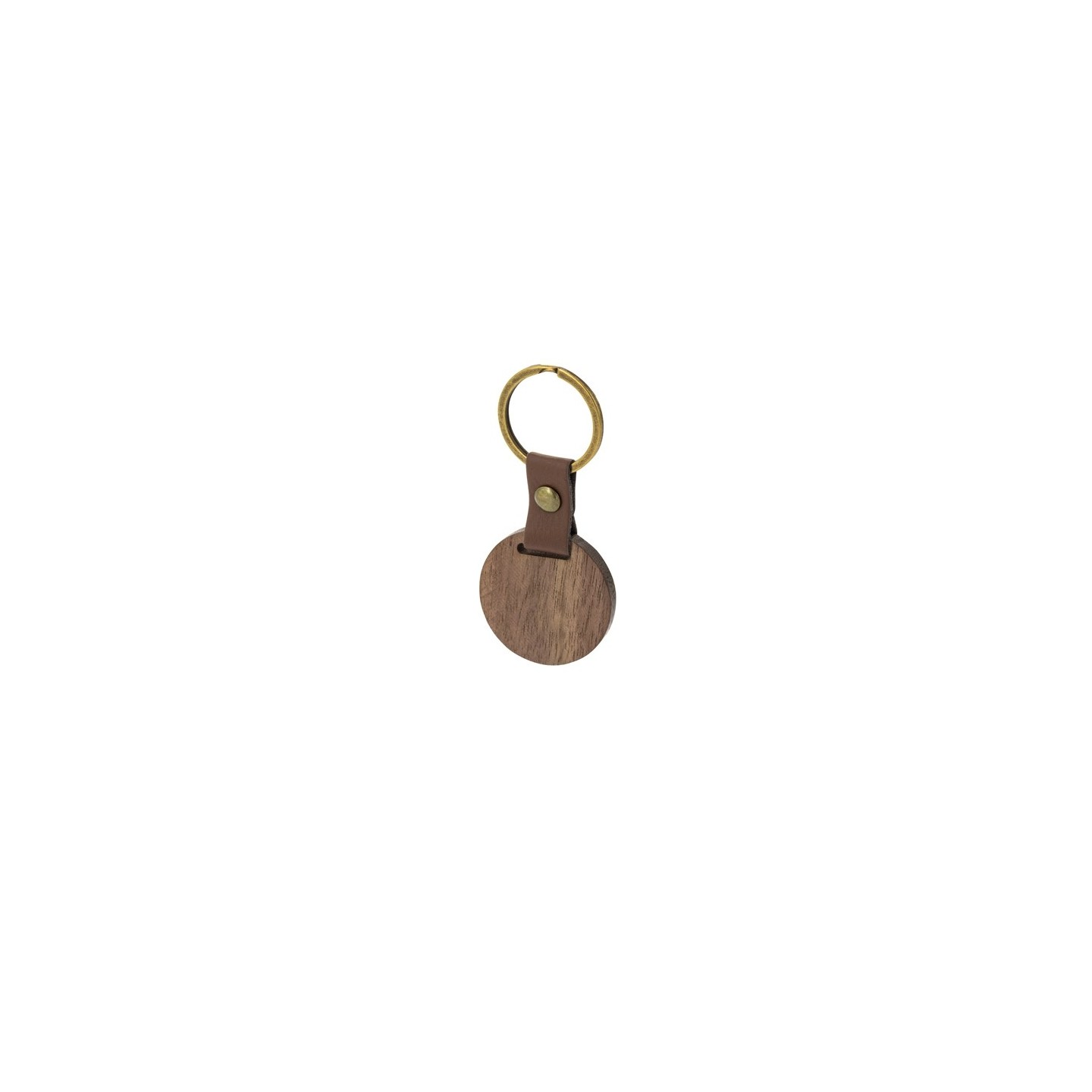 Llavero redondo madera con diseño artesanal y acabado natural. Perfecto para quienes buscan un accesorio único y sostenible. Disponible en bolsita individual.