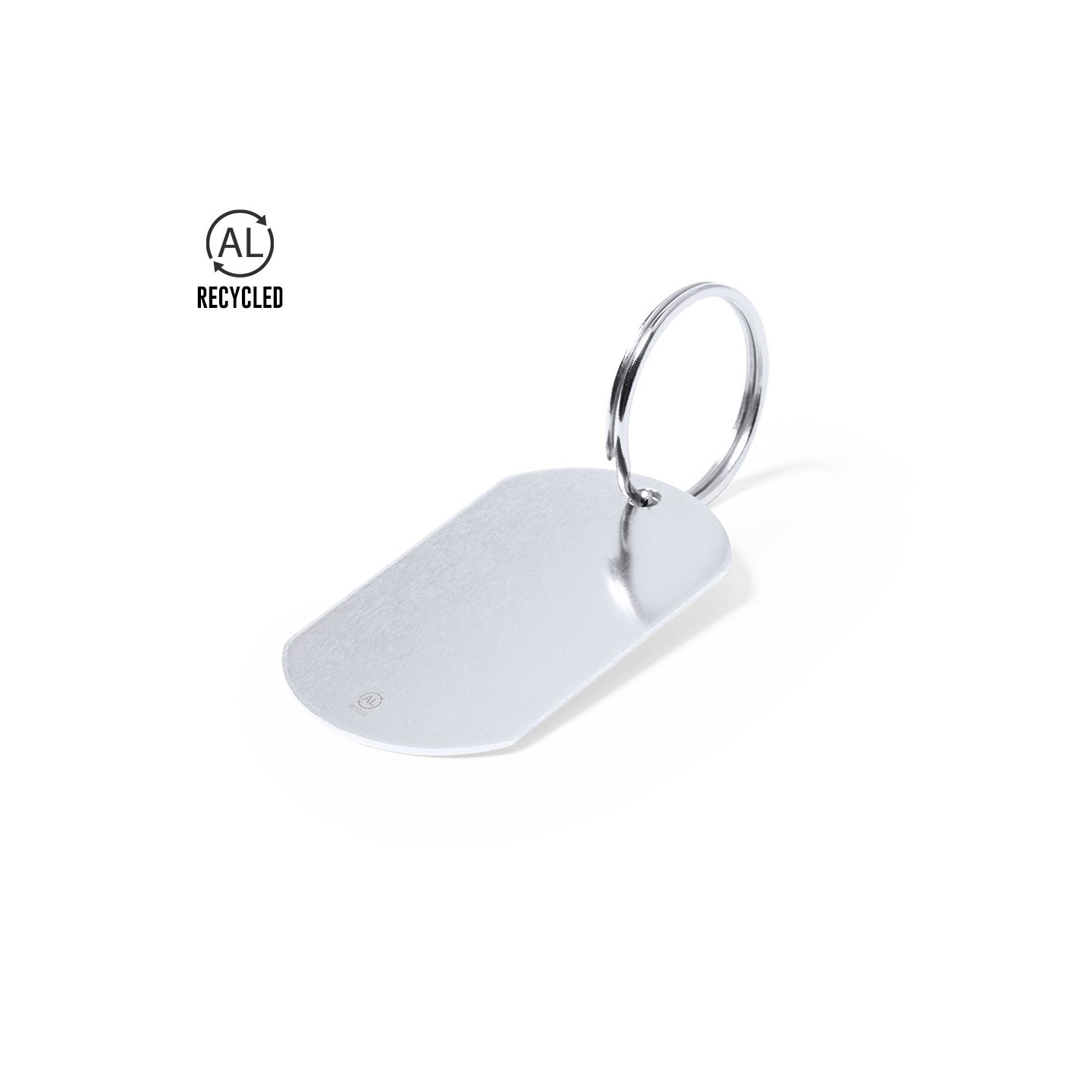 El Llavero Mailtek es sostenible y personalizado. Aluminio reciclado plateado, anilla llavero metálica. Ideal para regalos corporativos.