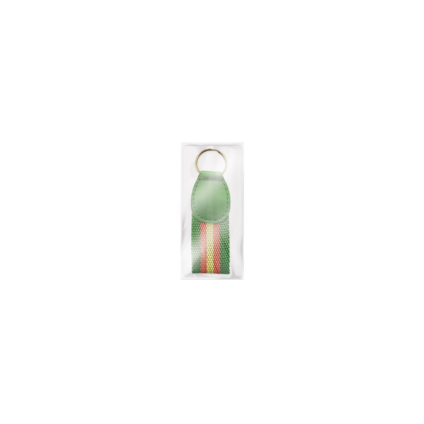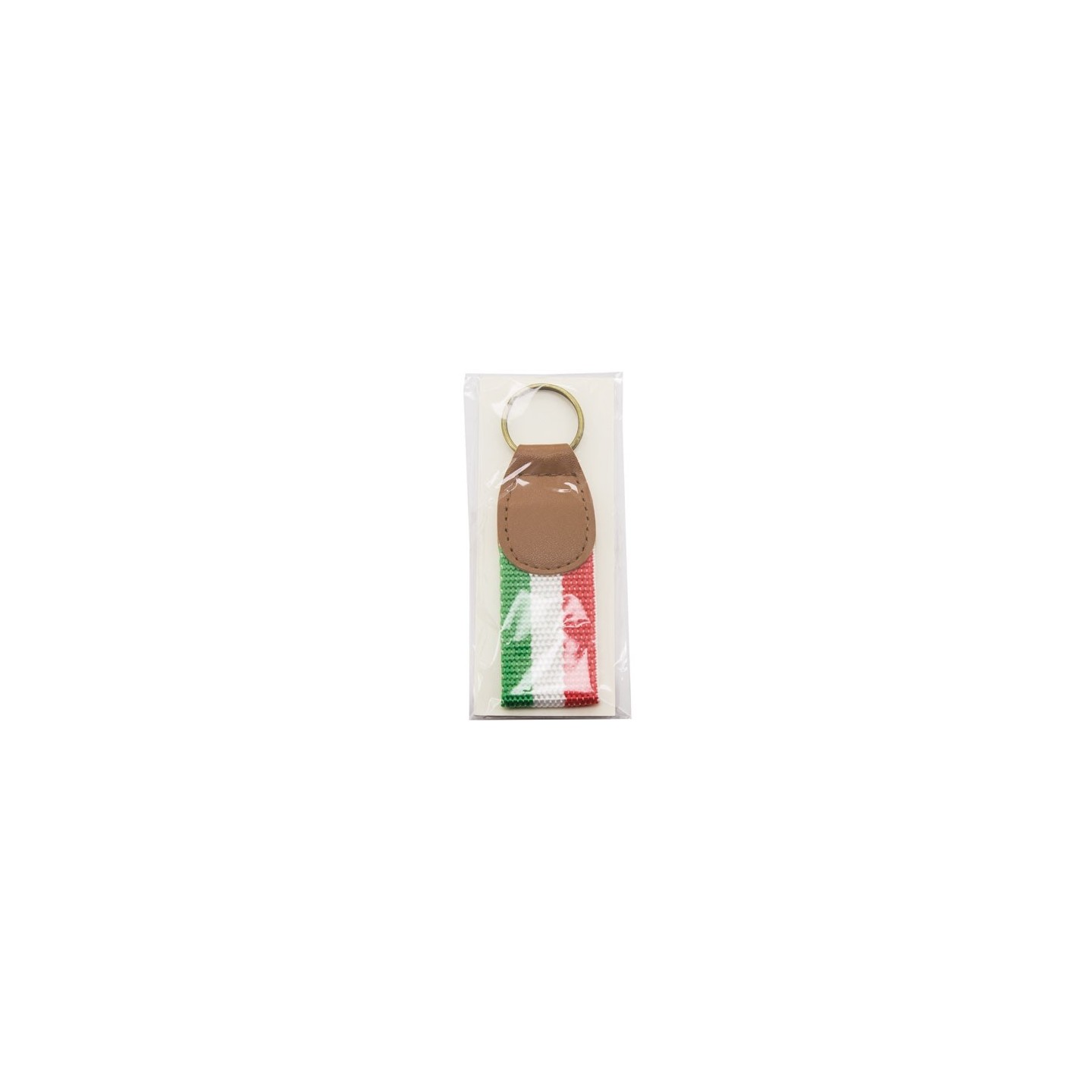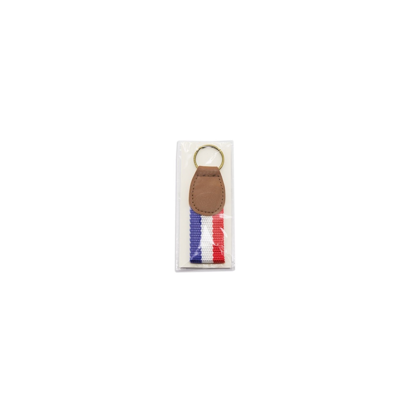 Llavero de polipiel y nylon con los colores de las banderas de España, Francia e Italia. Con anilla dorada y acabado cosido. Presentado en bolsa individual con base de cartón.