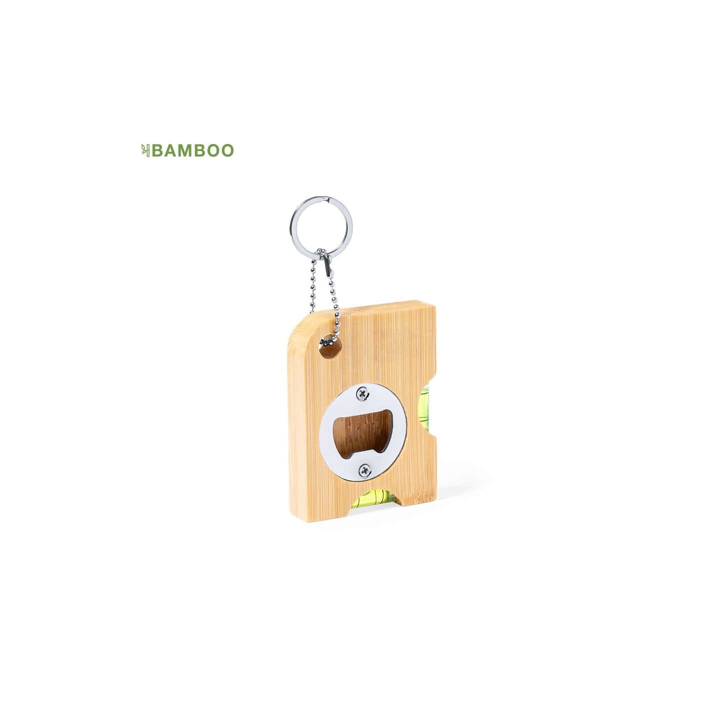 El Llavero Multifunción Nish es práctico y sostenible, fabricado en bambú con abridor integrado. Ideal como regalo personalizado
