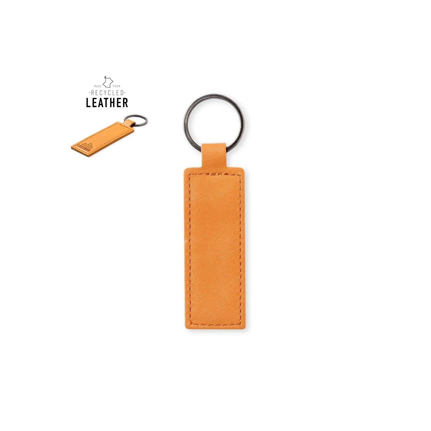 El Llavero Noemix es sofisticado accesorio de cuero reciclado con anilla metálica y diseño rectangular. Personalizable y eco-friendly.