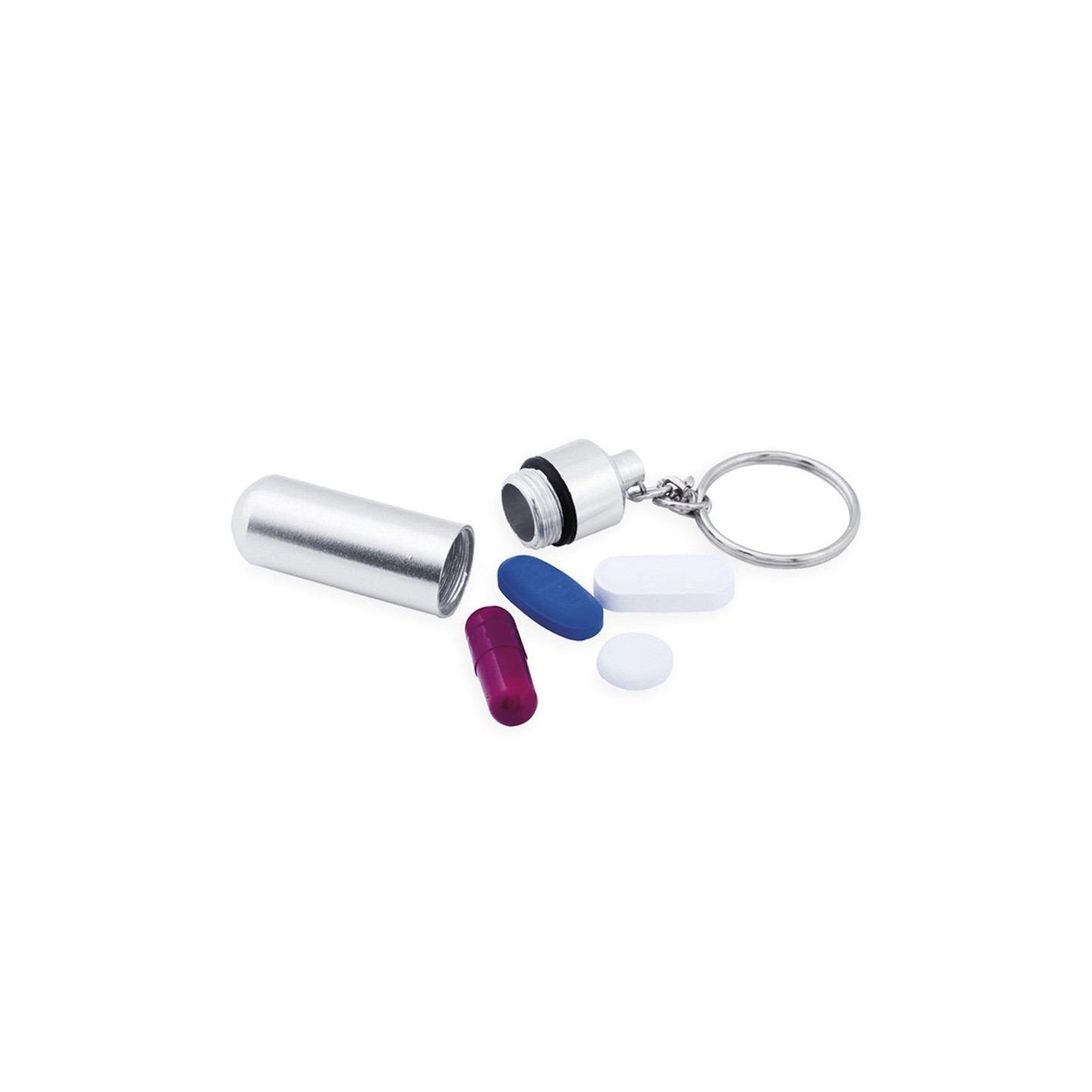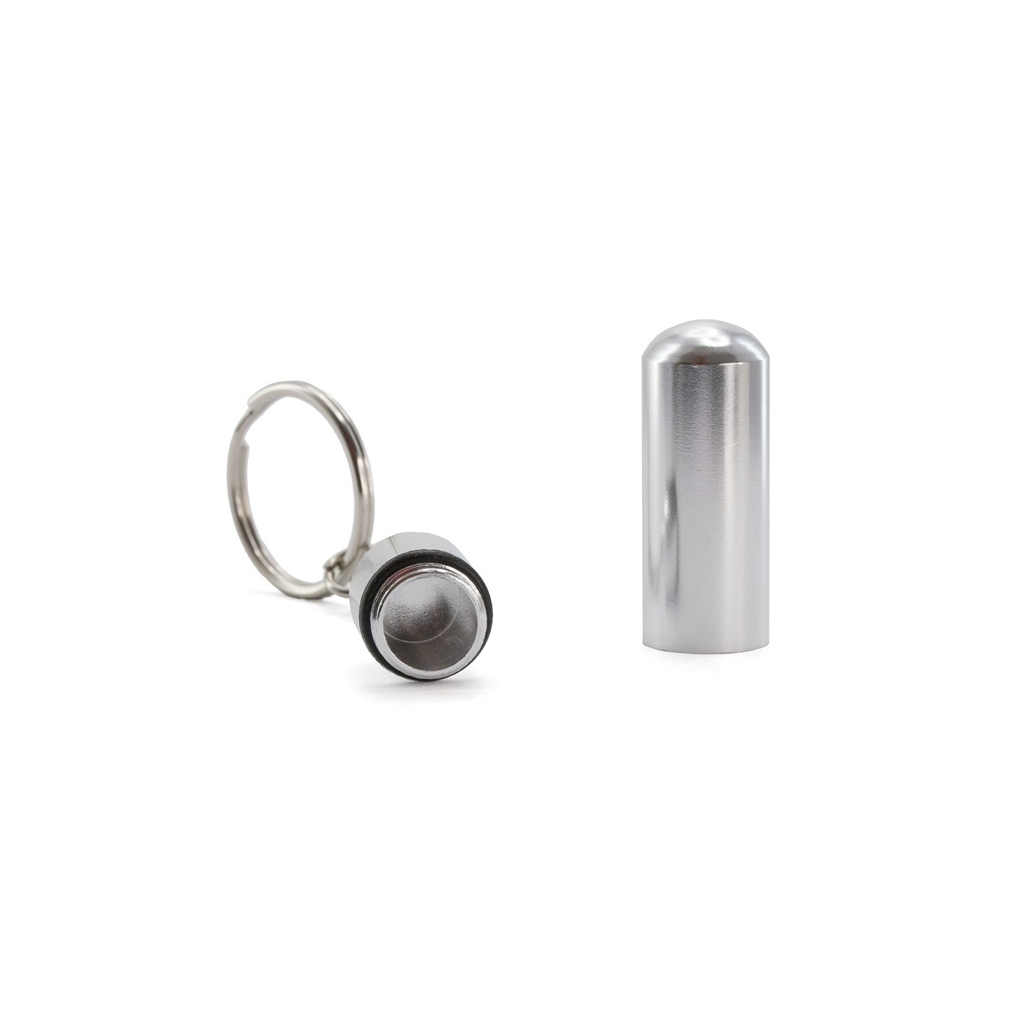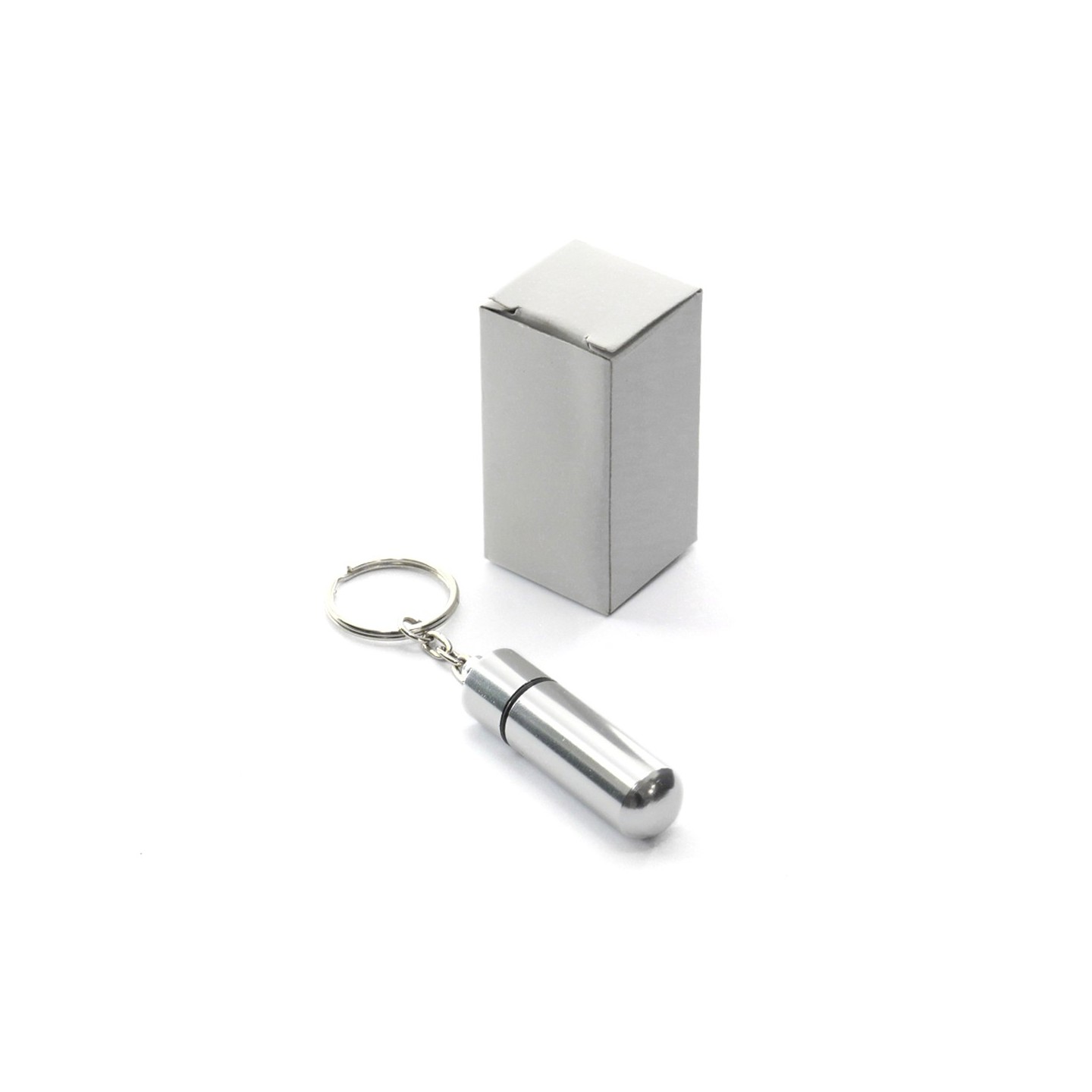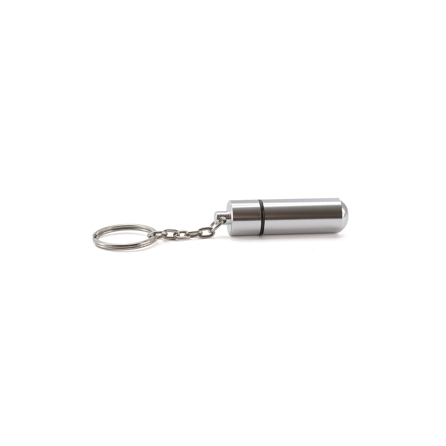 El Llavero pastillero Alumpill tiene un diseño discreto, cuerpo de aluminio brillante y cierre a rosca. ¡Estilo y funcionalidad en un accesorio compacto!