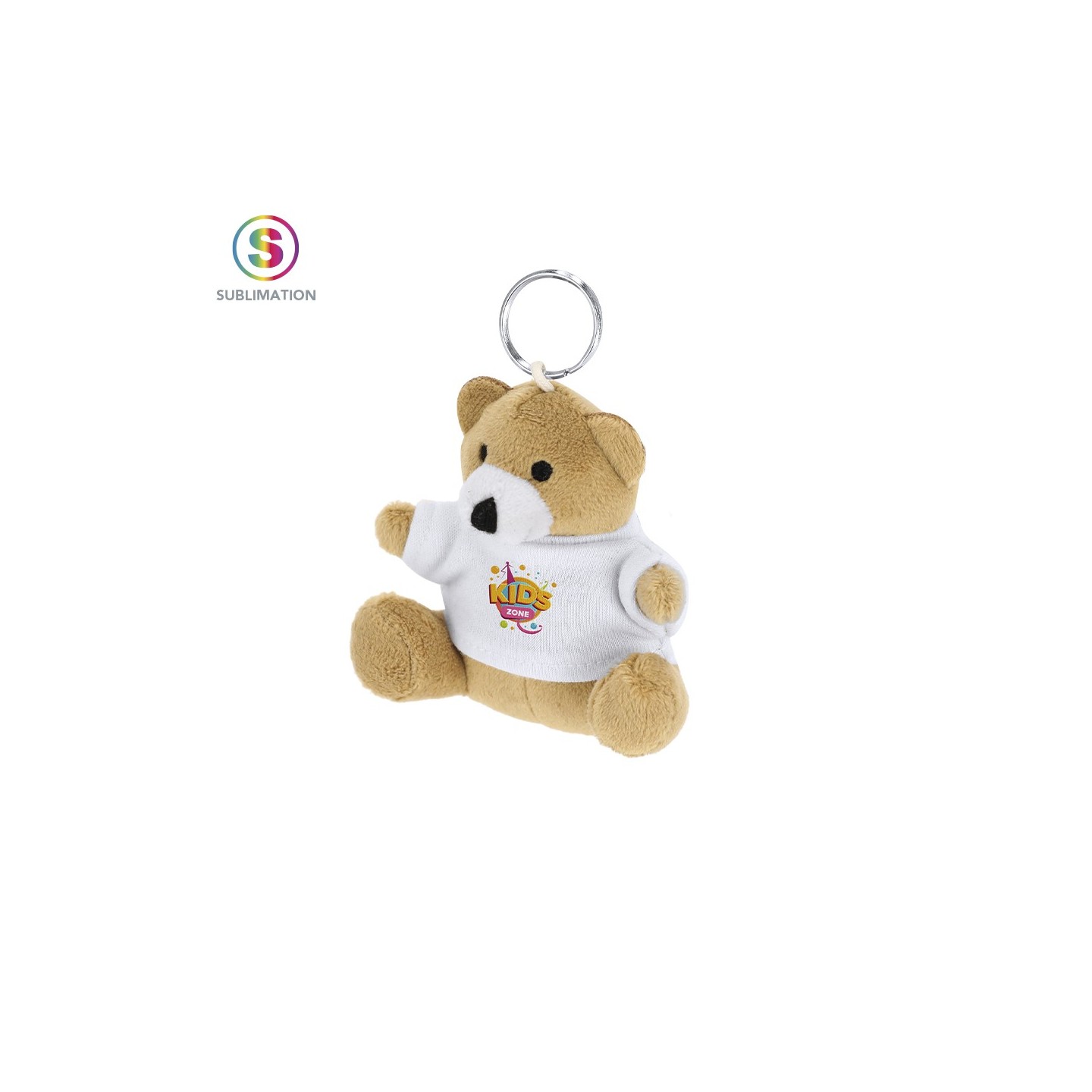 Llavero osito de peluche con camiseta personalizable. Ideal para sublimación, regalo perfecto para eventos y promociones.
