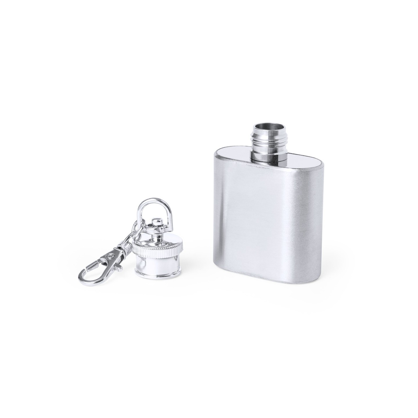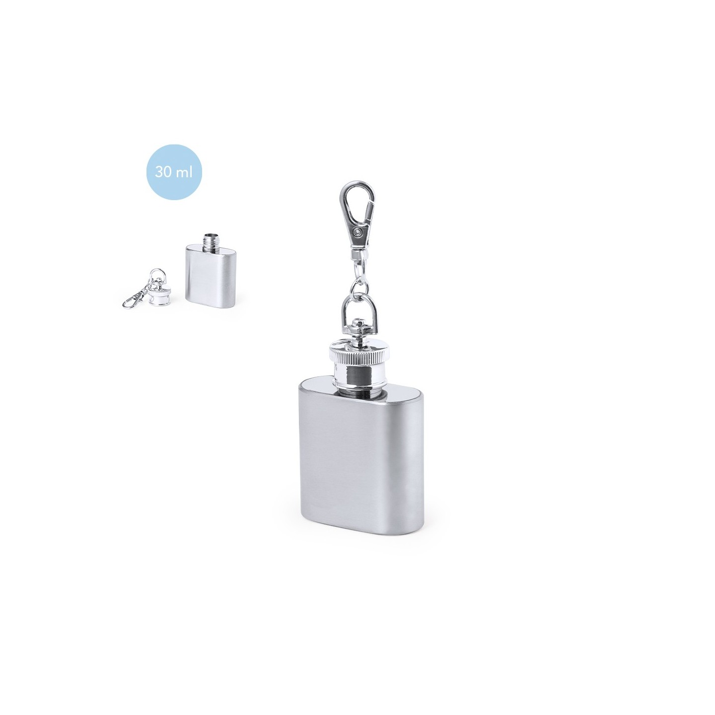 El Llavero Petaca Deneb es práctico y elegante en acero inoxidable, con 30 ml de capacidad. Ideal para regalos corporativos. Personalizable
