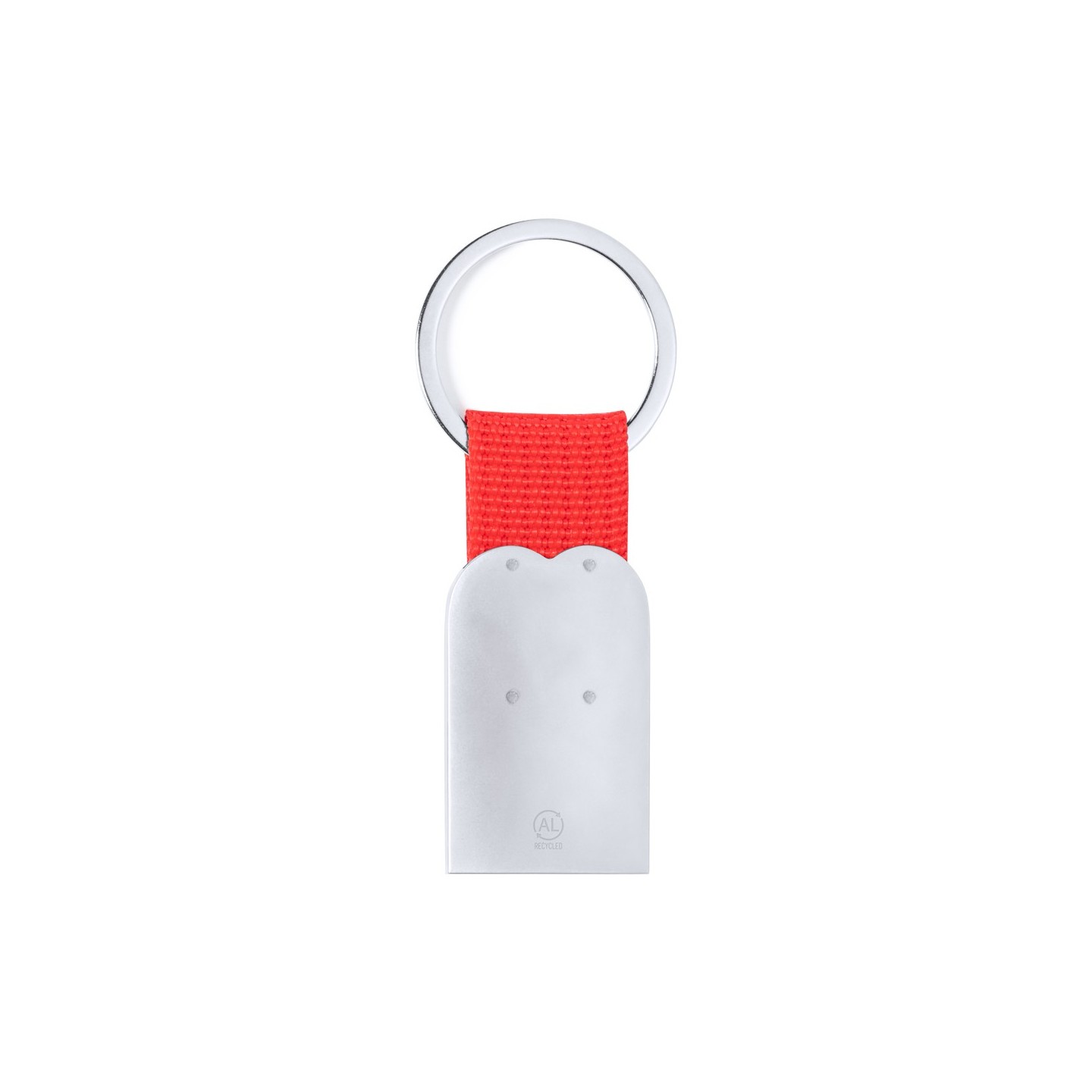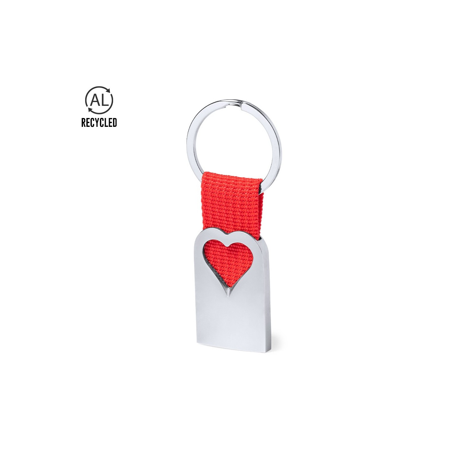 El cuerpo del llavero Sontiol presenta un corazón troquelado y una cinta en color, brindándole un encanto adicional. Además, cuenta con una amplia superficie de marcaje, lo que te permite personalizarlo con el logotipo o mensaje de tu empresa. También exhibe el distintivo de aluminio reciclado, destacando el compromiso con la sostenibilidad.