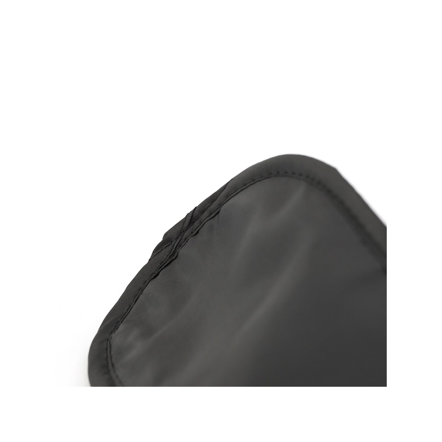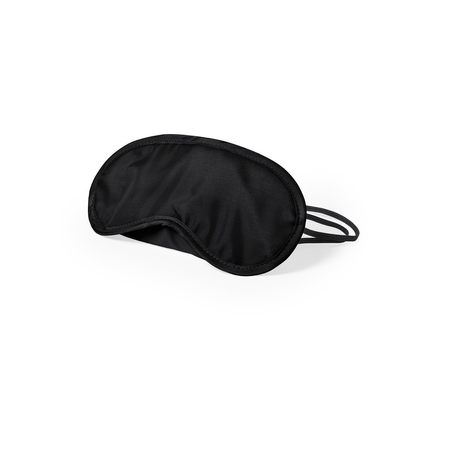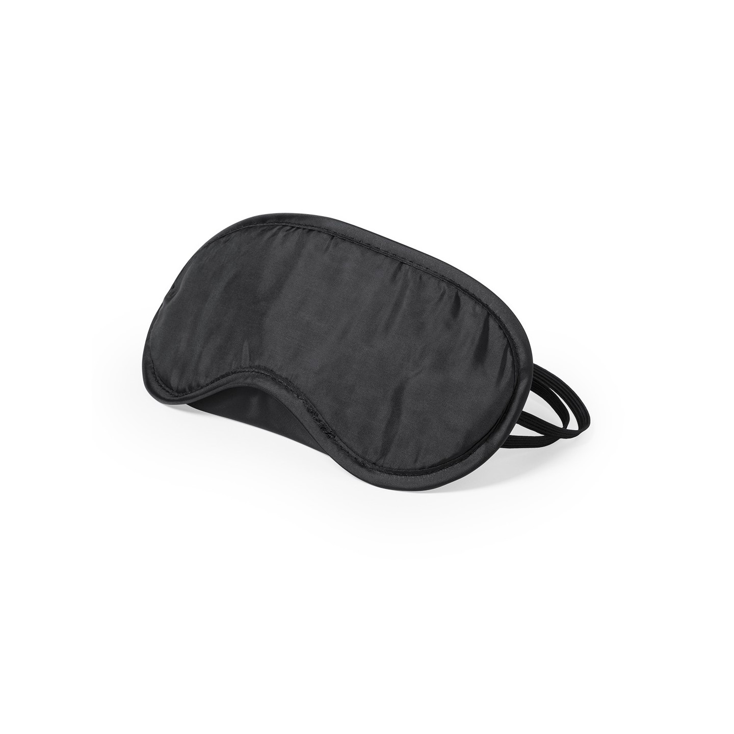 Mascarilla de microfibra negra con doble elástico ajustable para mayor comodidad en viajes y descanso.