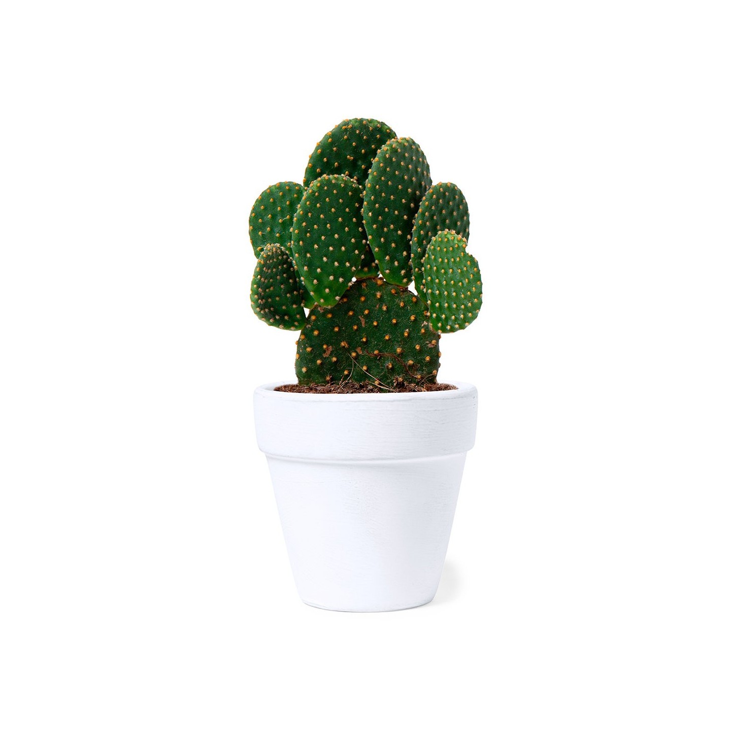 El macetero está fabricado en terracota blanca, lo que le da un aspecto elegante y moderno. Además, se incluye una bolsita de sustrato de crecimiento, asegurando las condiciones óptimas para el crecimiento del cactus.
