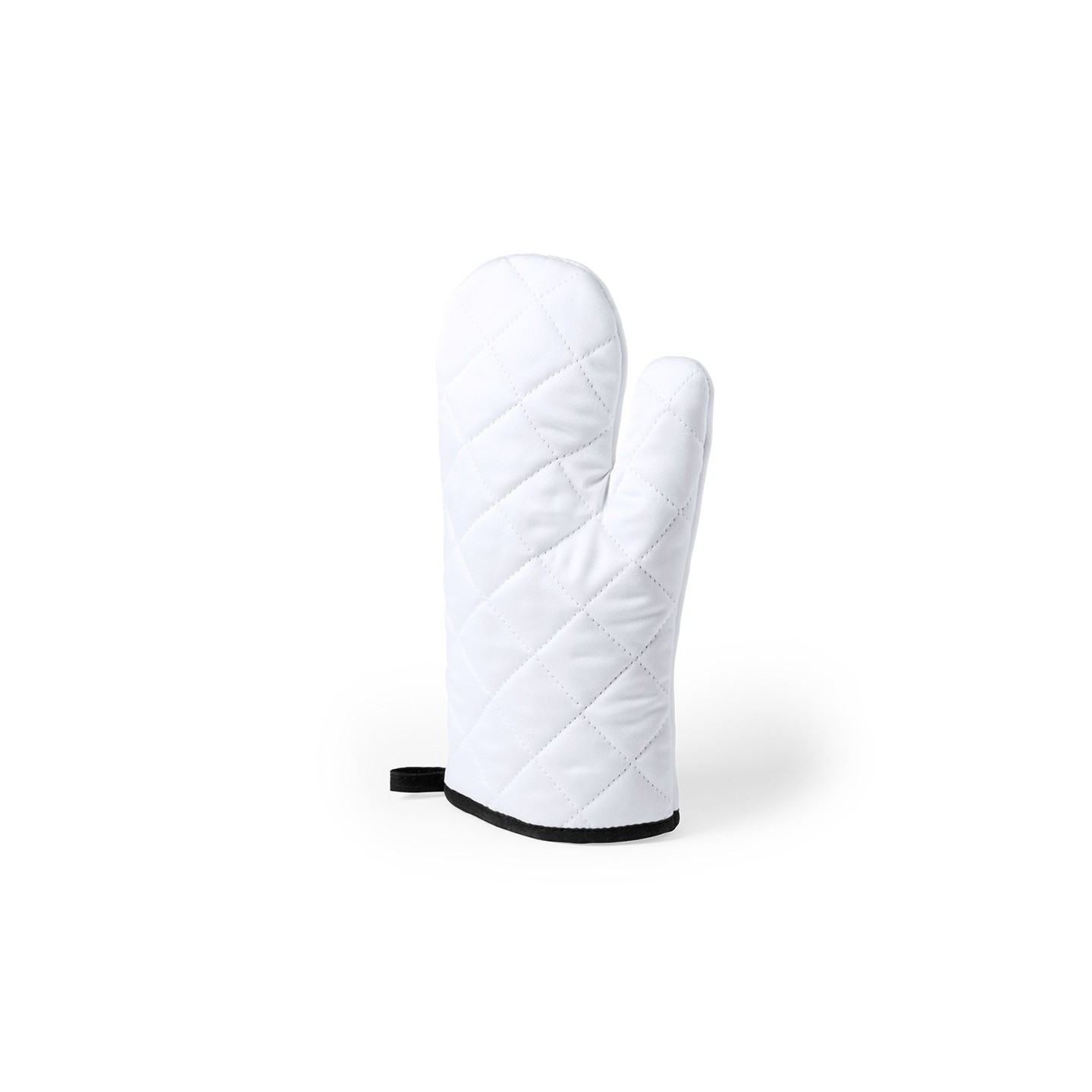 Manopla de cocina Silax, suave poliéster blanco con bordes vibrantes. Personalizable y práctica para proteger tus manos. ¡Regalo ideal para empresas!