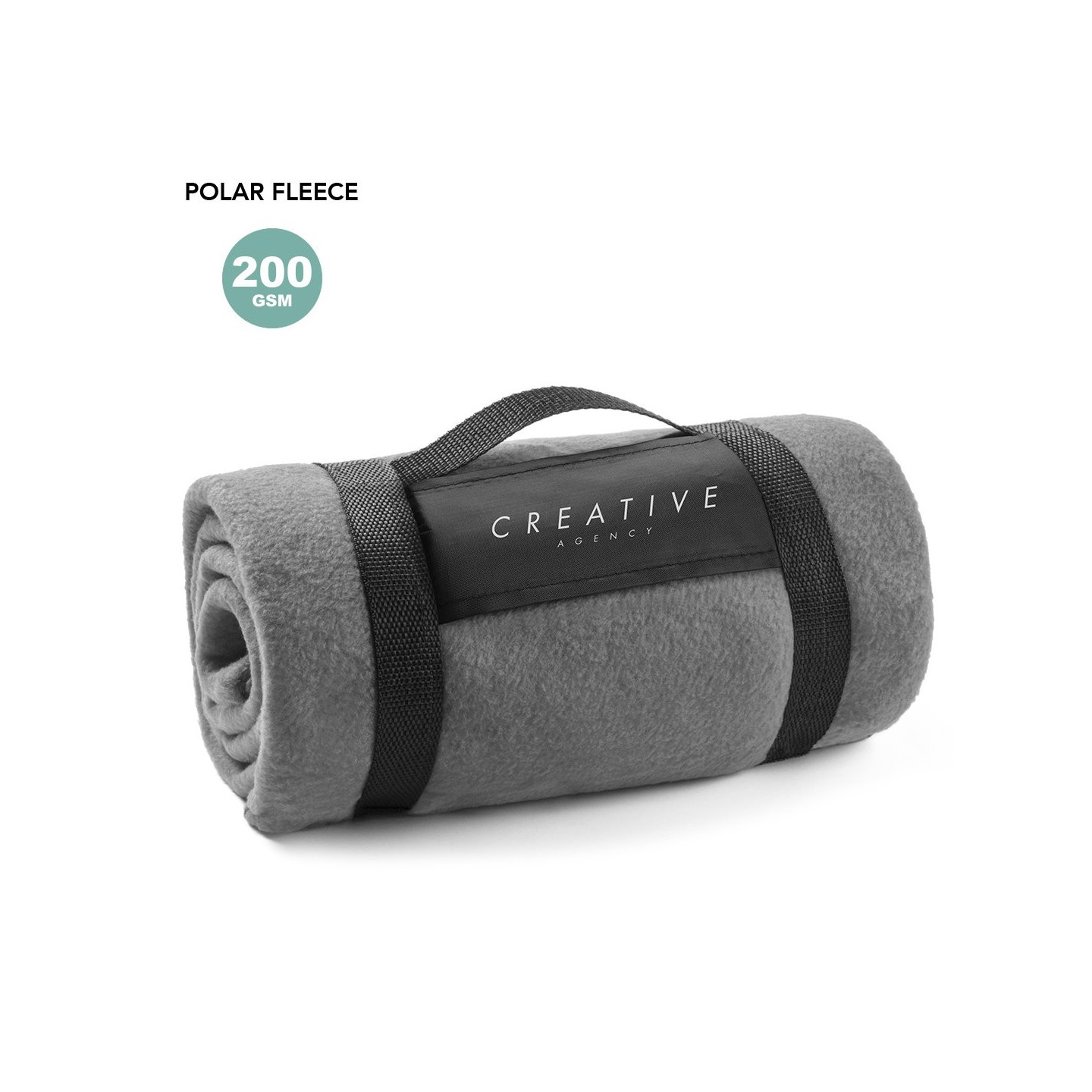 Manta Mountain de 130x160cm en suave polar fleece anti-pilling. Variedad de colores vivos. Asa de transporte para mayor comodidad. Personalizable.