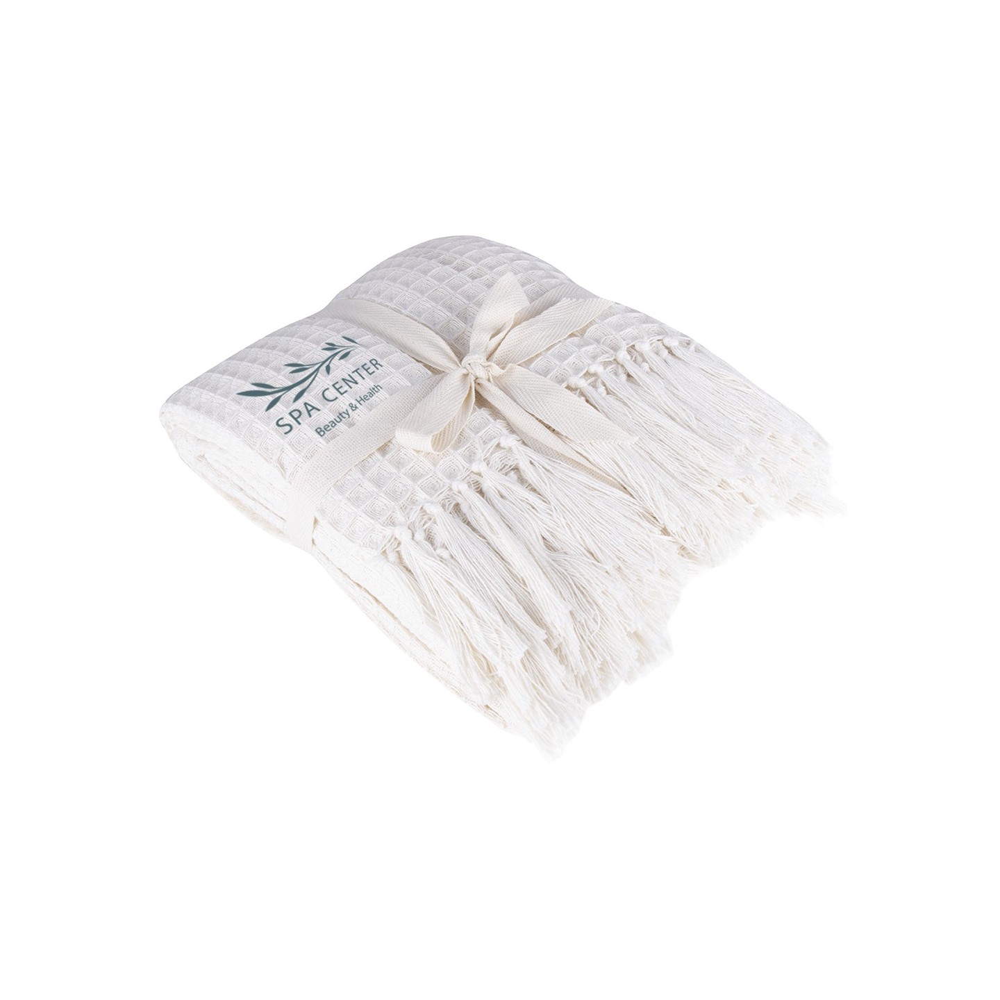 La Manta Plaid mide 130 x 160 cm, de 100% algodón, 350 gr/m². Elegancia y suavidad con certificación AZO Free. Regalo corporativo de lujo.