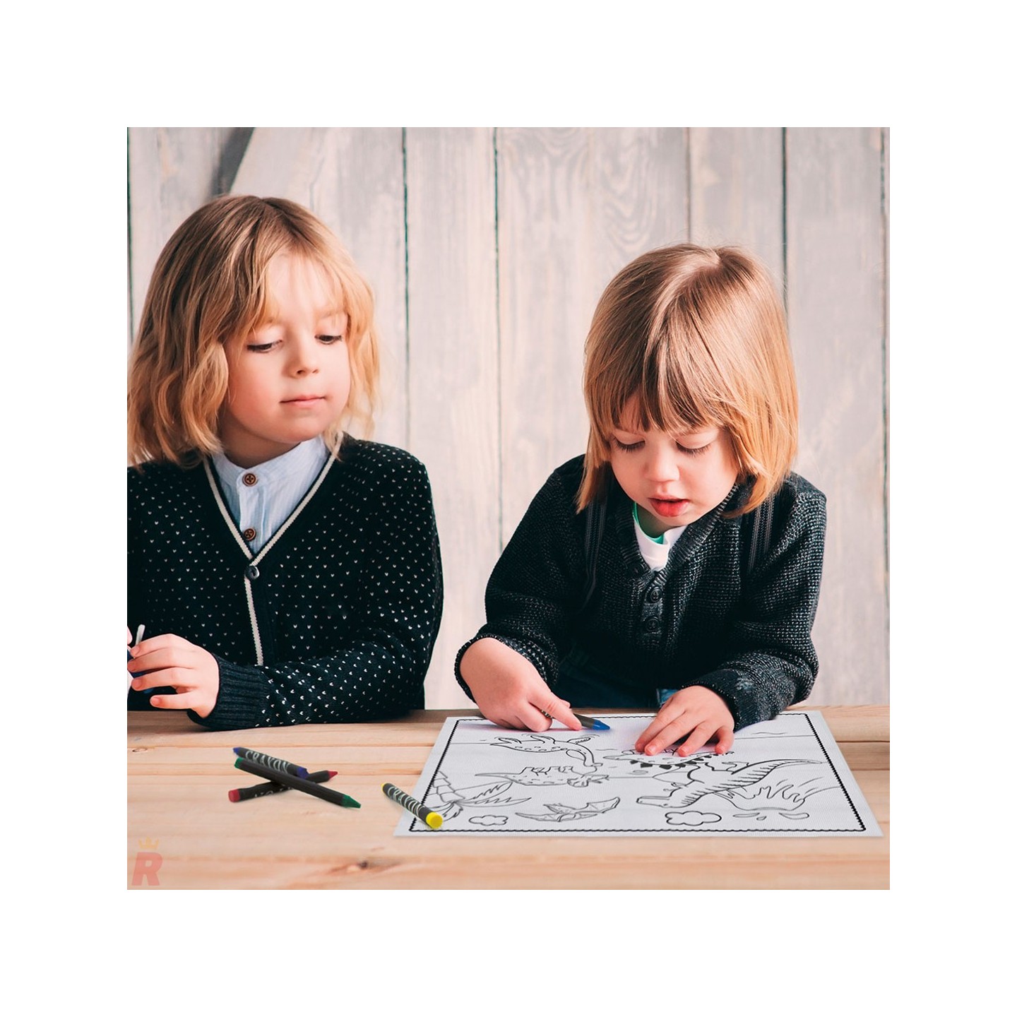 Mantel Infantil Colorear Ceras SAURUS, el regalo perfecto para que los más pequeños disfruten de horas de diversión mientras dan rienda suelta a su creatividad. Fabricado en resistente material non woven, este mantel de entretenimiento es ideal para pintar y colorear, convirtiéndose en una actividad lúdica y educativa que encantará a niños y niñas.