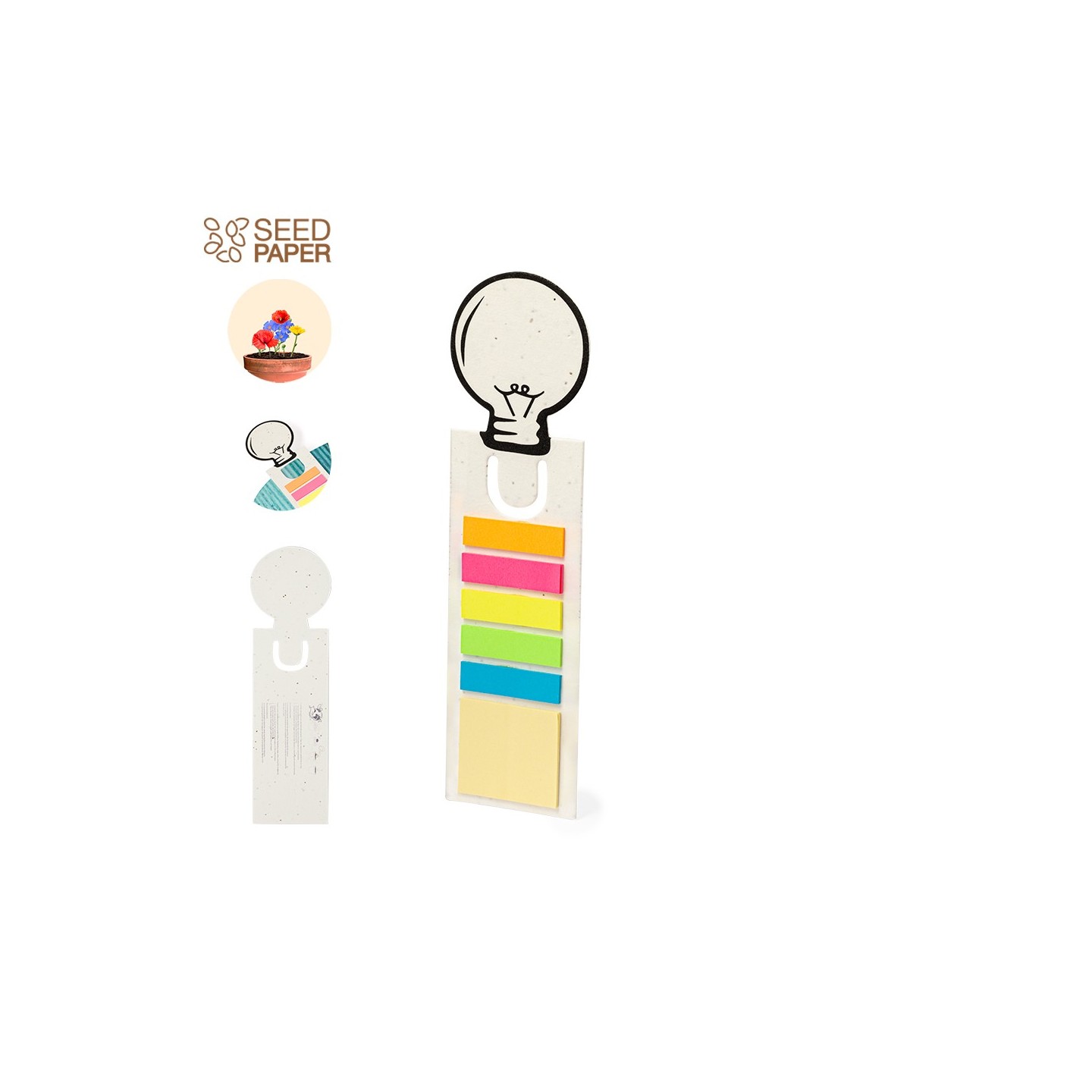 Marca tus lecturas con estilo eco con el Marcapáginas Semillas Kich. Incluye notas adhesivas y semillas de petunia. ¡Personalizable!