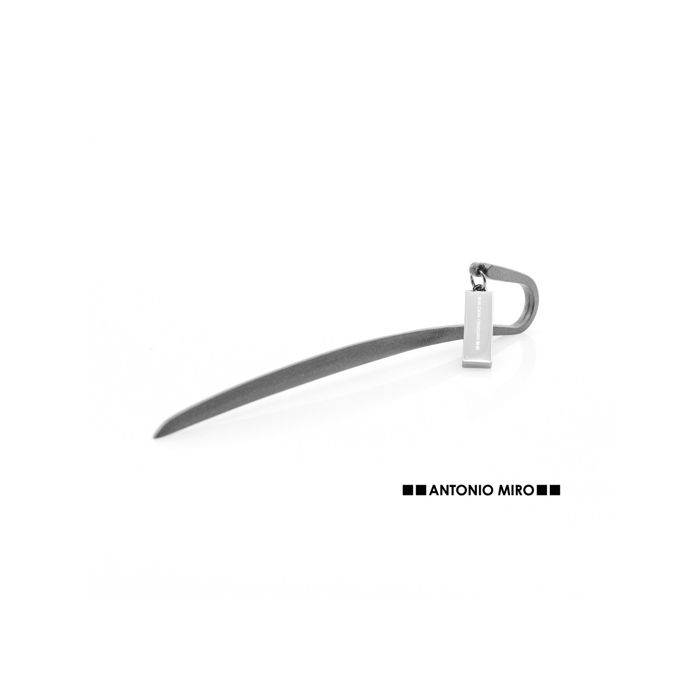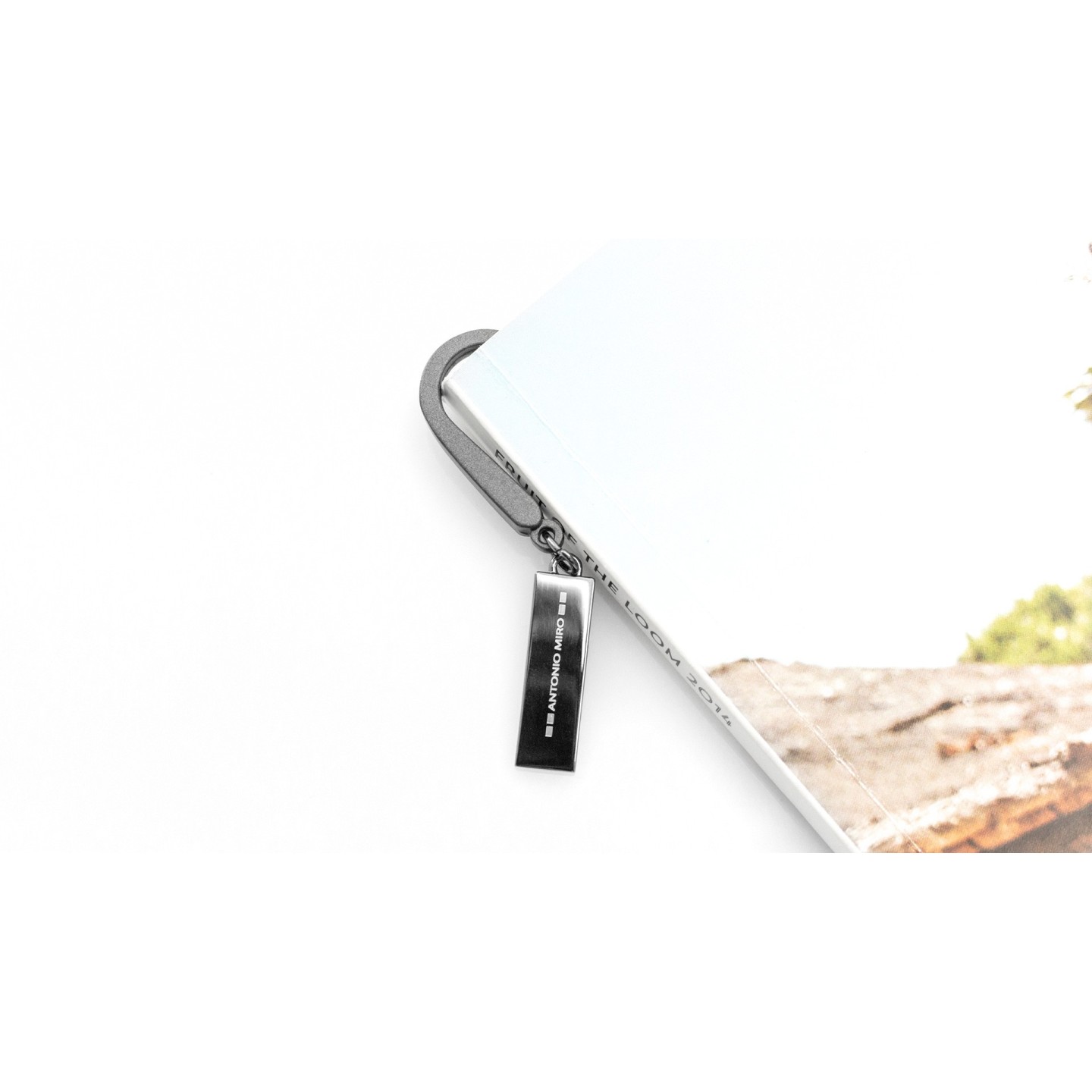El Marcapáginas Baloa es un regalo elegante y sofisticado para amantes de la lectura. Su diseño metálico en gris oscuro con el logotipo de Antonio Miró es pura elegancia.