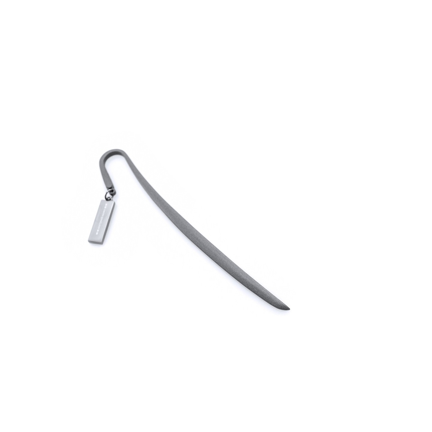 El Marcapáginas Baloa es pura elegancia metálica en gris oscuro con logotipo de Antonio Miró. Regalo sofisticado para amantes de la lectura.