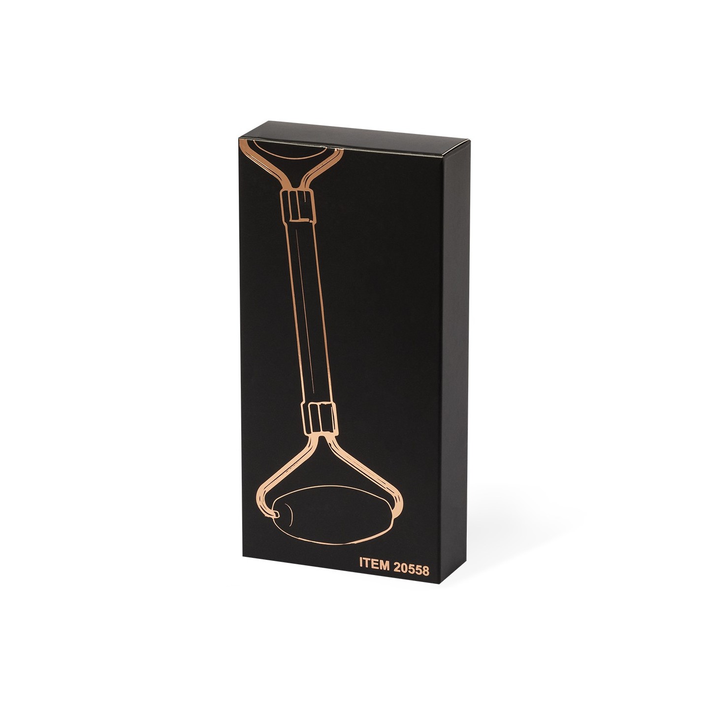 El Masajeador Facial Zynka es un rodillo de piedra jade rosa para reducir hinchazón y mejorar elasticidad. Presentado en caja negra. Personalizable.