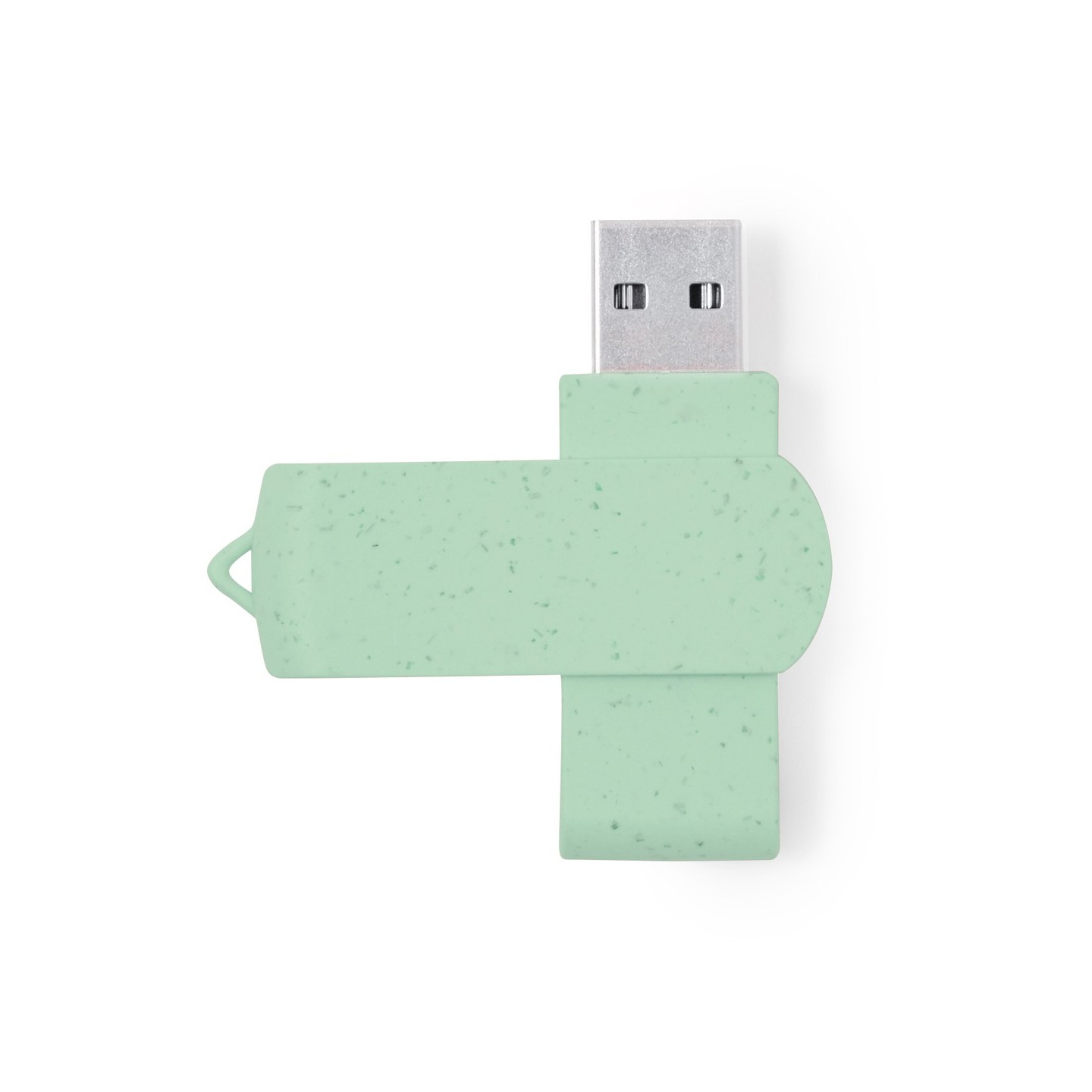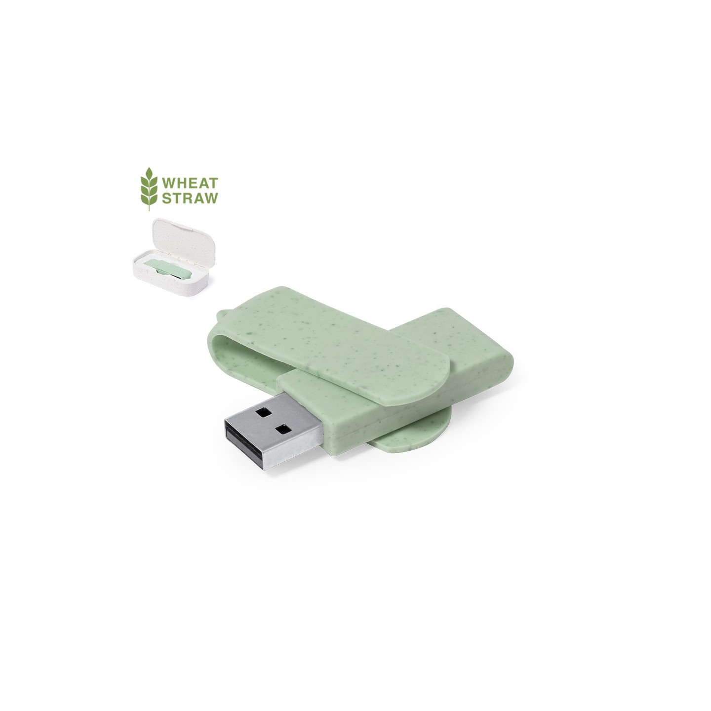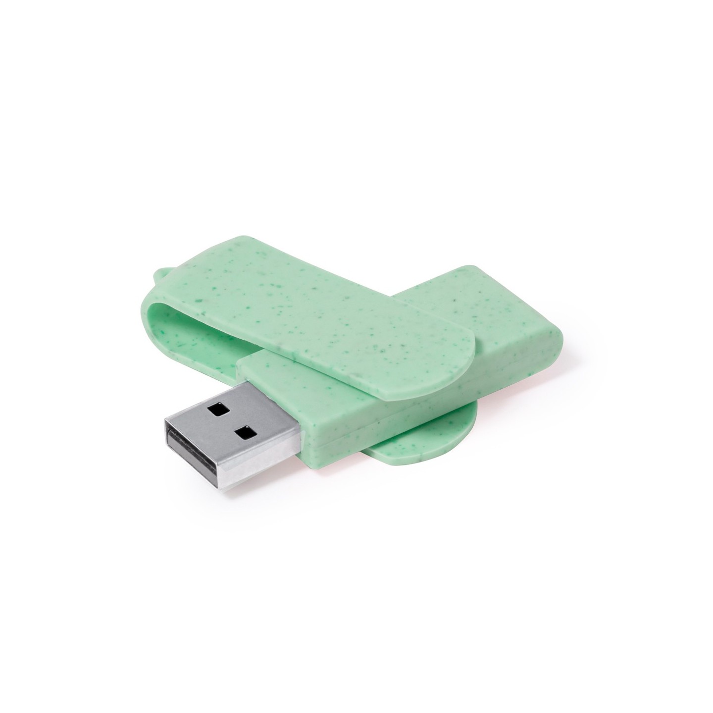 La Memoria USB Brounik 16GB es sostenible y colorida. Fabricada en caña de trigo con clip giratorio. Presentada en estuche eco. Personalizable con tu logo.