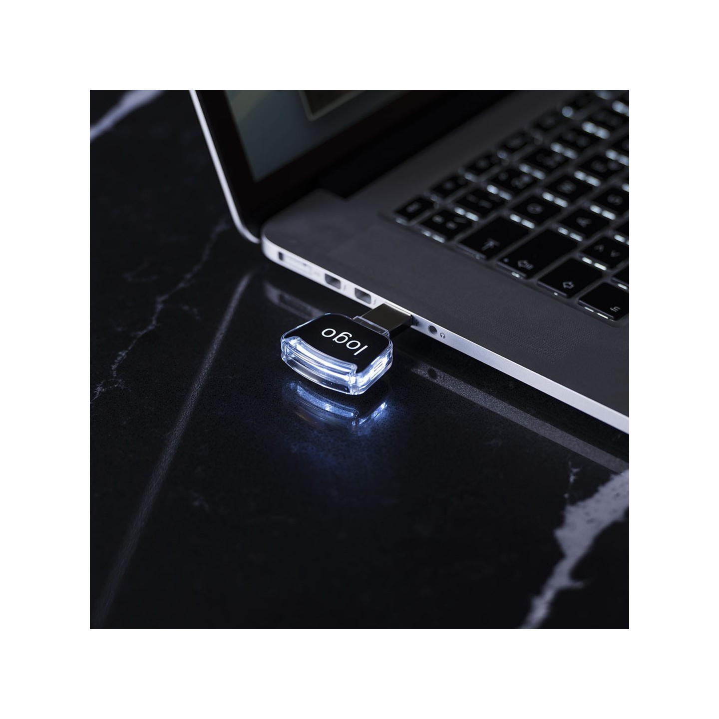 Una de las características más llamativas de la Memoria USB Novuk es su luz LED interior. Esta luz agrega un toque de sofisticación y resalta el logotipo de tu empresa cuando la memoria está en uso. Imagina el impacto positivo que causará en tus clientes y empleados al ver su logo brillar con elegancia cada vez que utilicen esta memoria USB.