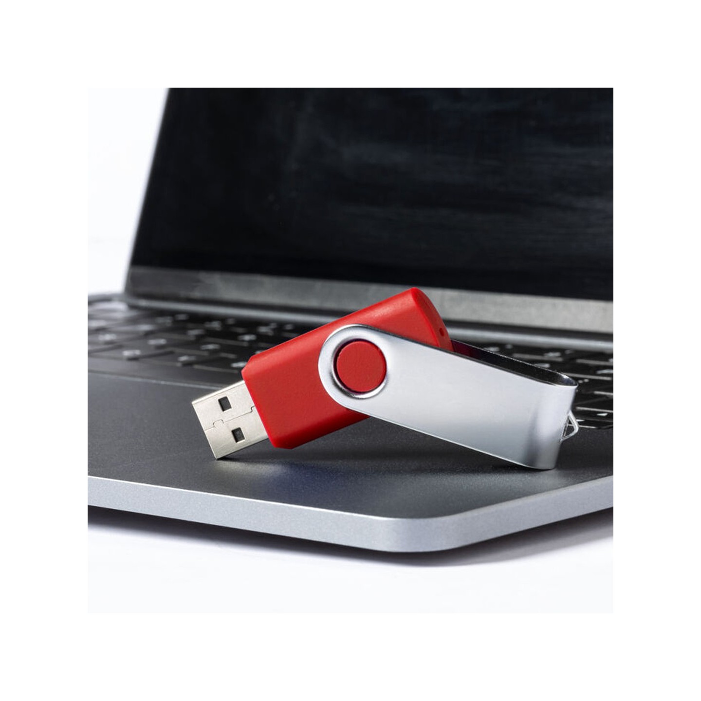 Su mecanismo giratorio facilita el acceso al conector USB, proporcionando comodidad y protección al guardar o transportar datos. El cuerpo de suave acabado en ABS no solo garantiza durabilidad, sino que también ofrece un diseño moderno y agradable al tacto. El clip metálico agrega un toque de elegancia y funcionalidad, permitiendo sujetar la memoria a un llavero o a cualquier objeto con facilidad.