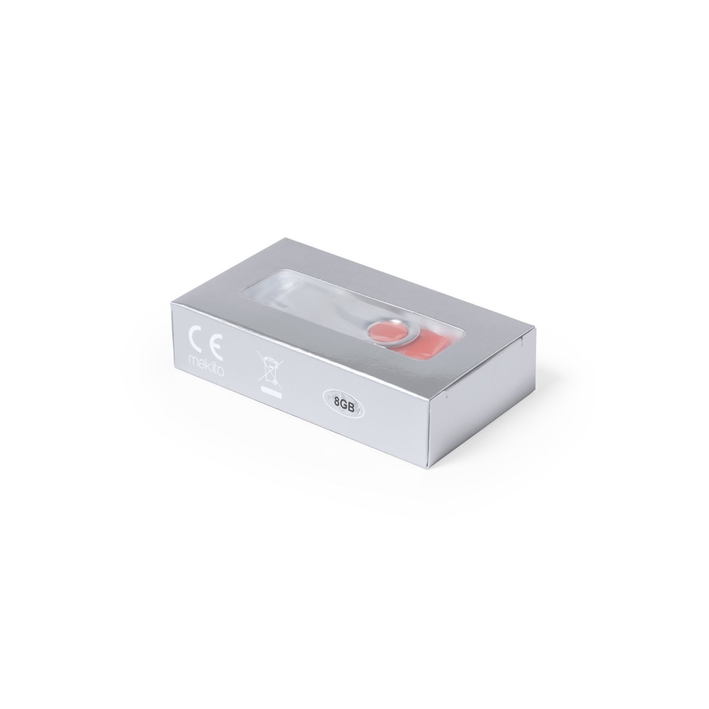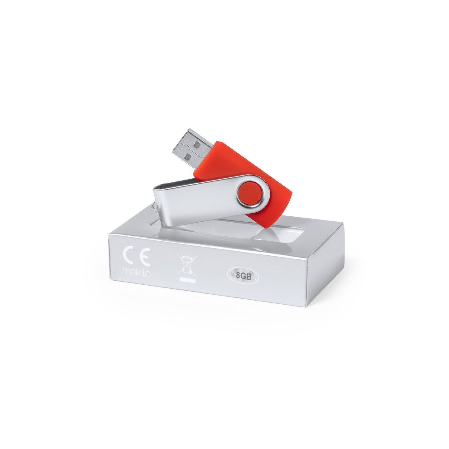La Memoria USB Yeskal 8GB viene con mecanismo giratorio y clip metálico, ofrece capacidad, estilo y presentación elegante en variedad de colores.