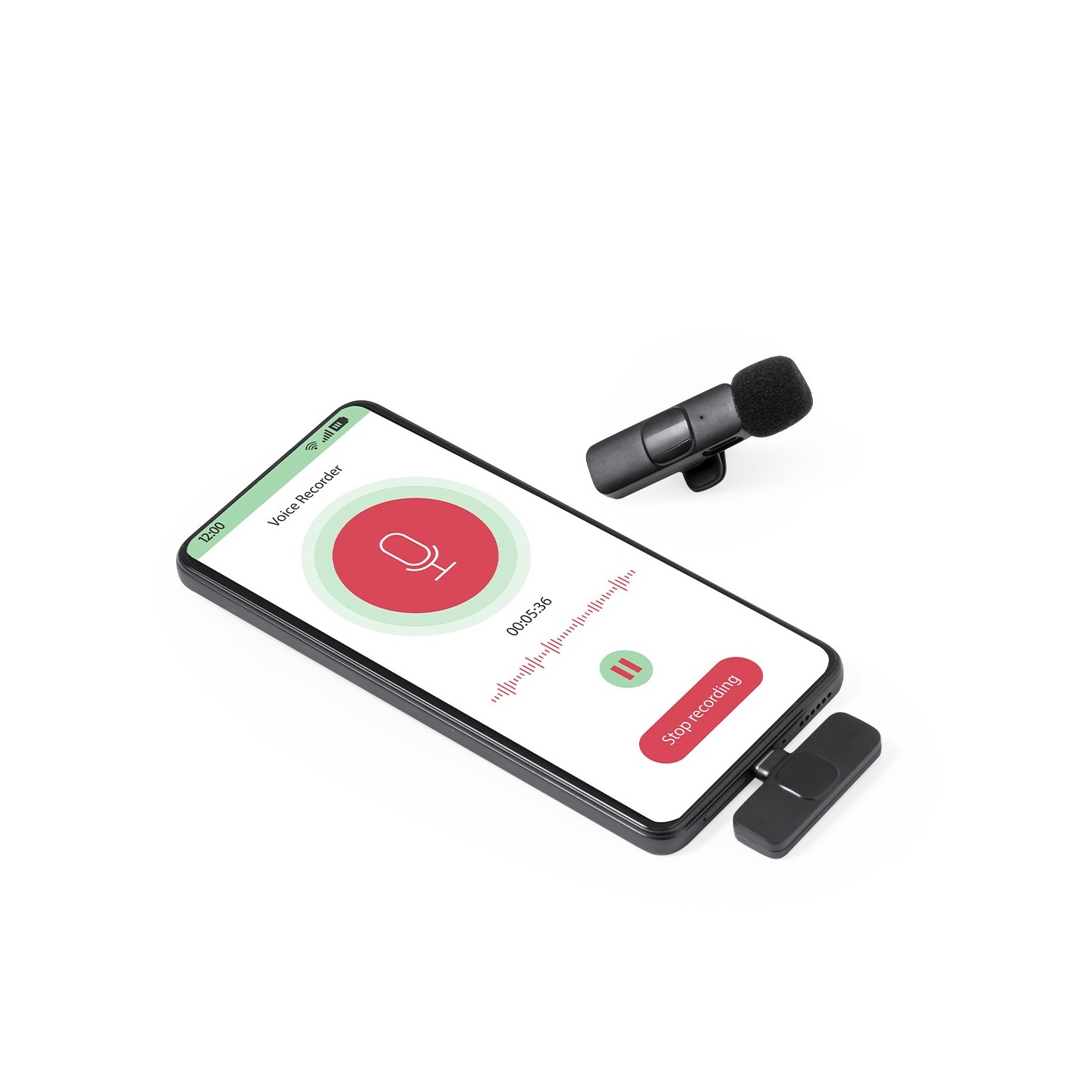 Micrófono inalámbrico de solapa para emisiones en directo, videollamadas o grabación de podcasts entre otros muchos usos. Incluye una práctica pinza de fácil ajuste y se conecta al dispositivo (smartphone, tablet, ordenador) mediante un receptor OTG, con conexión Tipo C, que ofrece una transmisión de audio de calidad, estable y fluida.