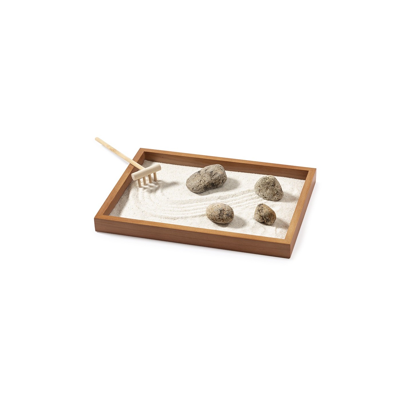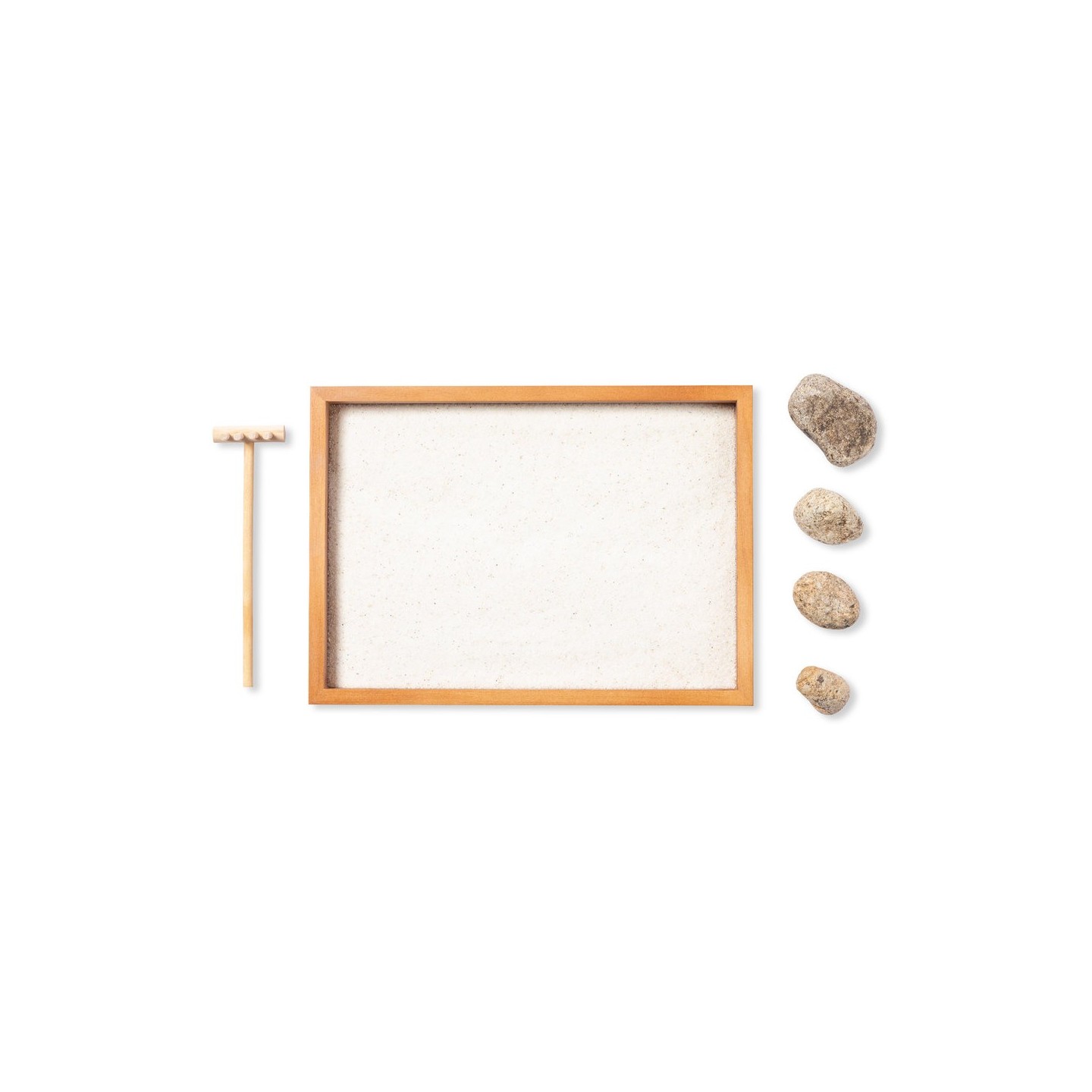 Sumérgete en un oasis de tranquilidad con el Mini Jardín Zen Azumy, diseñado para brindarte relajación y paz interior. Este encantador conjunto incluye una base contenedora y un rastrillo fabricados en madera natural, junto con 4 piedras naturales y un saquito de arena blanca.