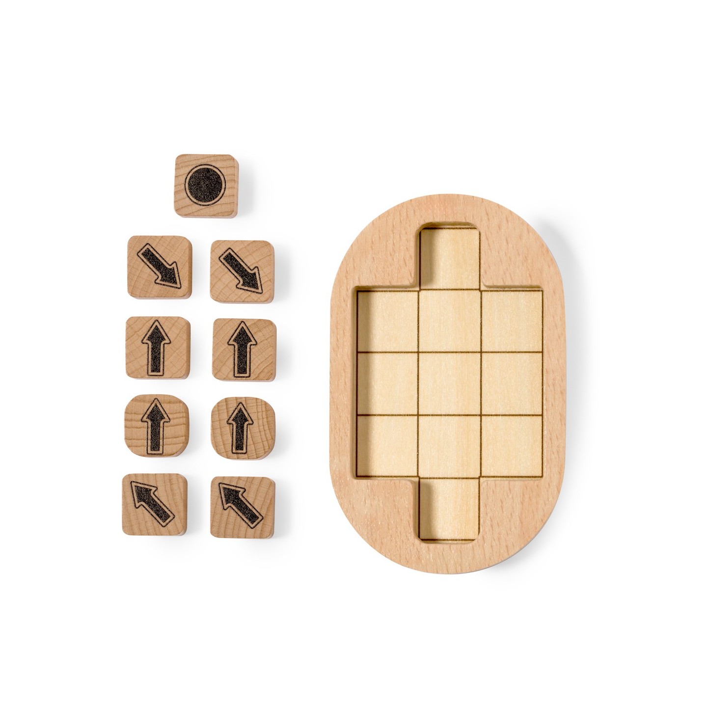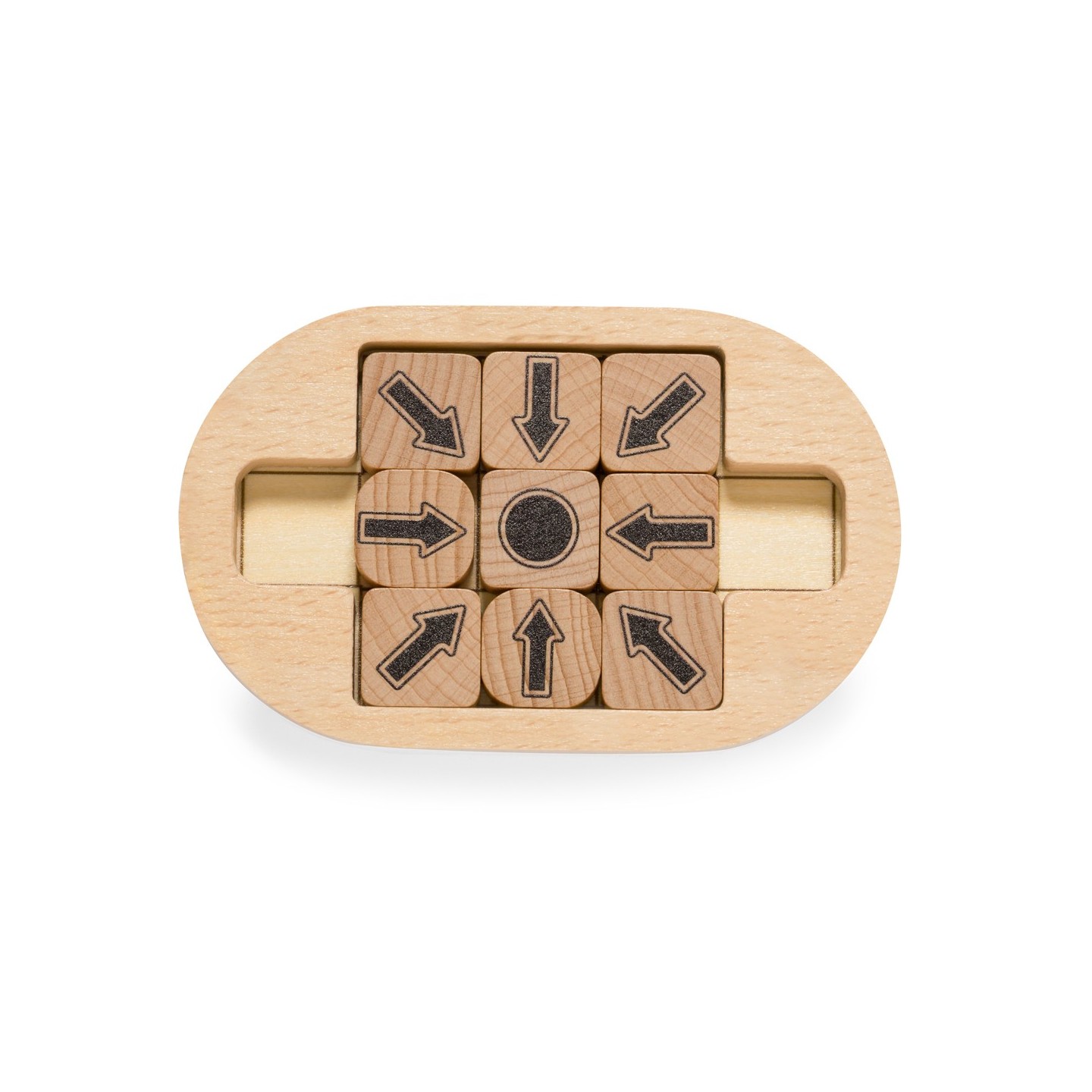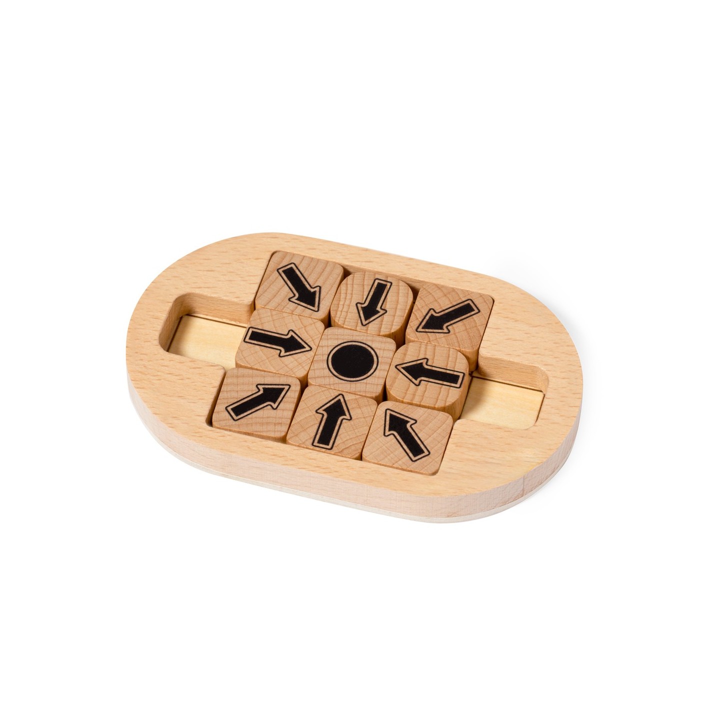 El Minipuzzle Jatrex es una obra maestra compuesta por 9 piezas y un tablero ingeniosamente diseñado. El desafío que plantea es cautivador: deslizar las 8 piezas con flechas por el tablero para ordenarlas, apuntando hacia la ficha con un punto. Esta tarea no solo requiere destreza manual, sino también astucia y estrategia.