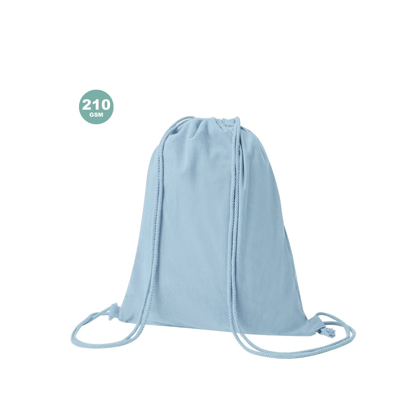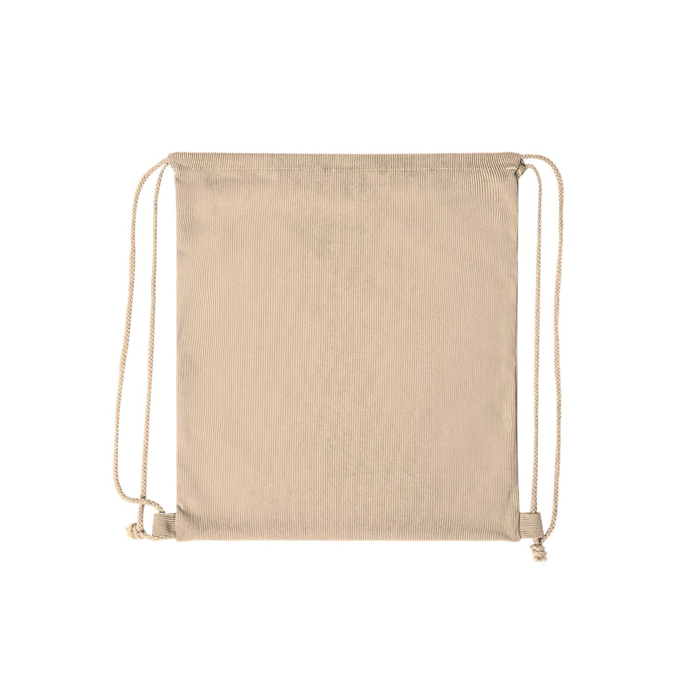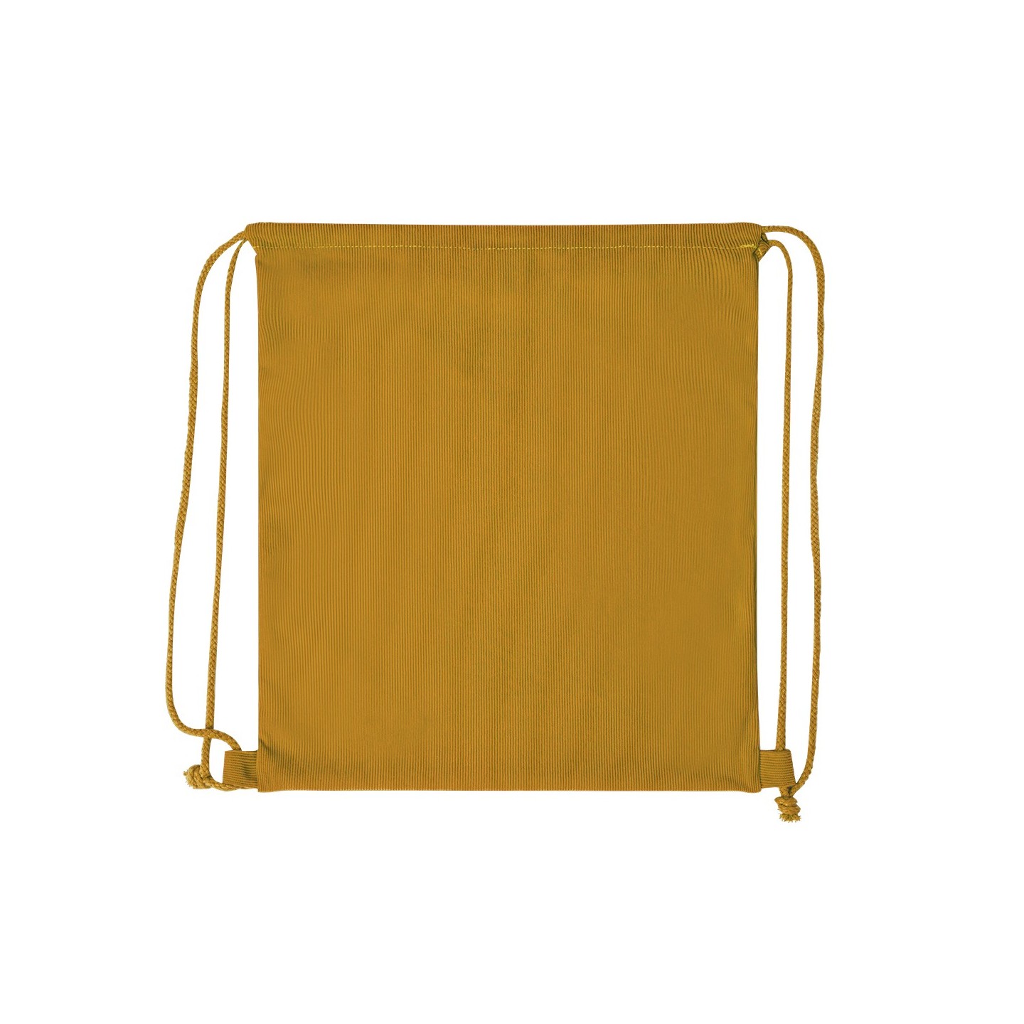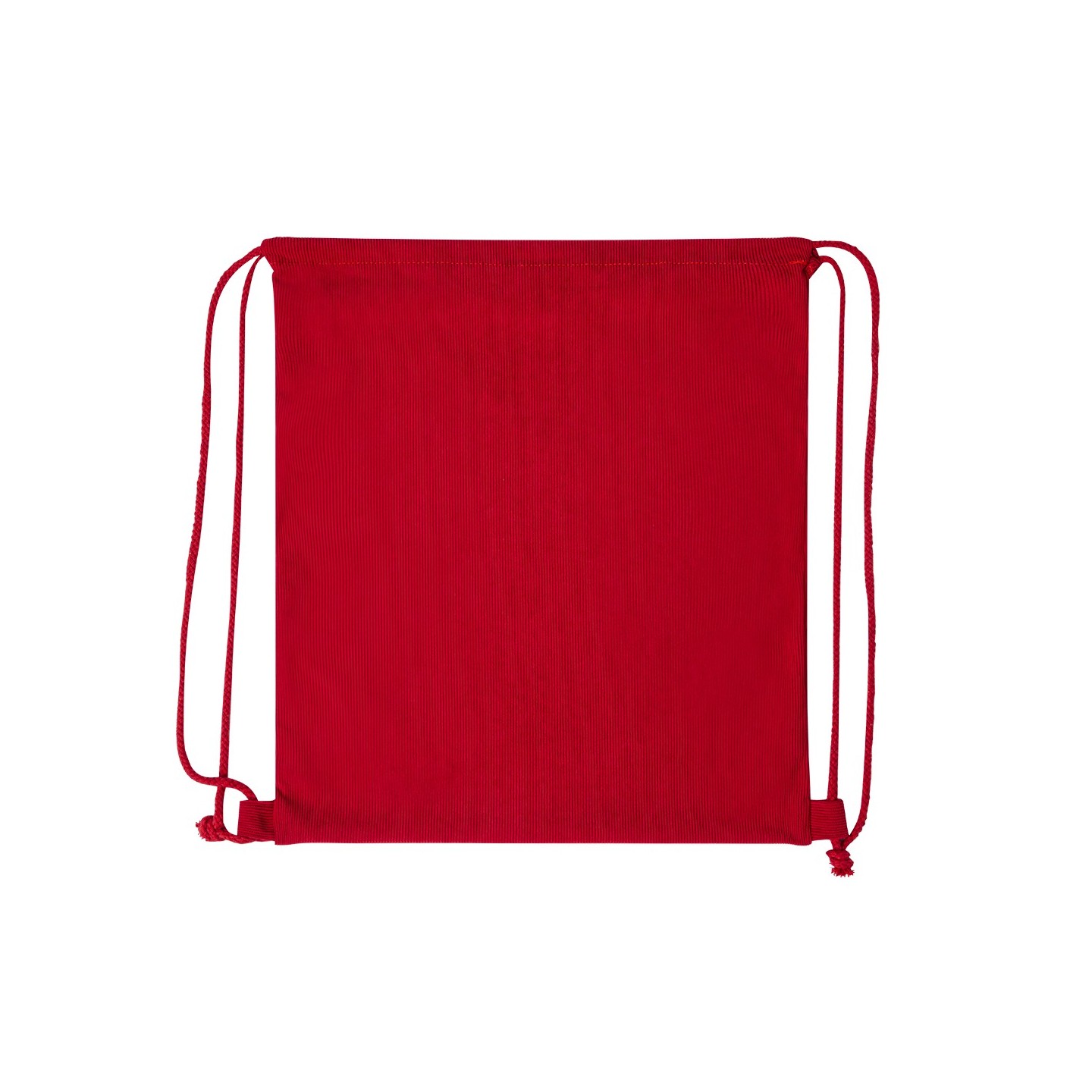 Esta mochila de cuerdas está fabricada en resistente pana de poliéster, lo que garantiza su durabilidad y resistencia al uso constante. Su acabado cosido y los refuerzos laterales añaden una estructura adicional, asegurando la longevidad del producto.