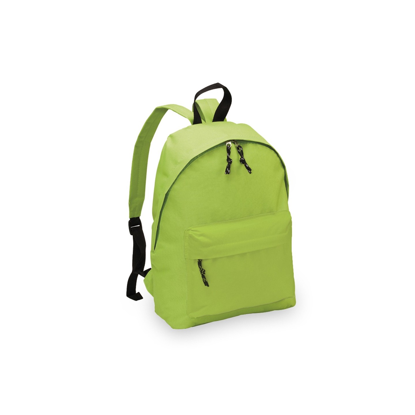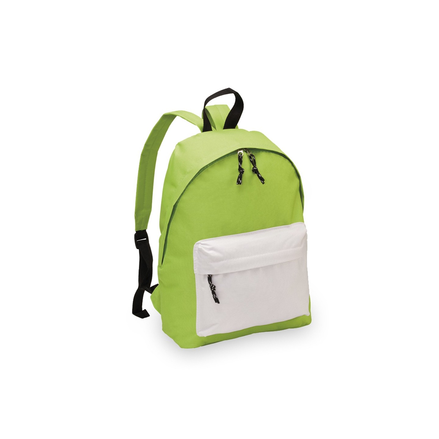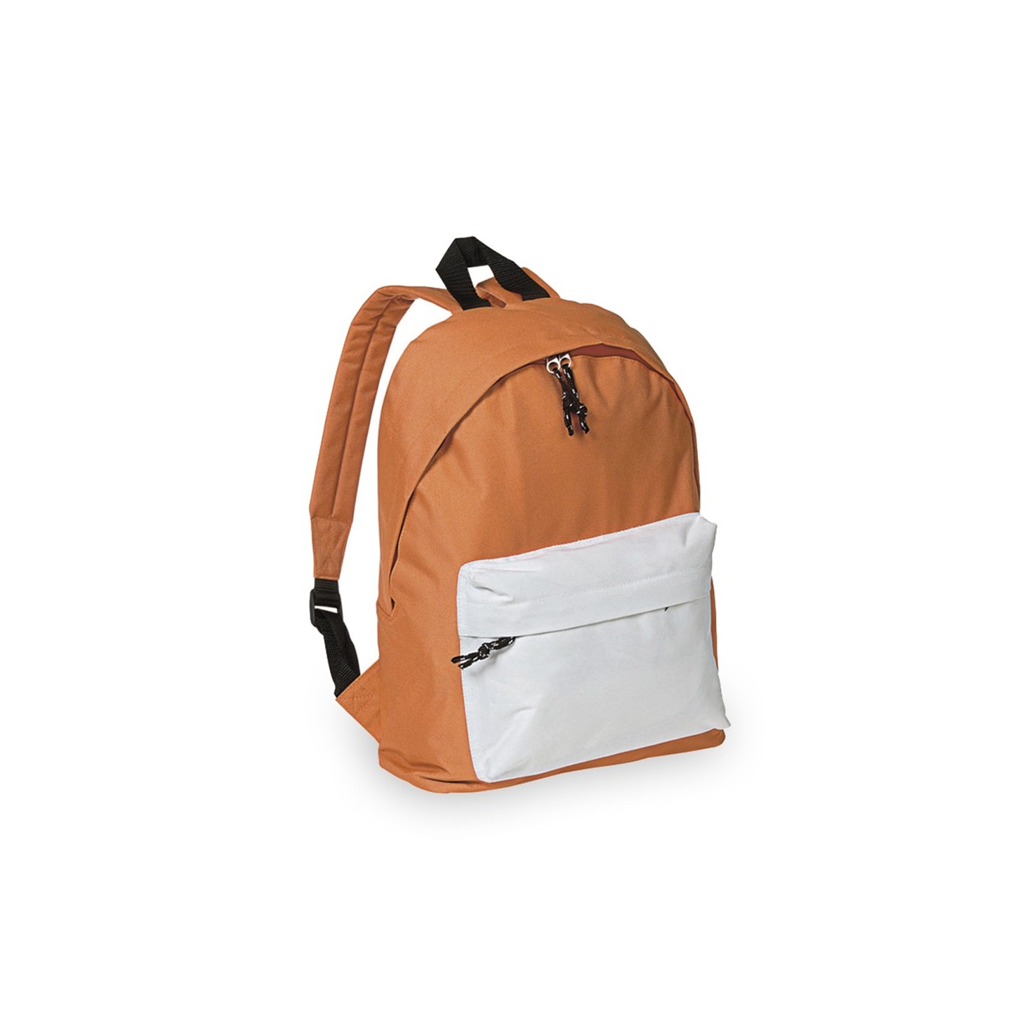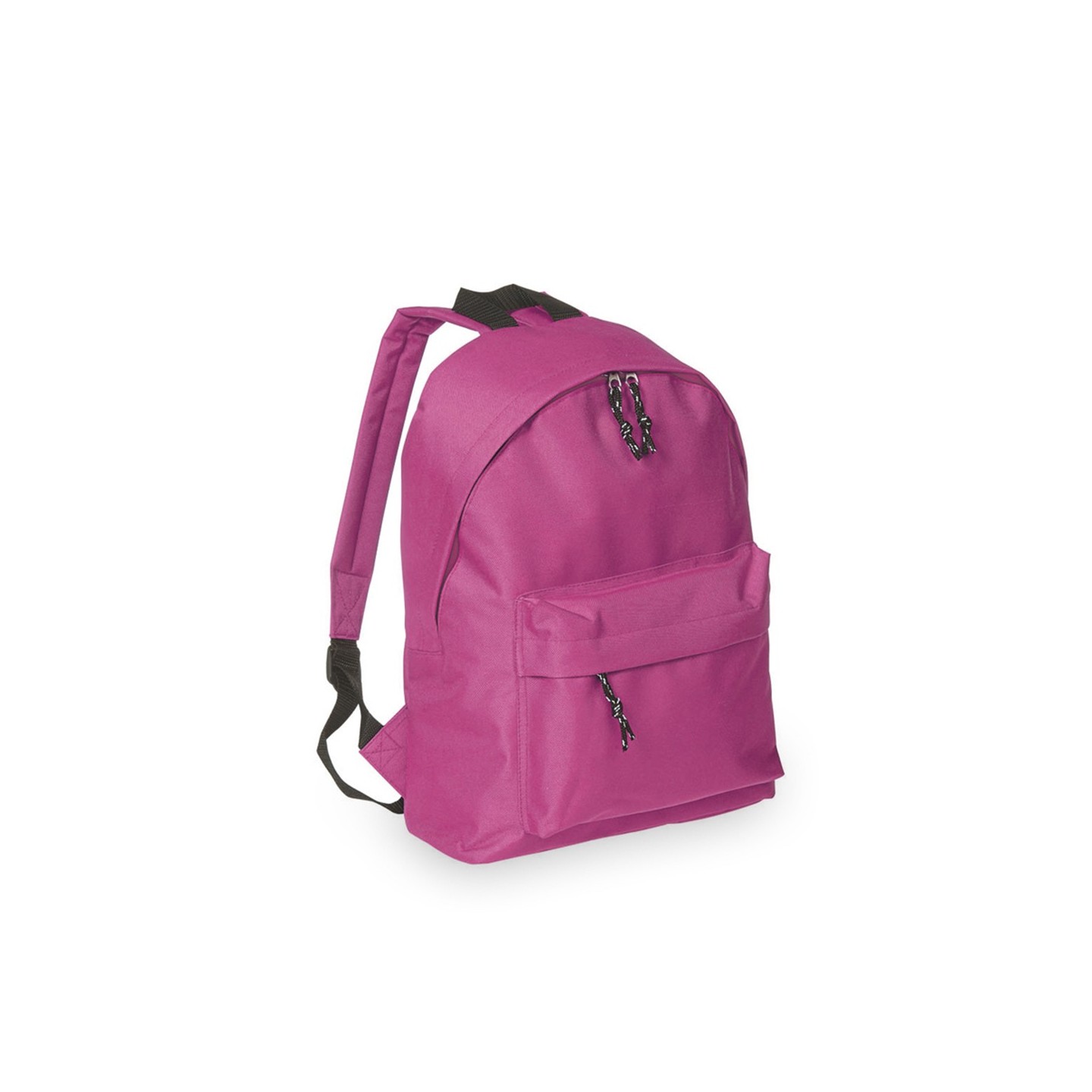 Mochila en poliéster 600D con cierre de cremallera, bolsillo frontal y esquinas reforzadas. Espalda acolchada y cintas de hombros ajustables.