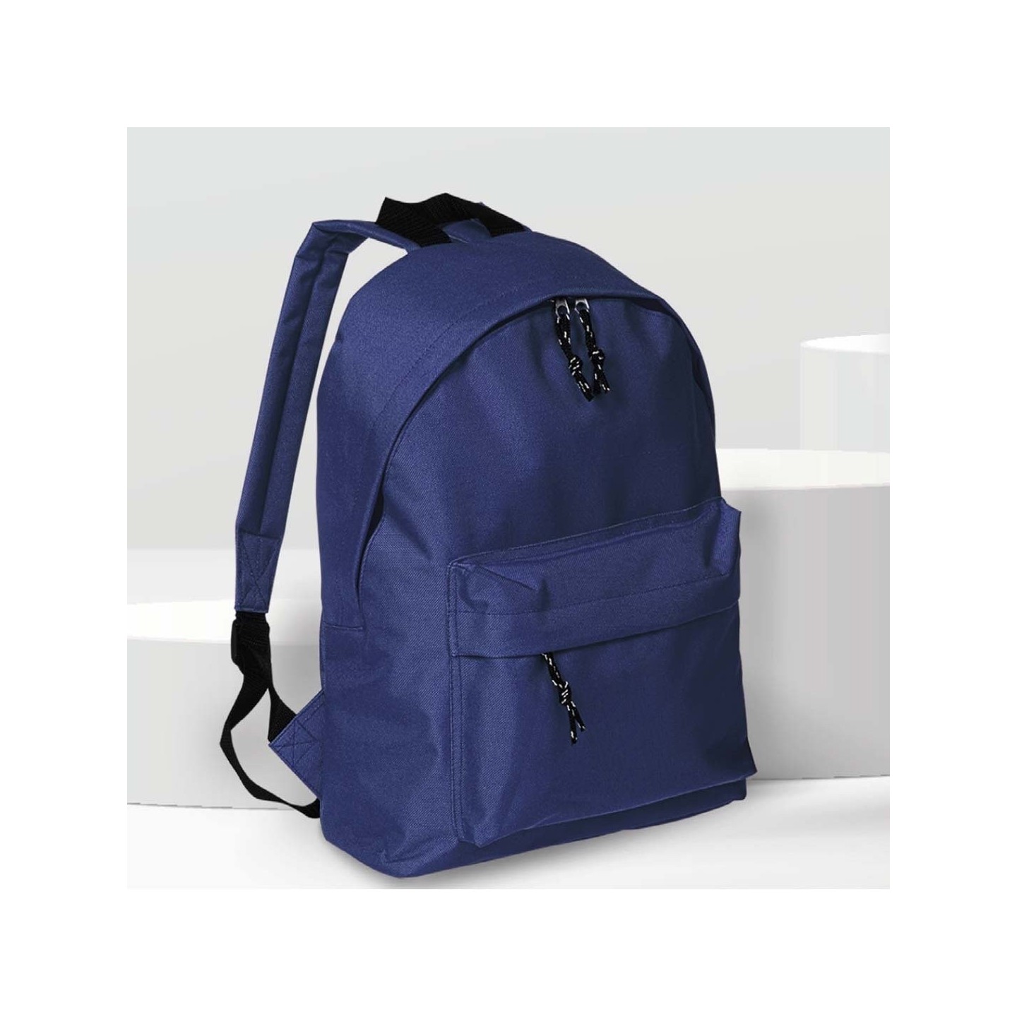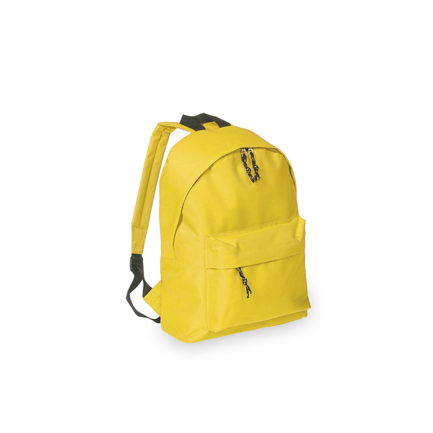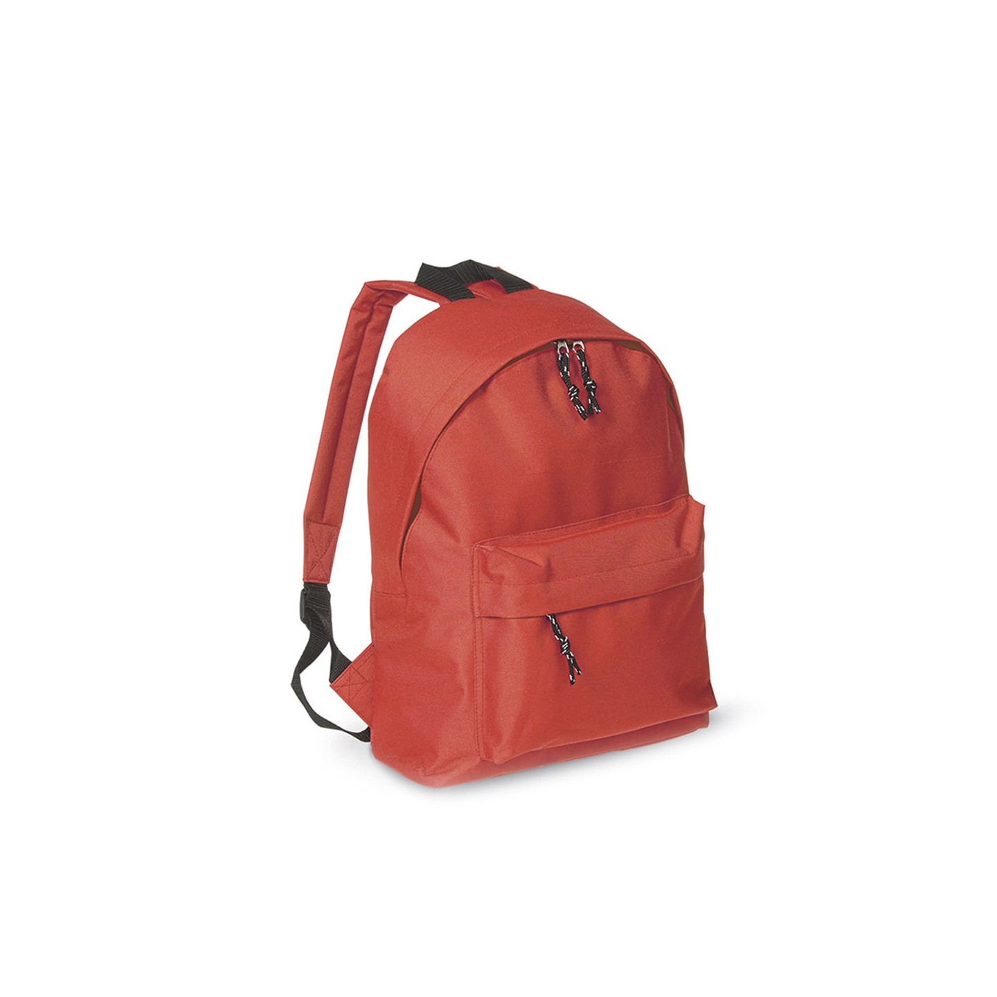 Mochila en poliéster 600D con cierre de cremallera, bolsillo frontal y esquinas reforzadas. Espalda acolchada y cintas de hombros ajustables.