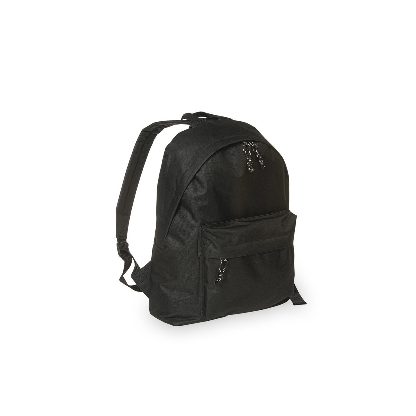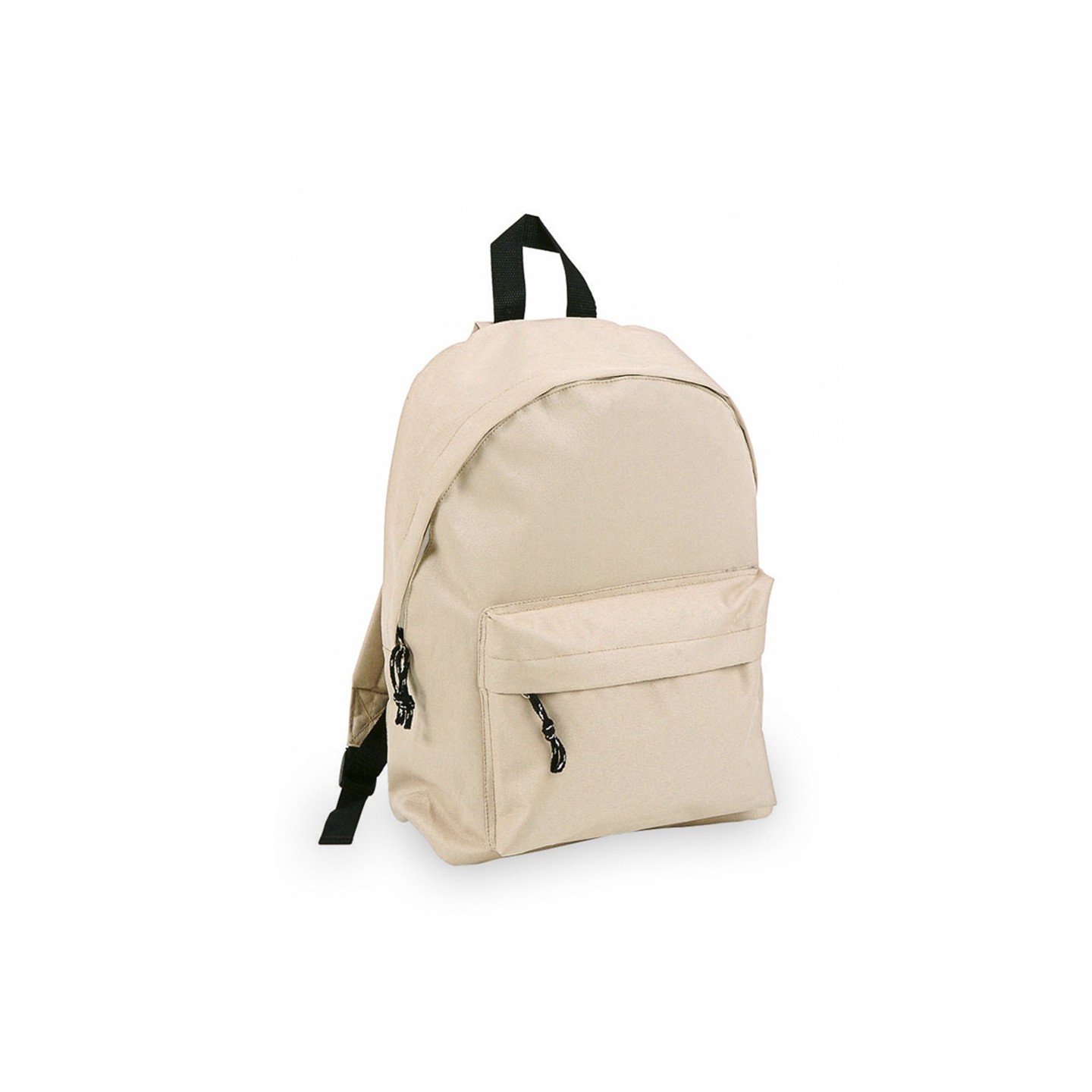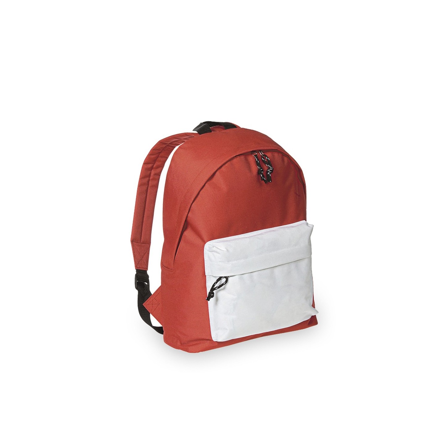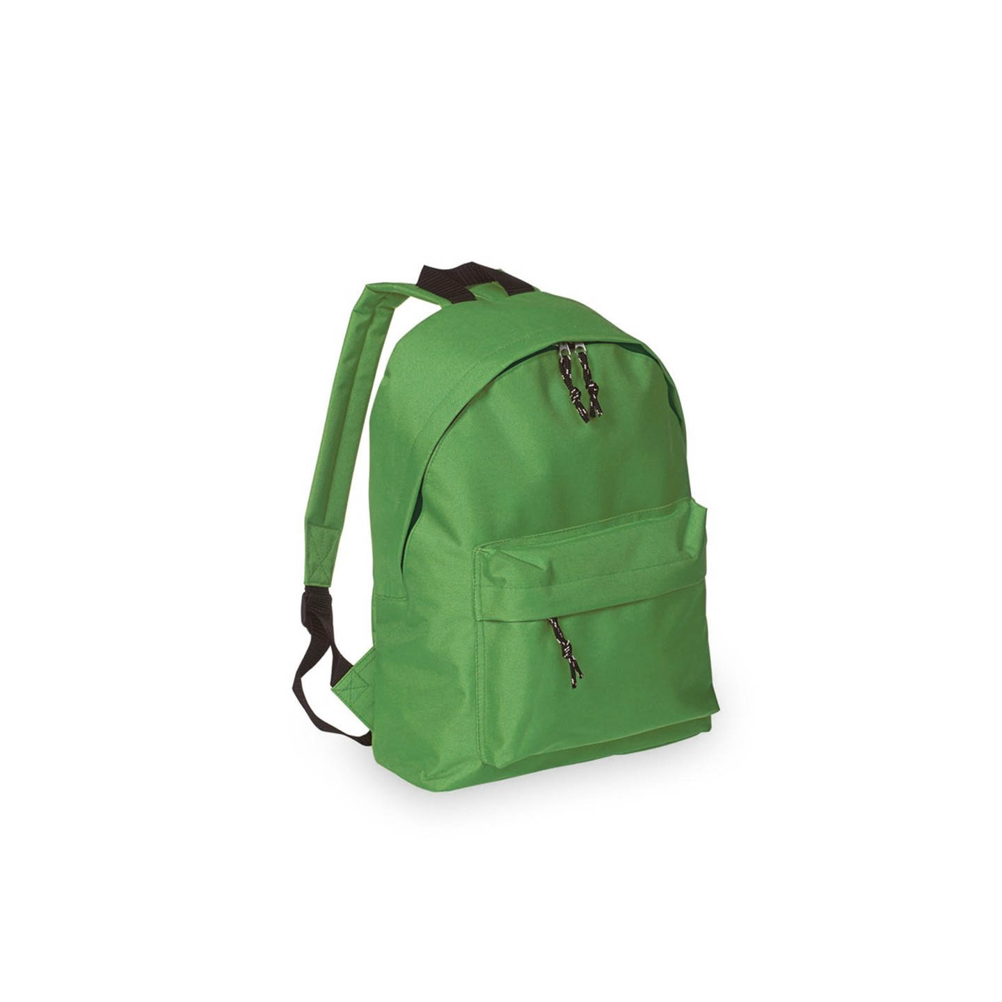 Mochila en poliéster 600D con cierre de cremallera, bolsillo frontal y esquinas reforzadas. Espalda acolchada y cintas de hombros ajustables.