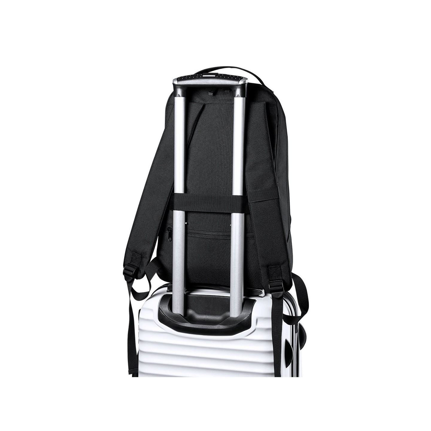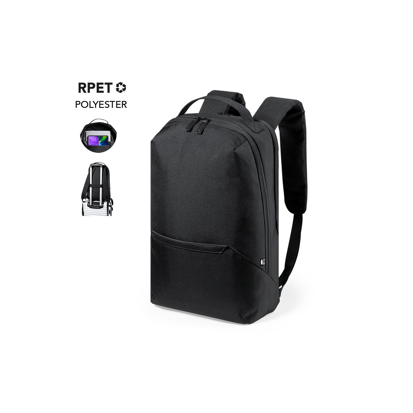 La Mochila Elanis es sostenible y respetuosa con el medio ambiente. Fabricada en poliéster 600D RPET reciclado, tiene bolsillos acolchados para tu tablet y portátil, así como un bolsillo antirrobo y accesorio de ajuste en trolley.