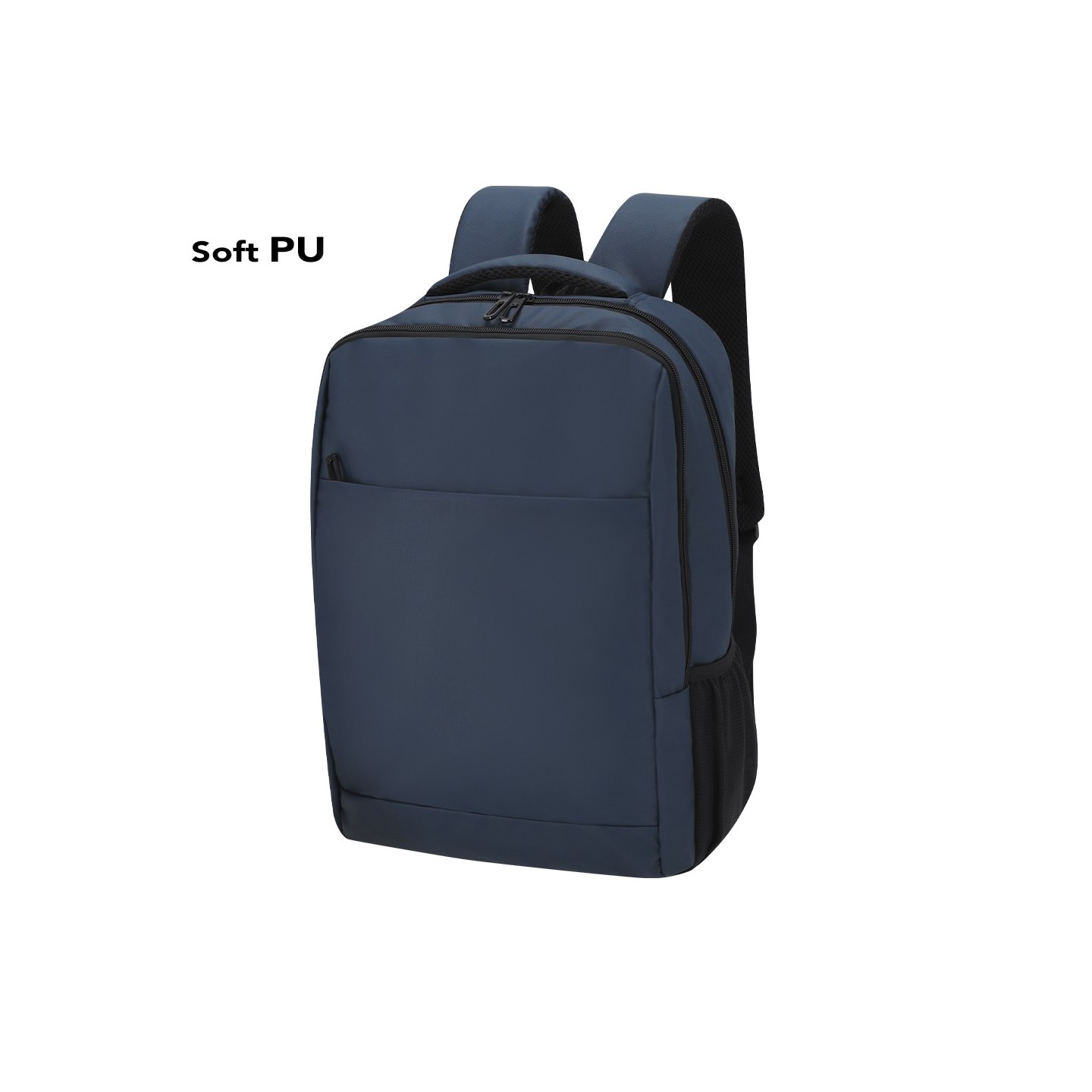 Mochila GALIX de diseño urbano, fabricada en PU suave, con bolsillo para portátil de 15", cintas acolchadas y personalizable con tu logotipo.