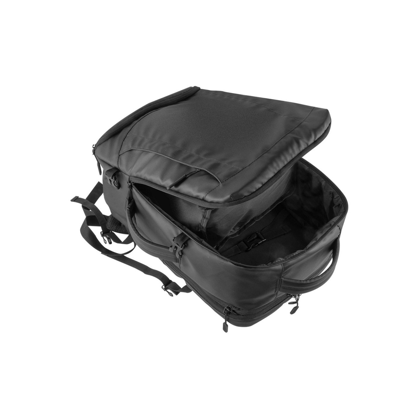 - Sistema de Cierre Enrollable: La parte superior de la mochila se enrolla sobre sí misma y se asegura con una hebilla o un gancho. Este método de cierre permite ajustar el tamaño de la mochila según la cantidad de contenido que se lleva.