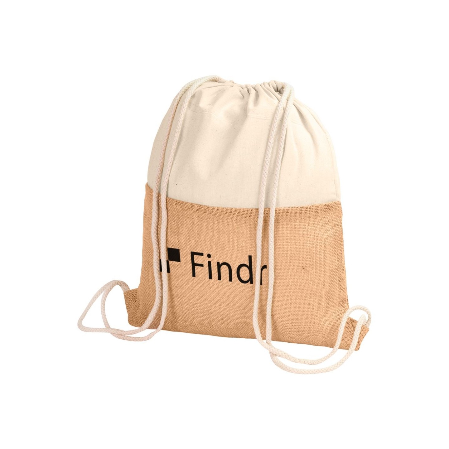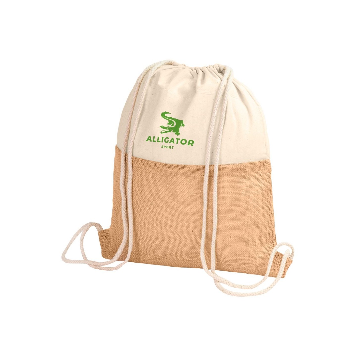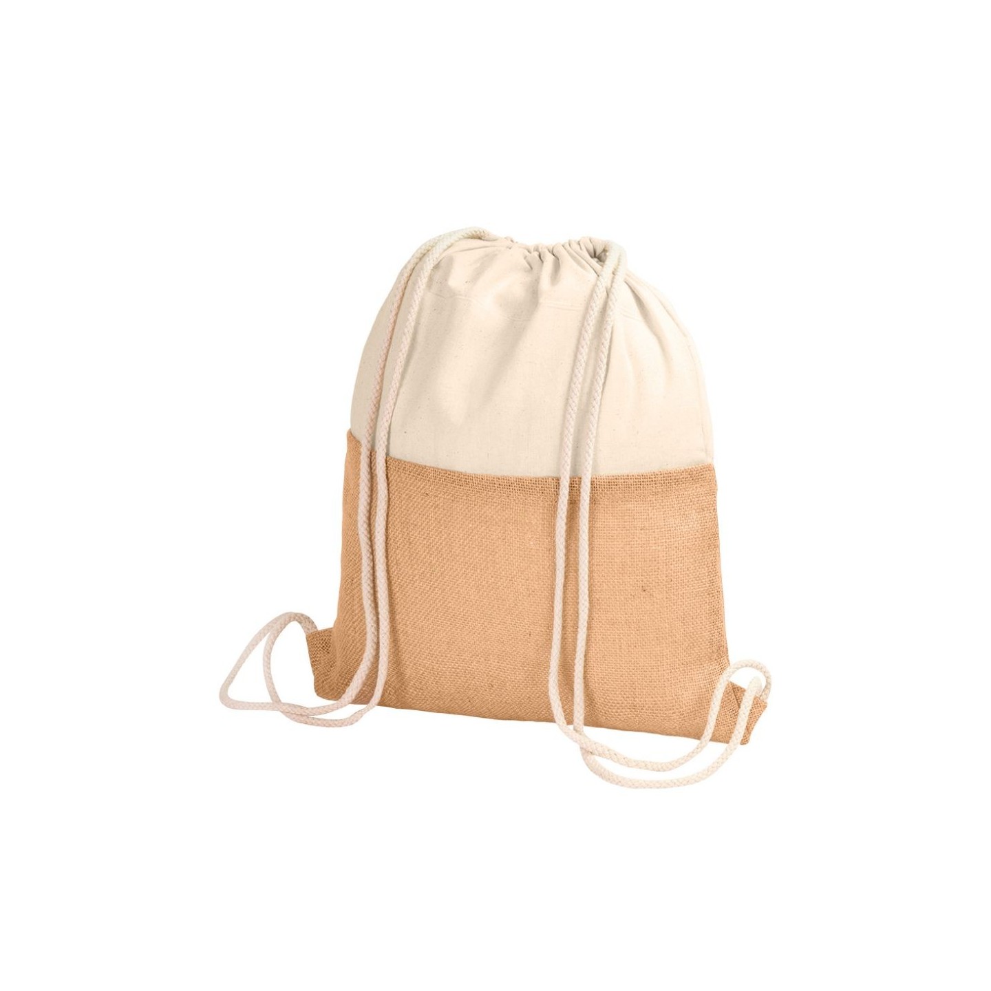 La Mochila Horizon está fabricada en algodón (230gr/m2) y jute de alta calidad. Asas y cierre de cuerdas. Resistente (7 kg), estilo auténtico (34 x 40 cm).