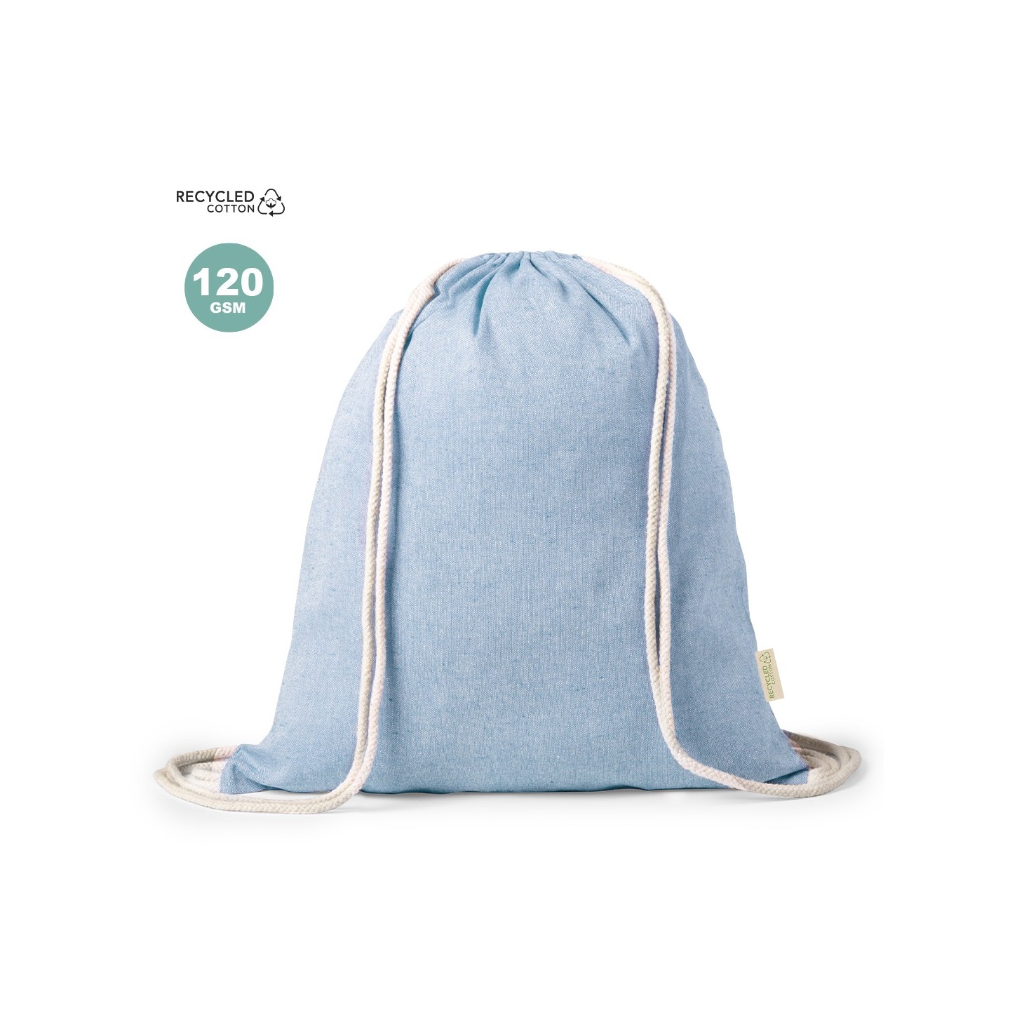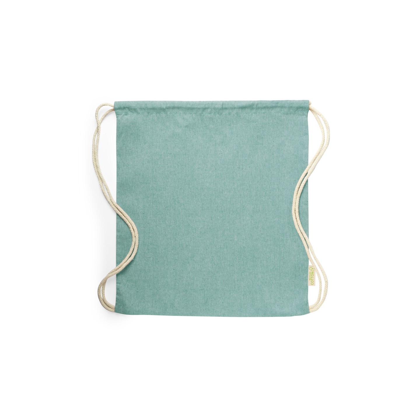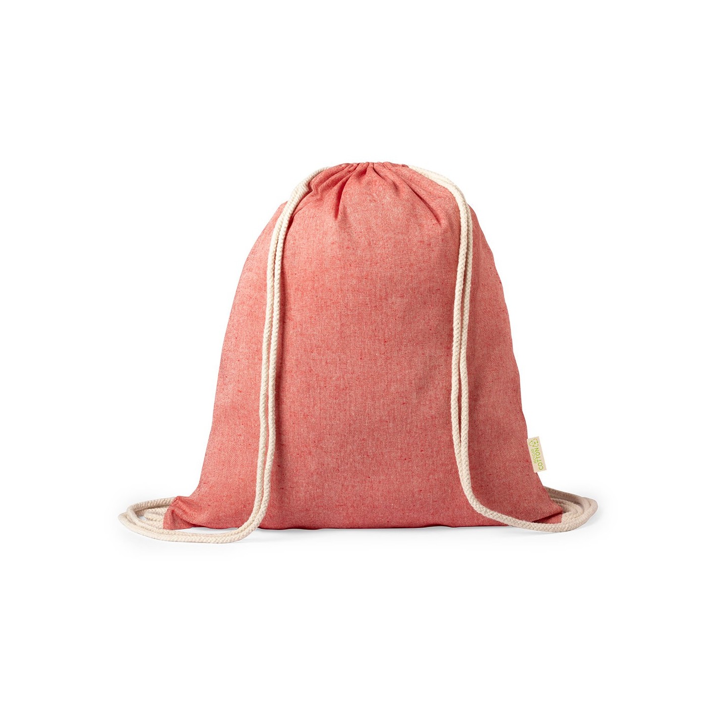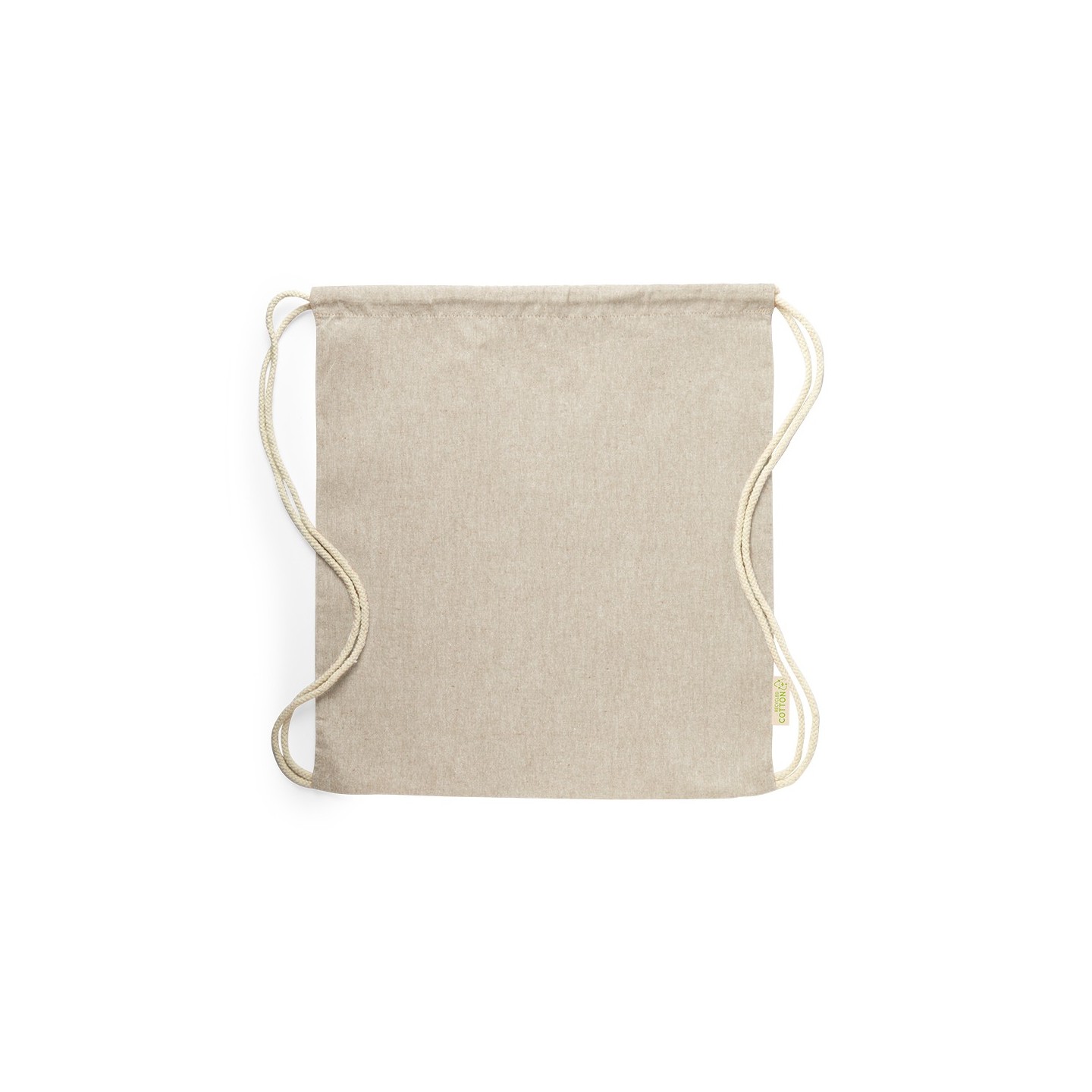 Mochila de cuerdas Konim, hecha de material 100% algodón reciclado. Autocierre de cuerdas y distintivo eco en etiqueta lateral. Disponible en varios colores nature y resistencia hasta 9kg.