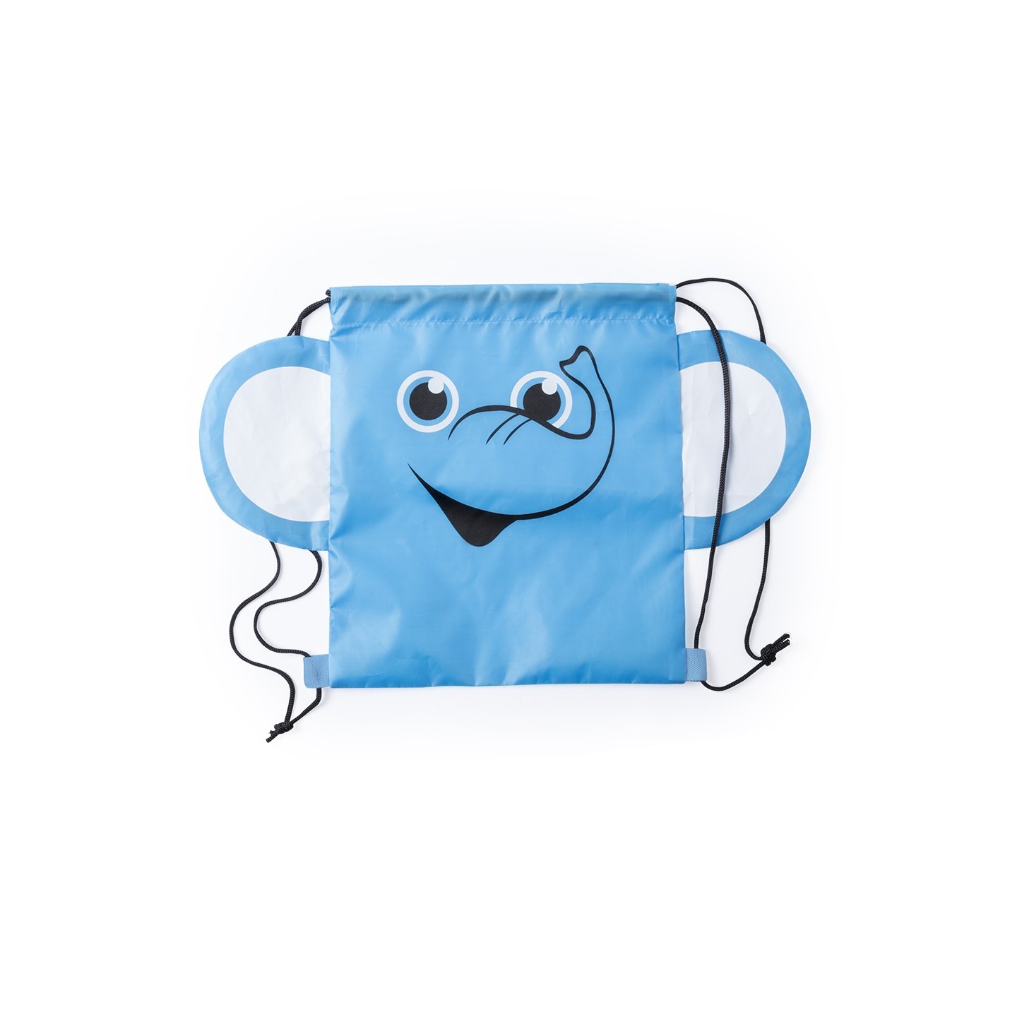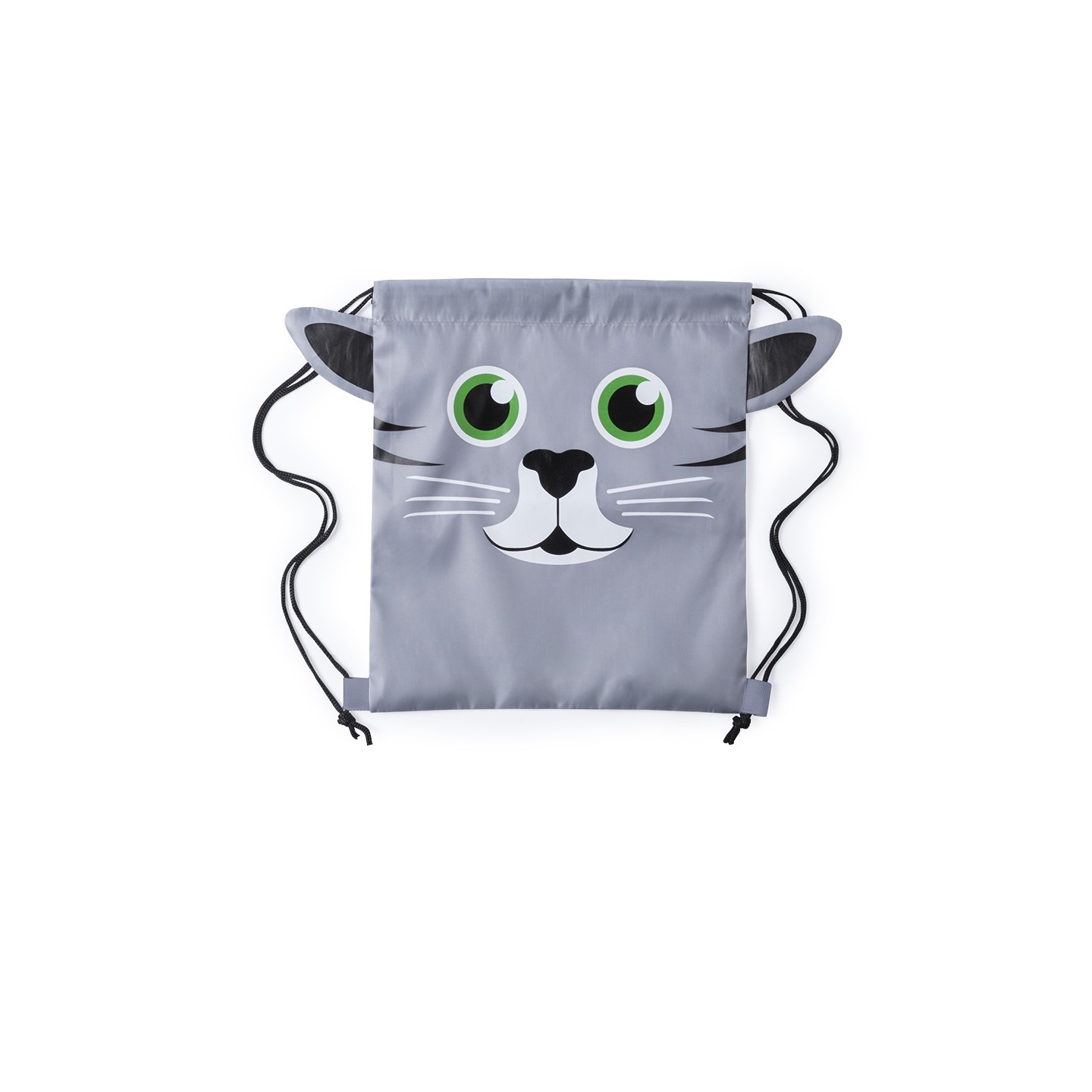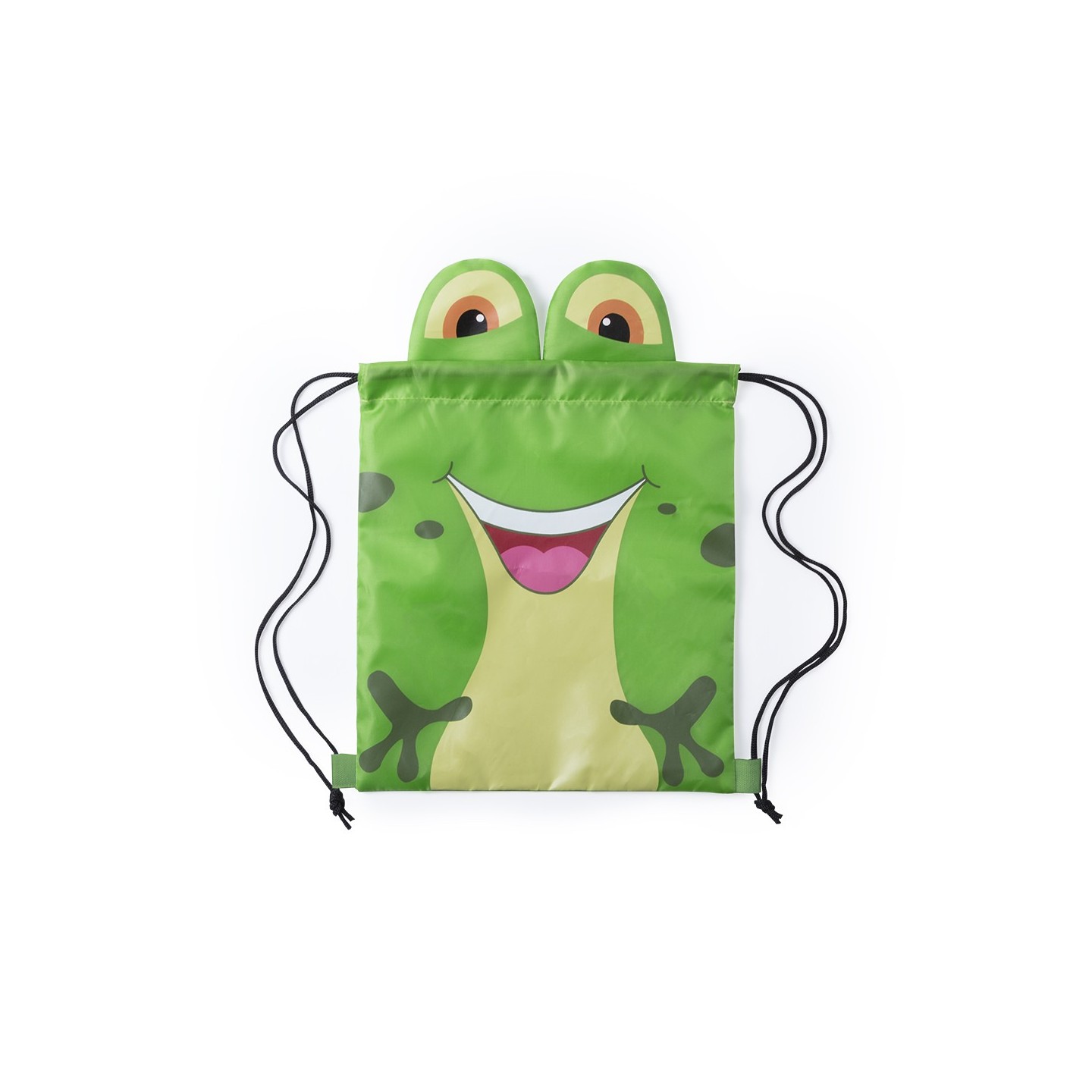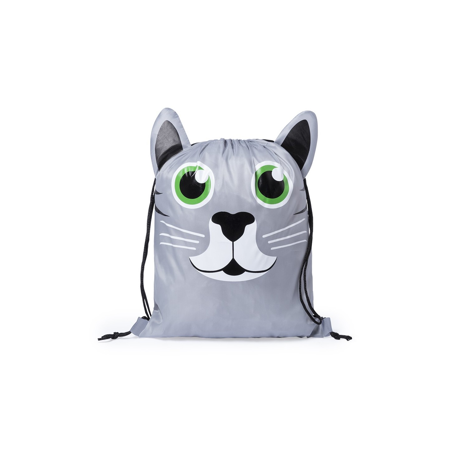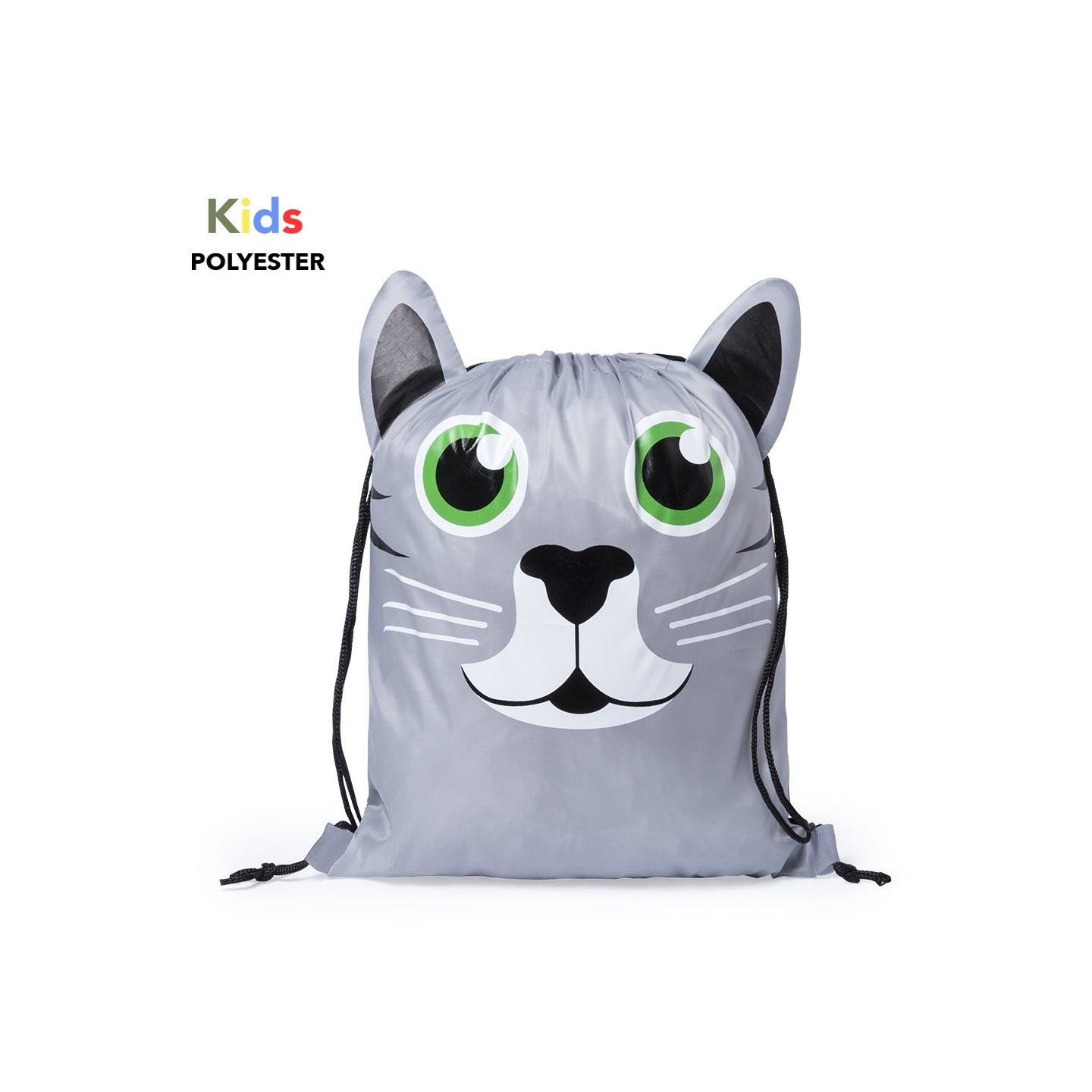 Mochila de cuerdas plegable para niños con originales diseños de animales. Fabricada en suave poliéster 210T, con cuerdas de autocierre y esquinas reforzadas.